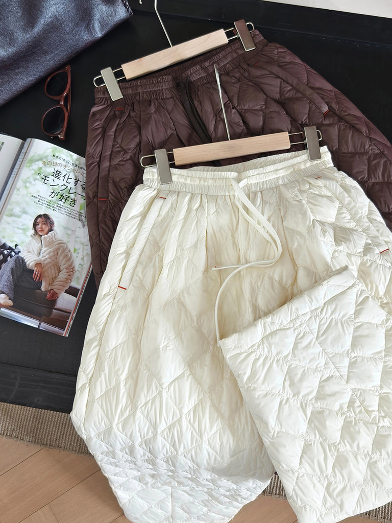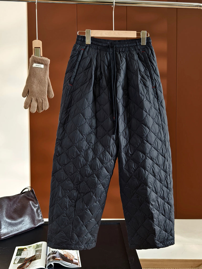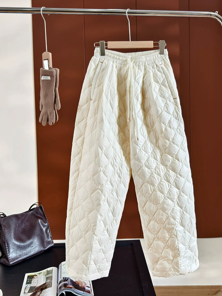 Pantalones harén de plumón de color puro informales de invierno para mujer