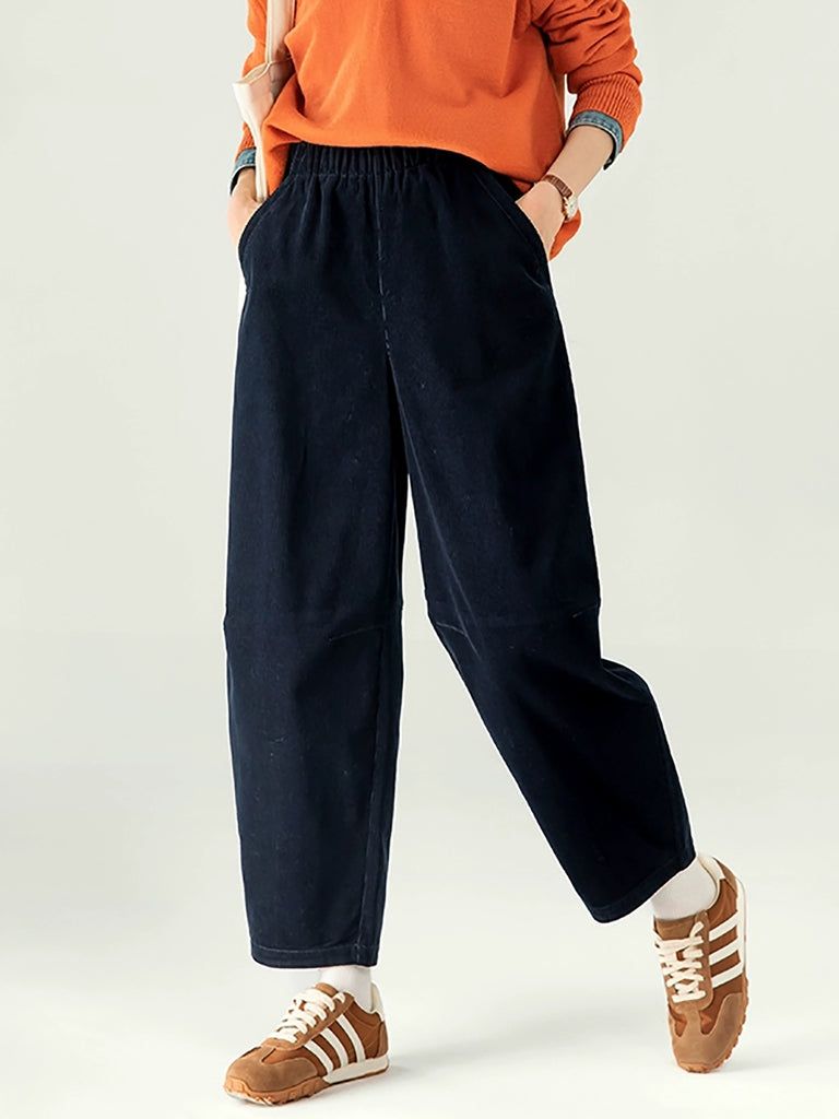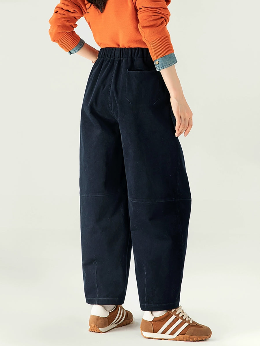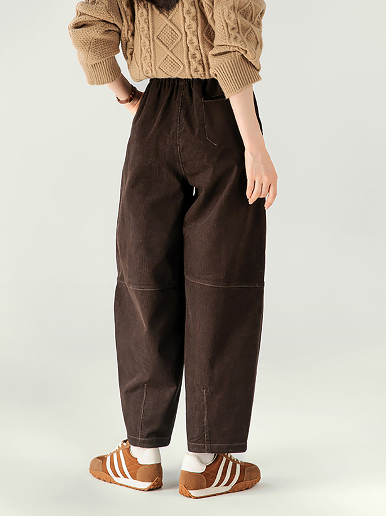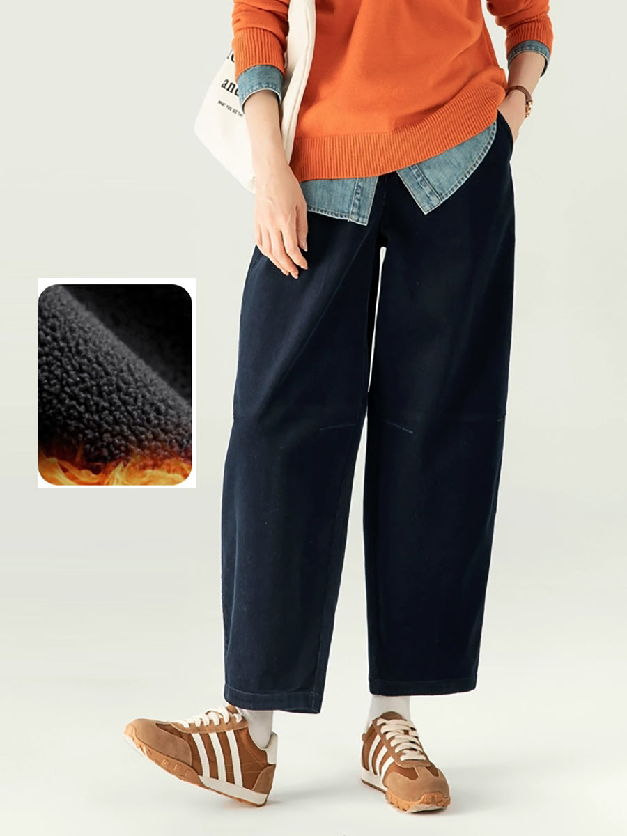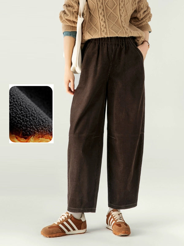 Pantalones harén informales de invierno para mujer, de color puro y forrados de polar