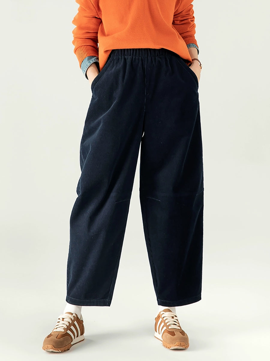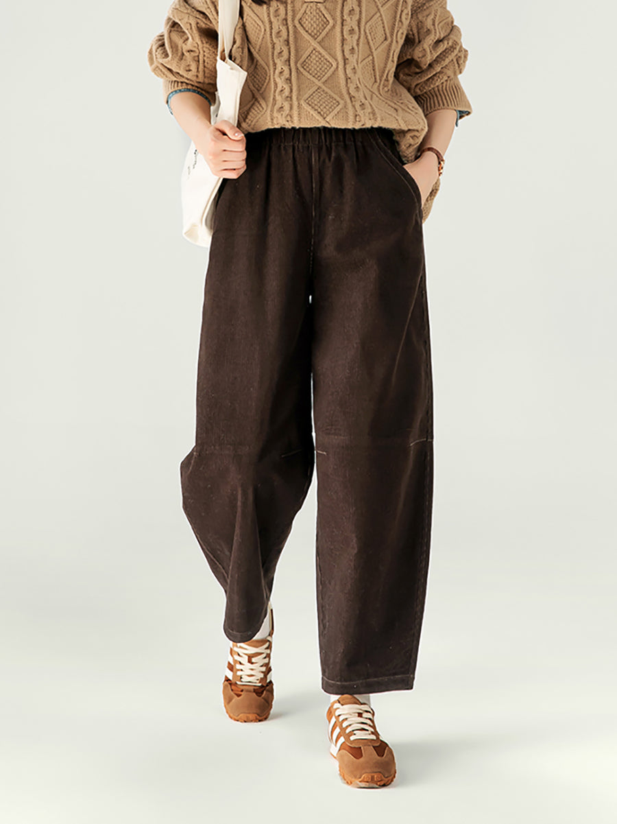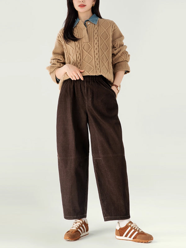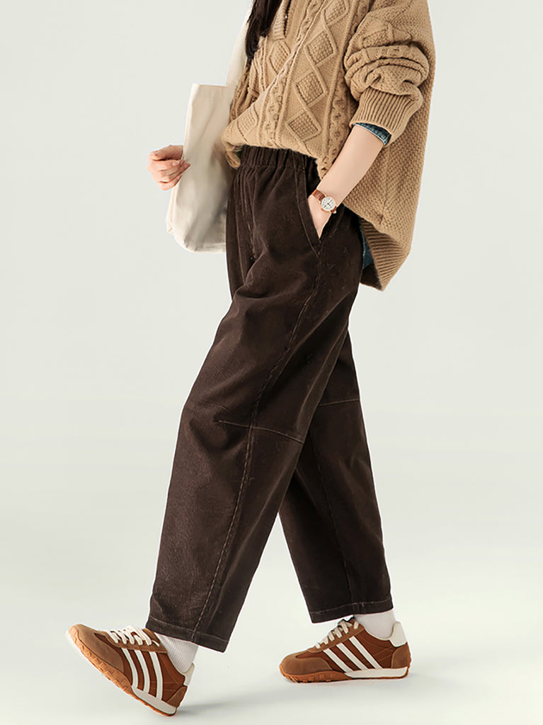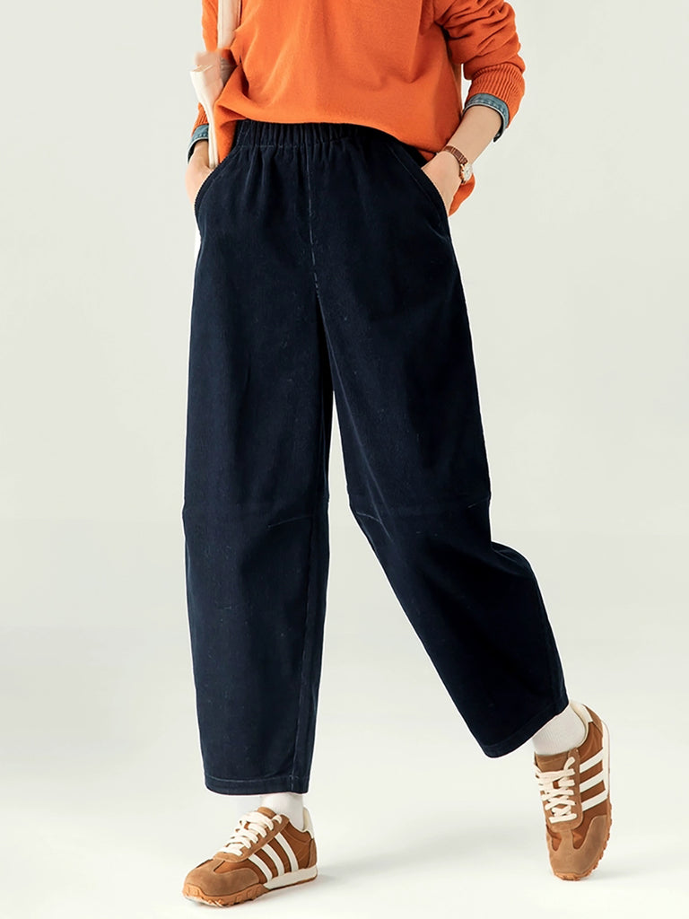 Pantalones harén informales de invierno para mujer, de color puro y forrados de polar