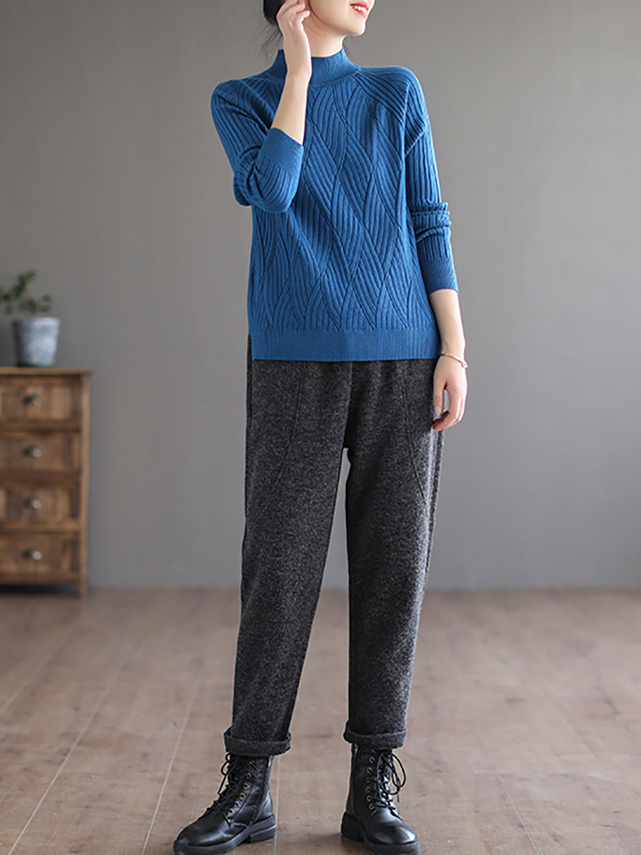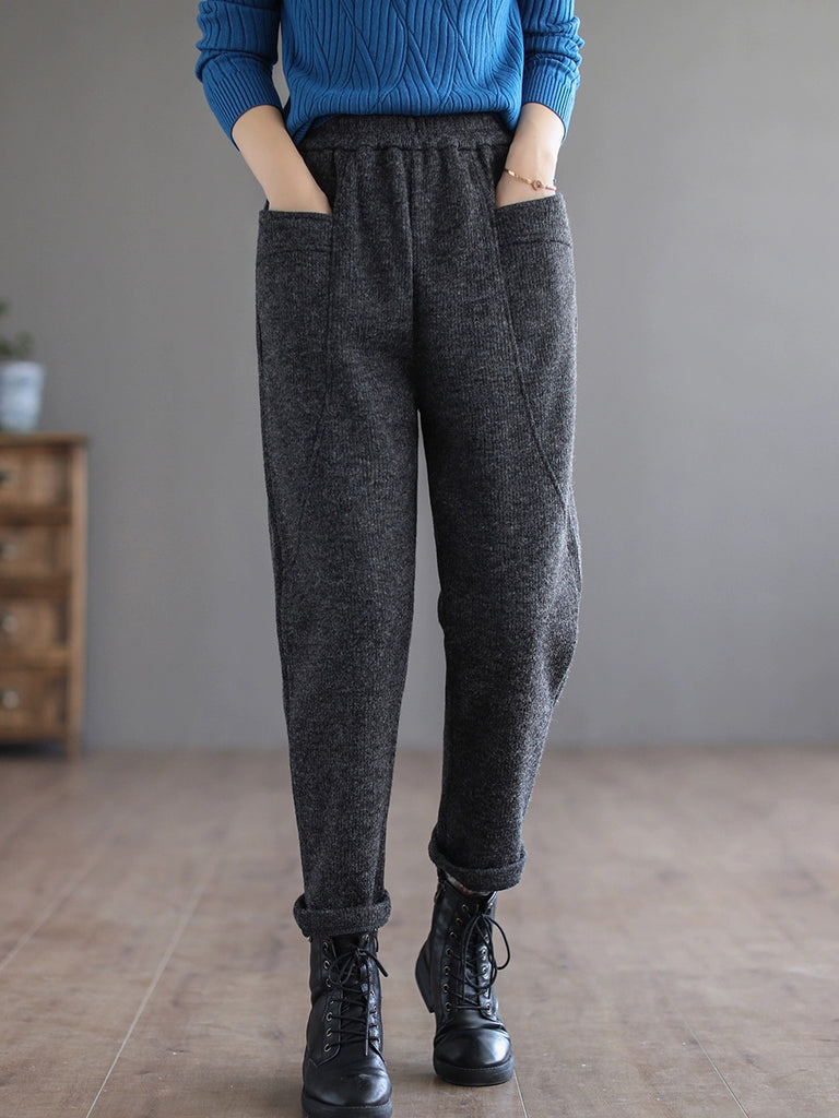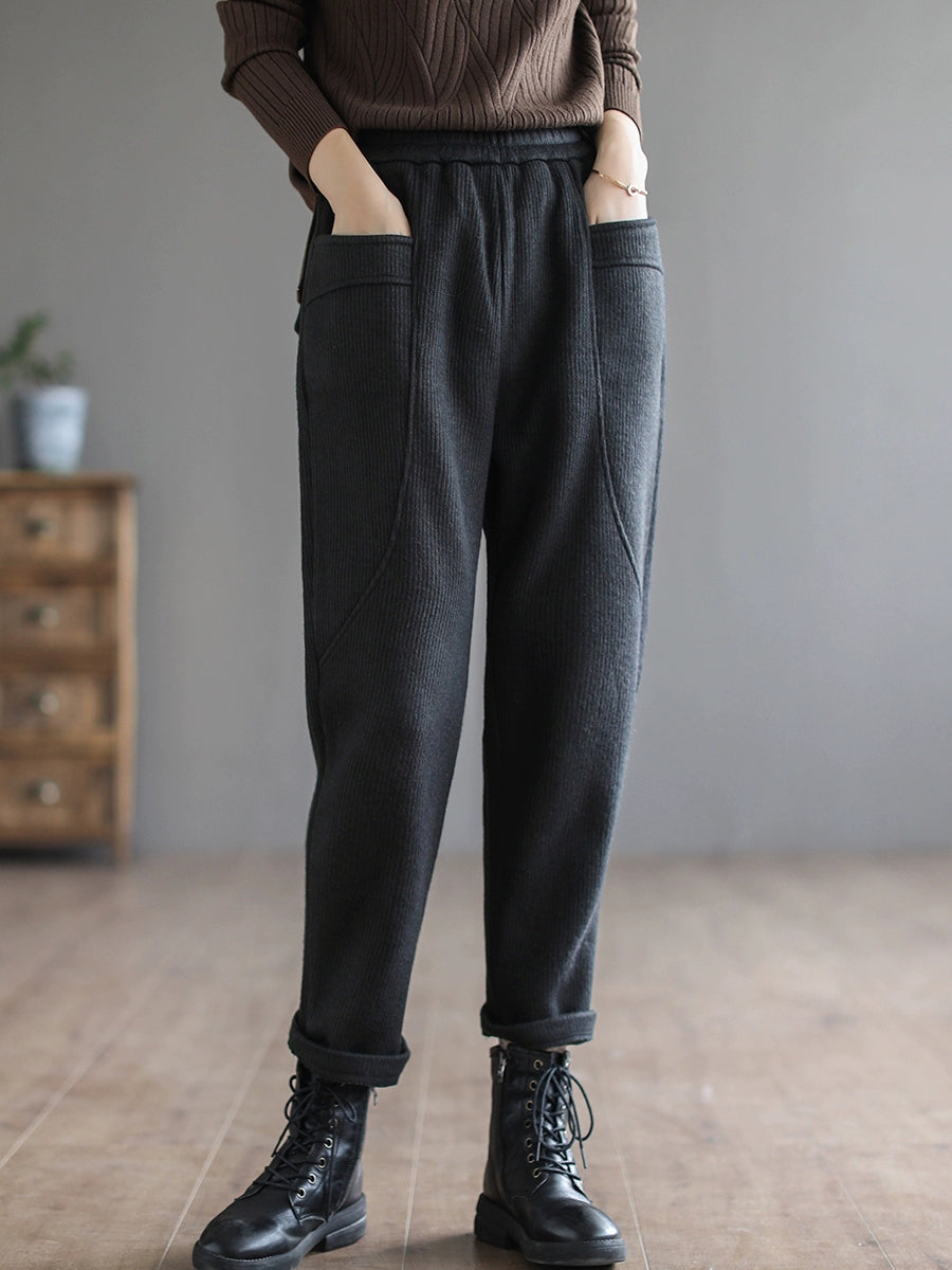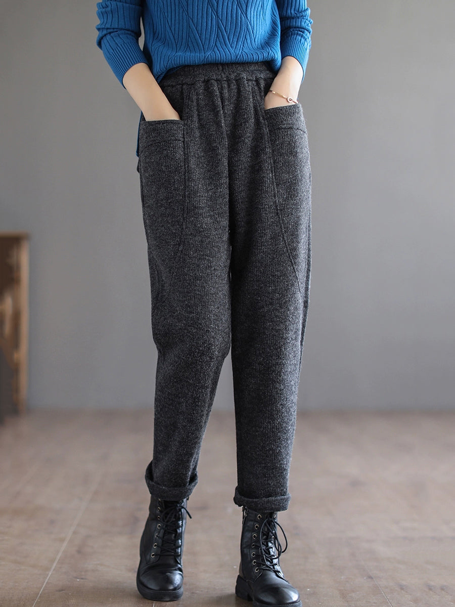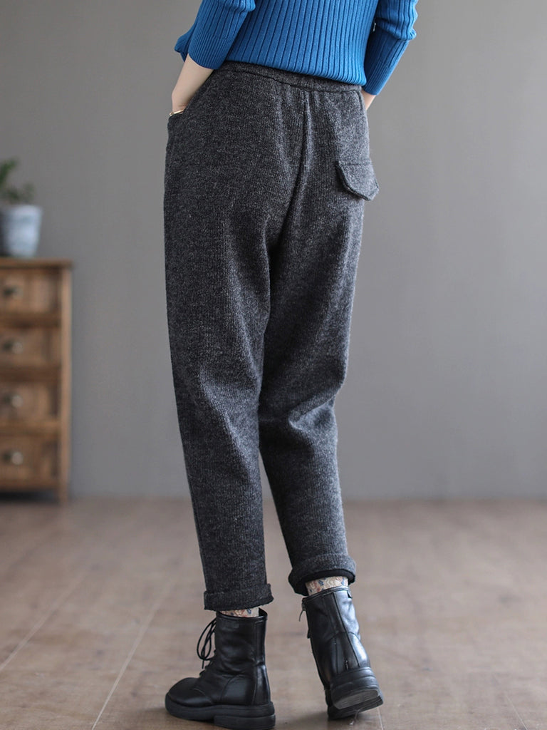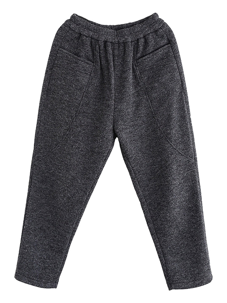 Pantalones harén informales de invierno para mujer, de color puro y forrados de polar