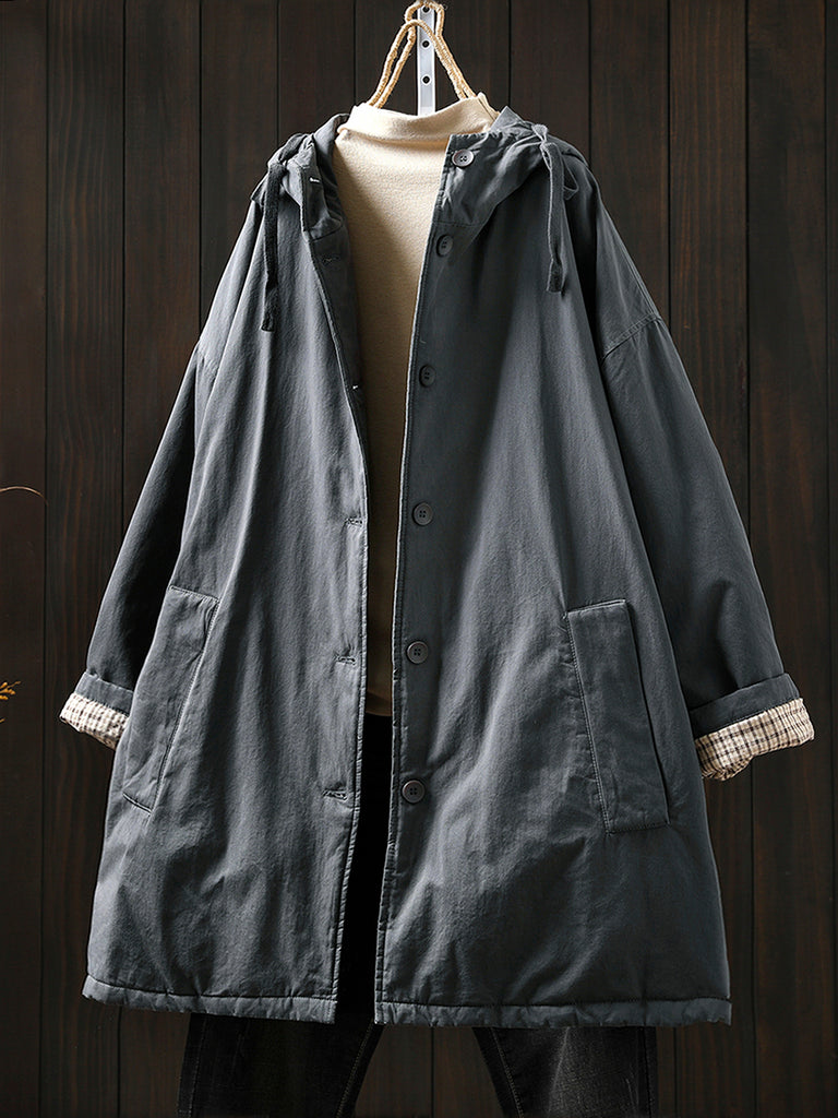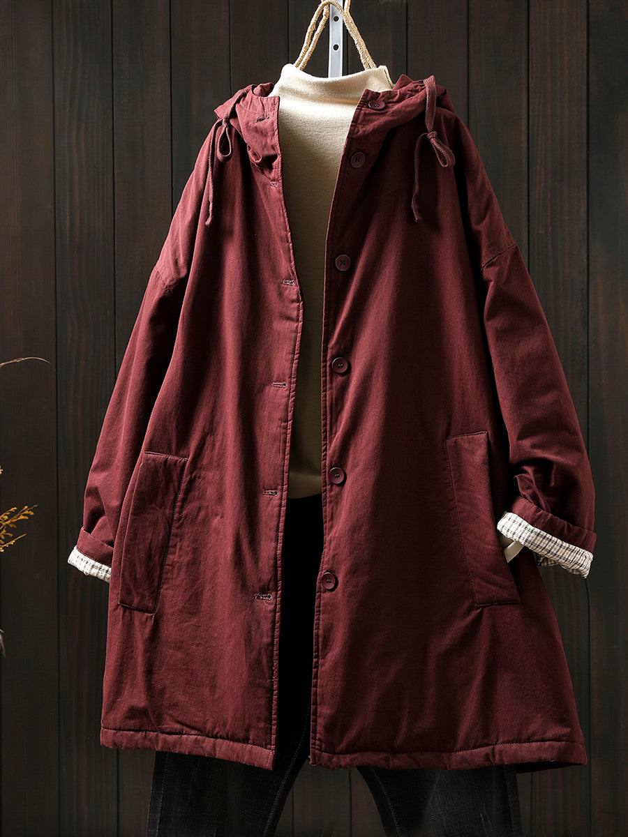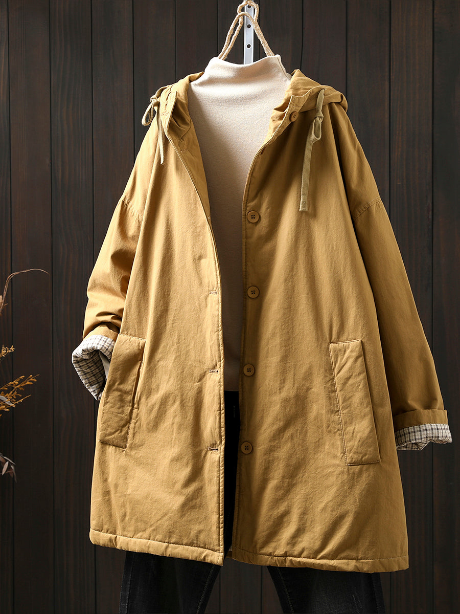 Abrigo acolchado con capucha para mujer, de color liso, ideal para el invierno.