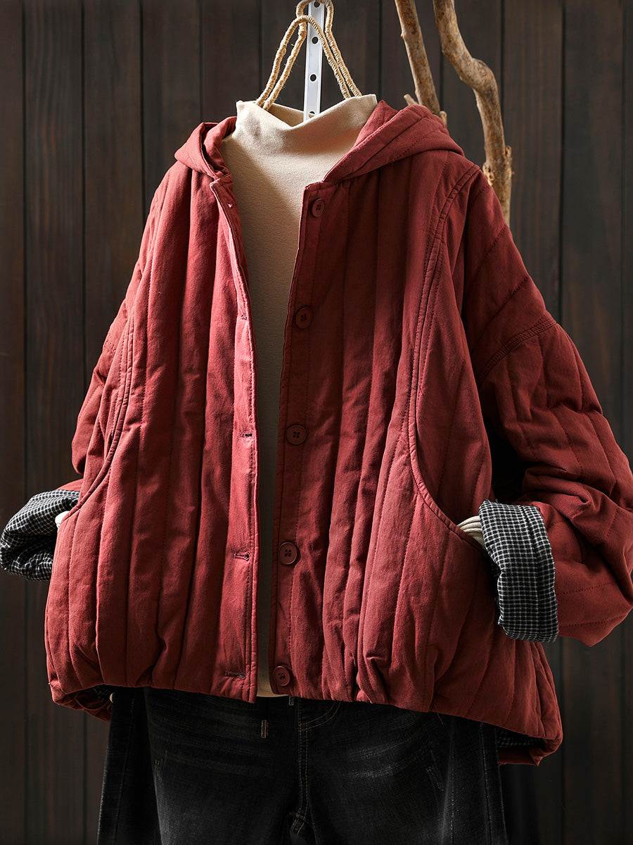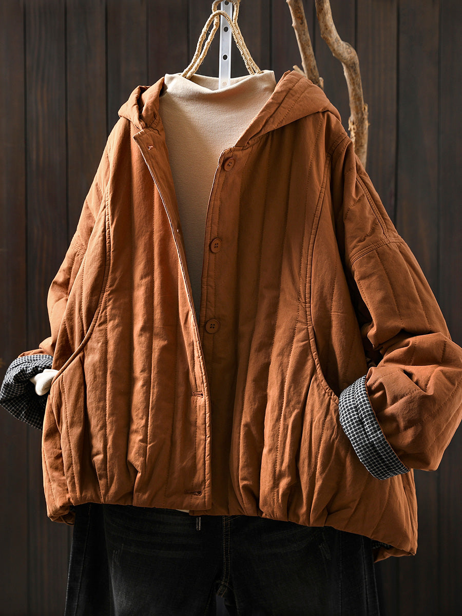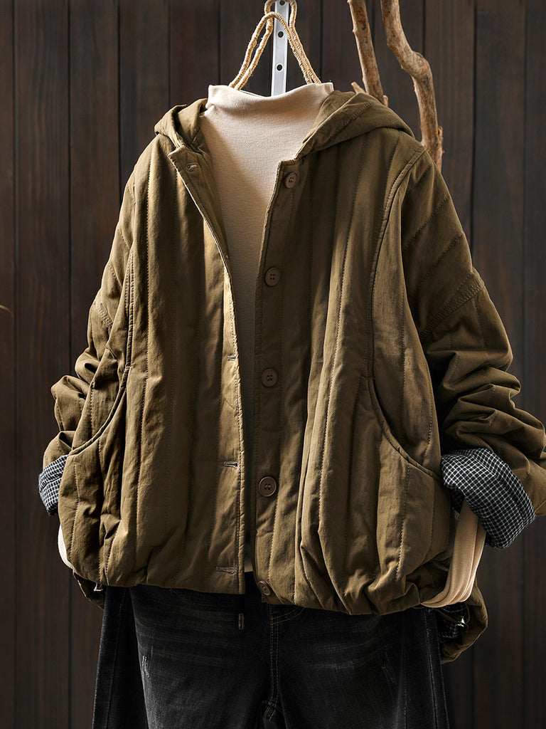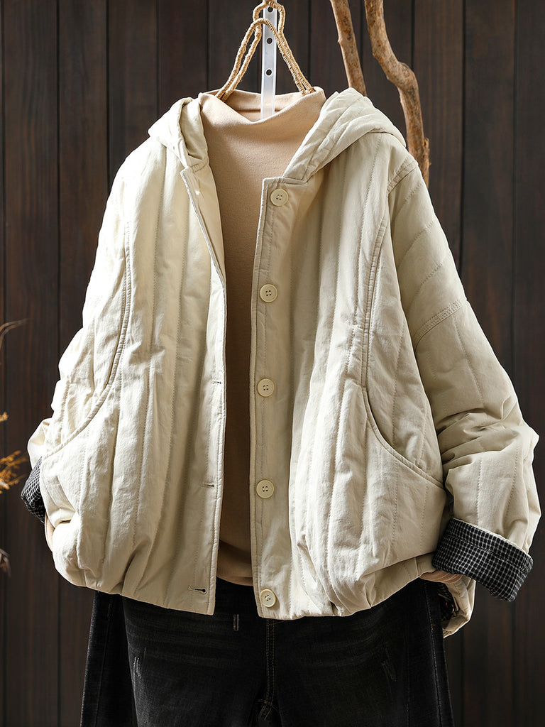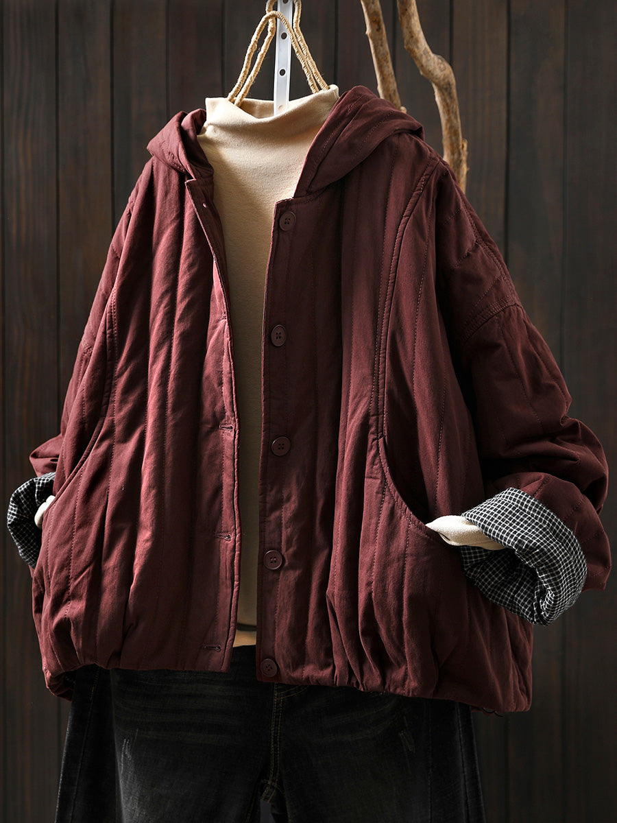 Abrigo con capucha acolchado de color puro informal de invierno para mujer
