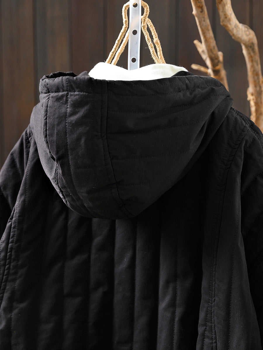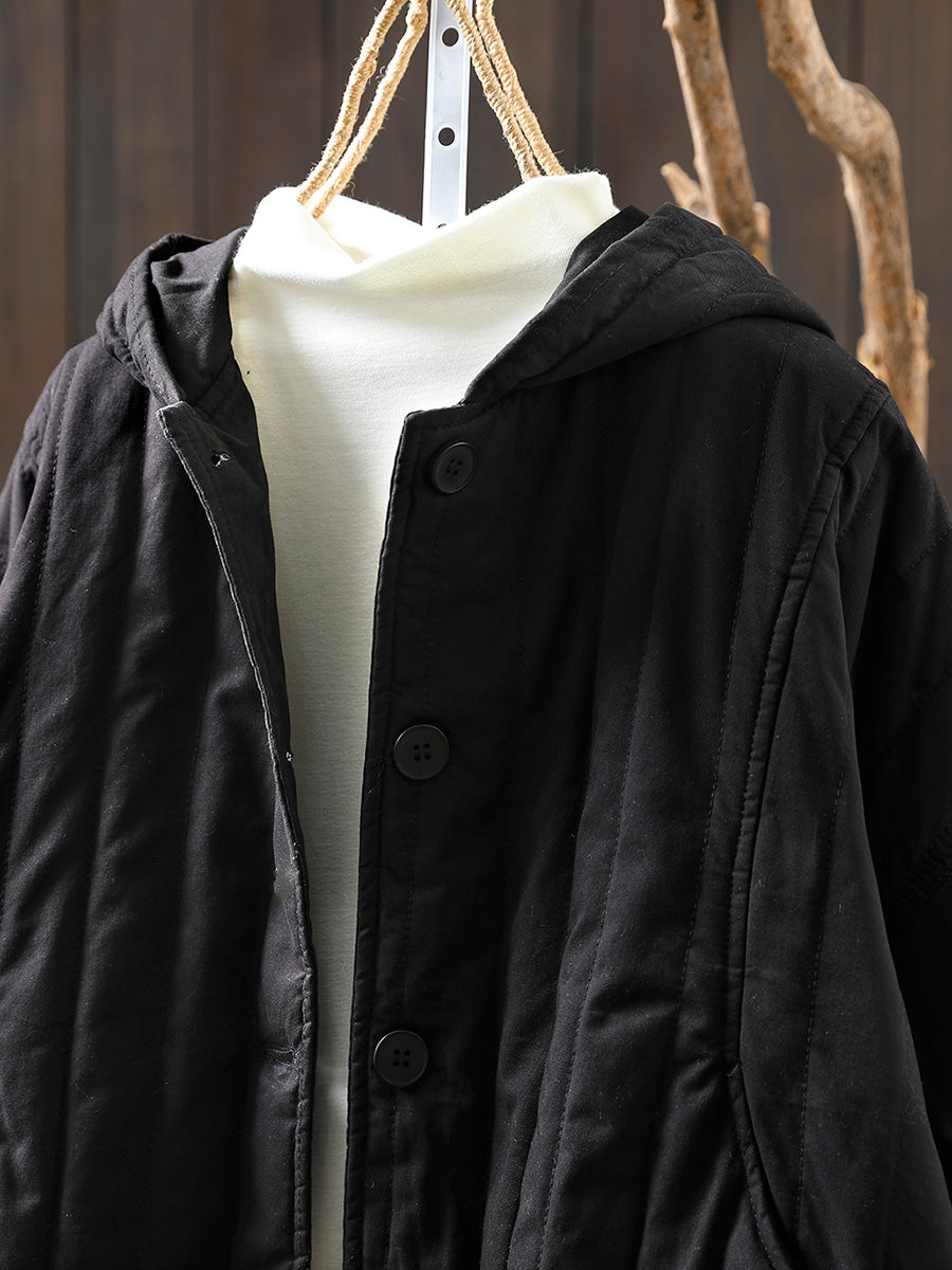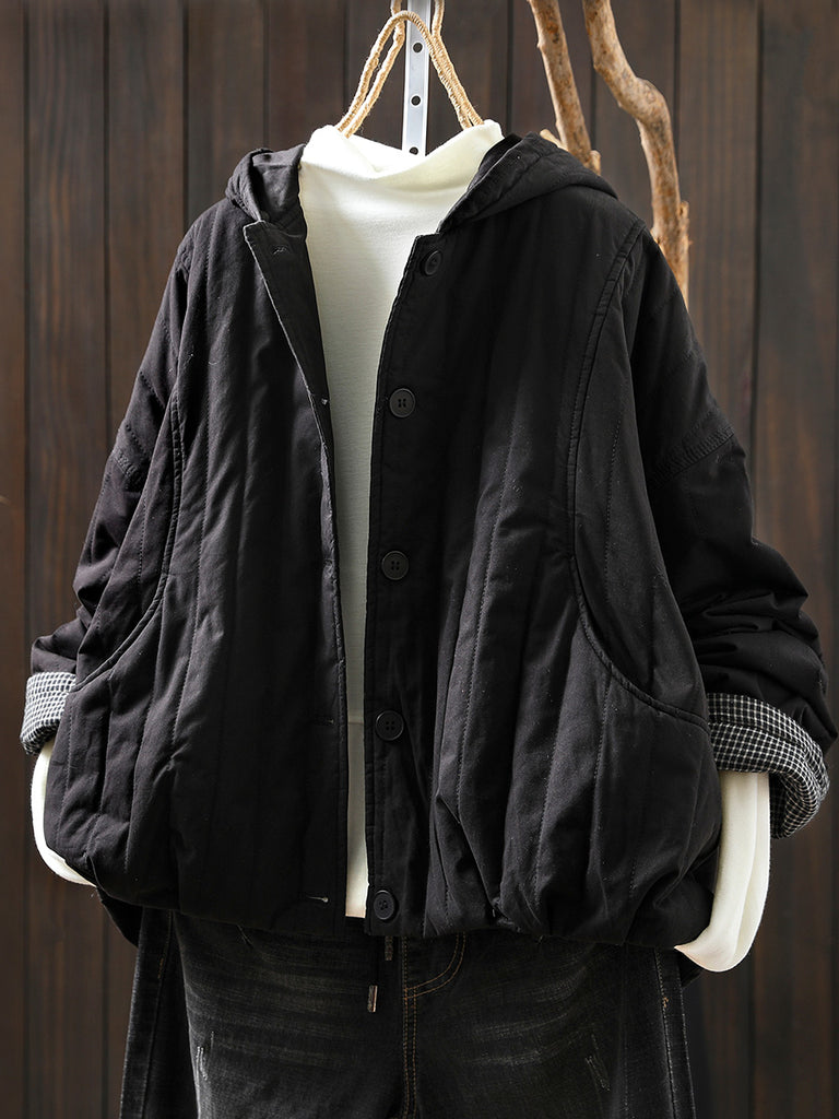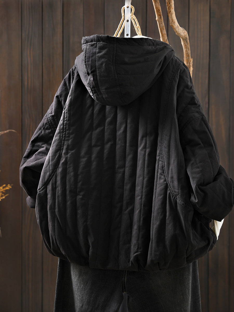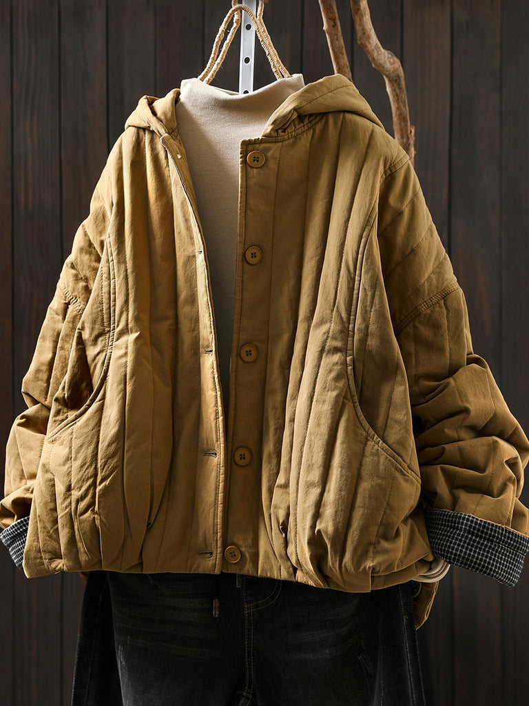 Abrigo con capucha acolchado de color puro informal de invierno para mujer