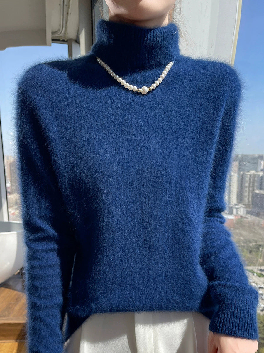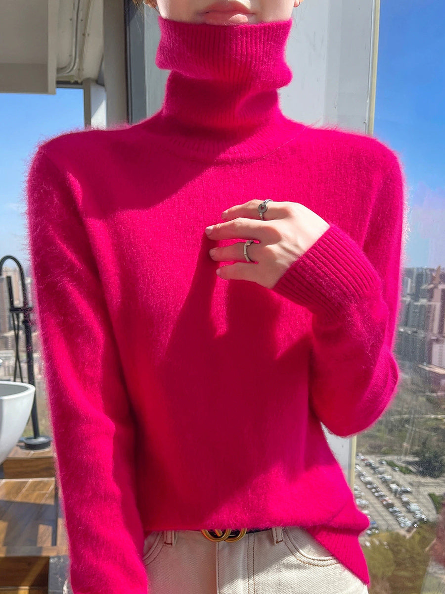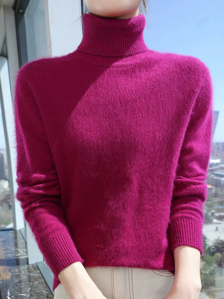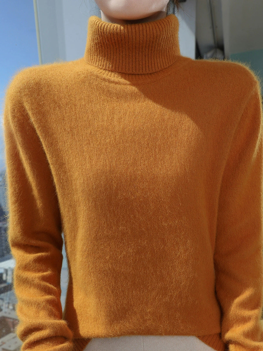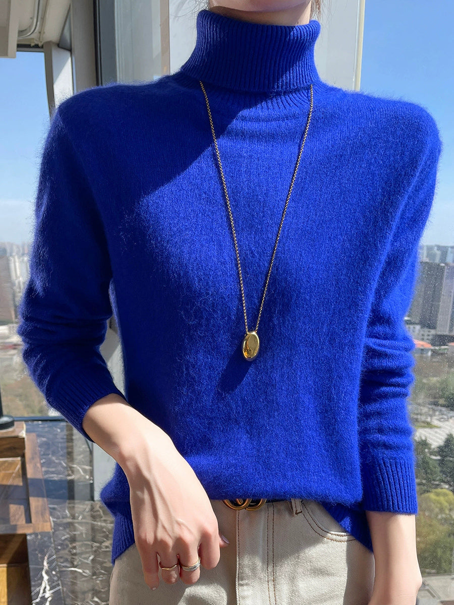 Suéter de cuello alto de color puro informal de invierno para mujer