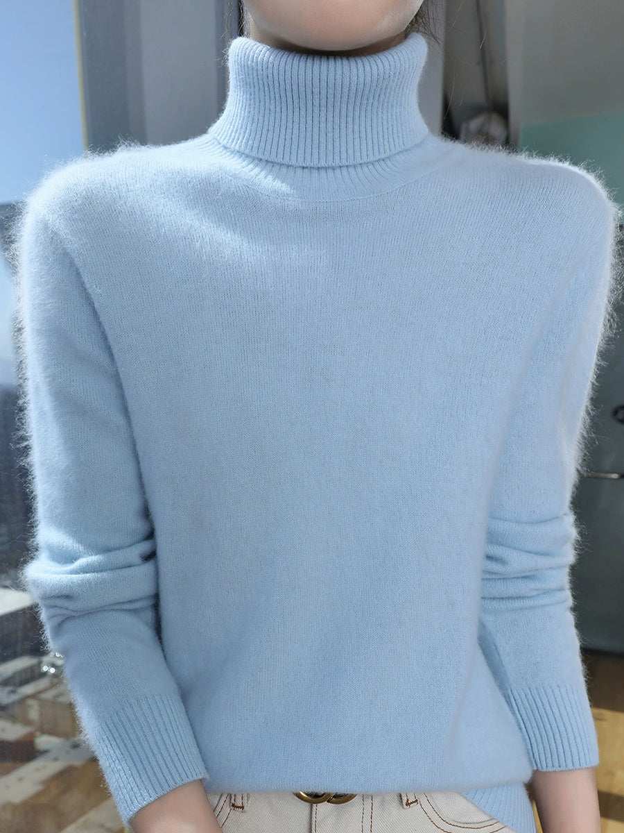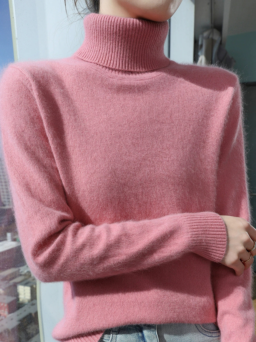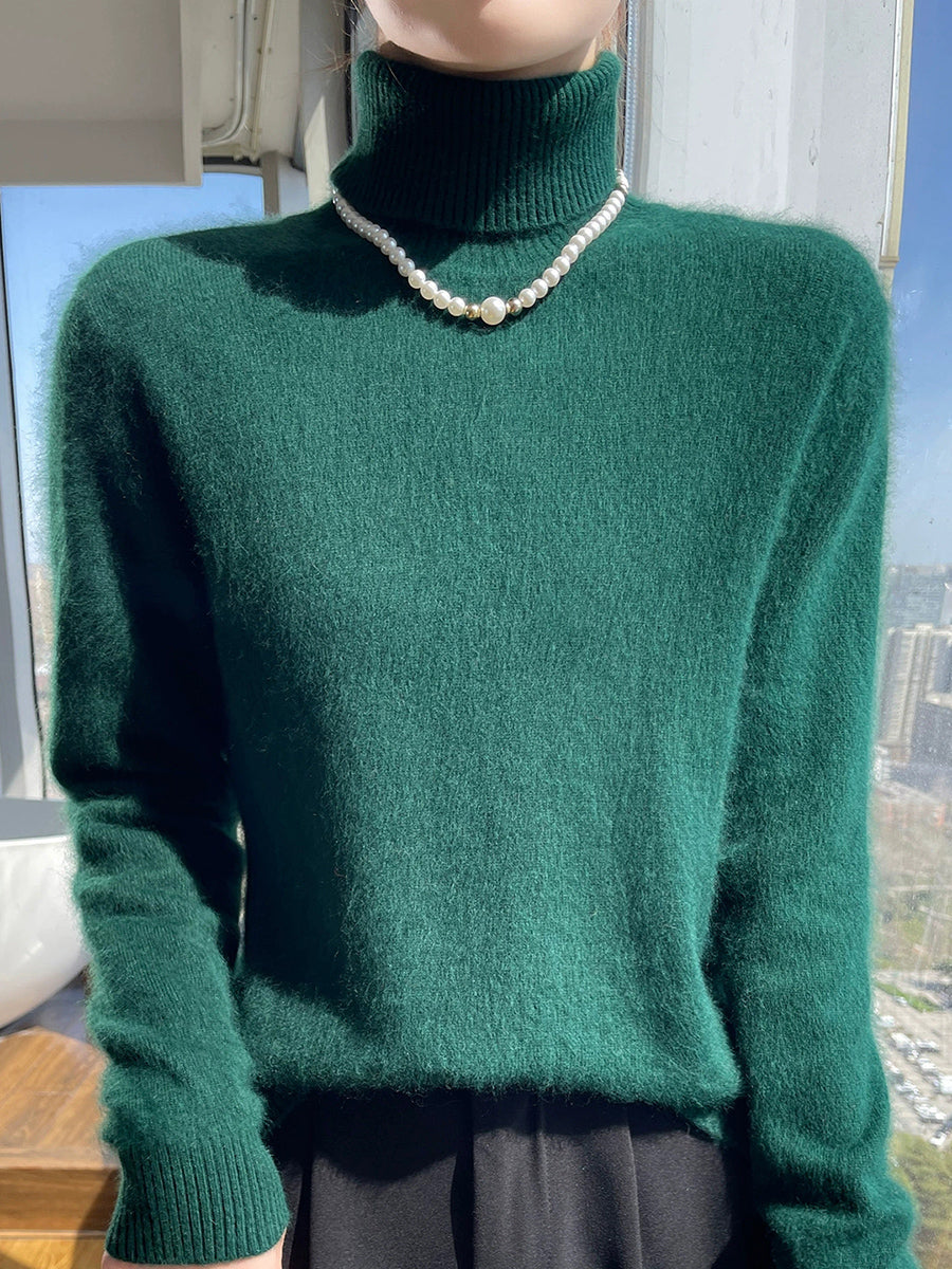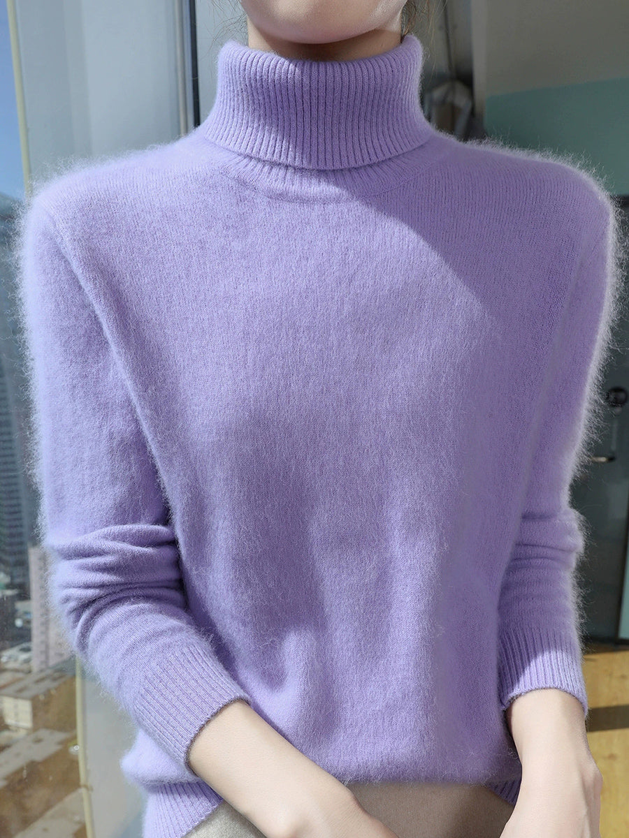 Suéter de cuello alto de color puro informal de invierno para mujer