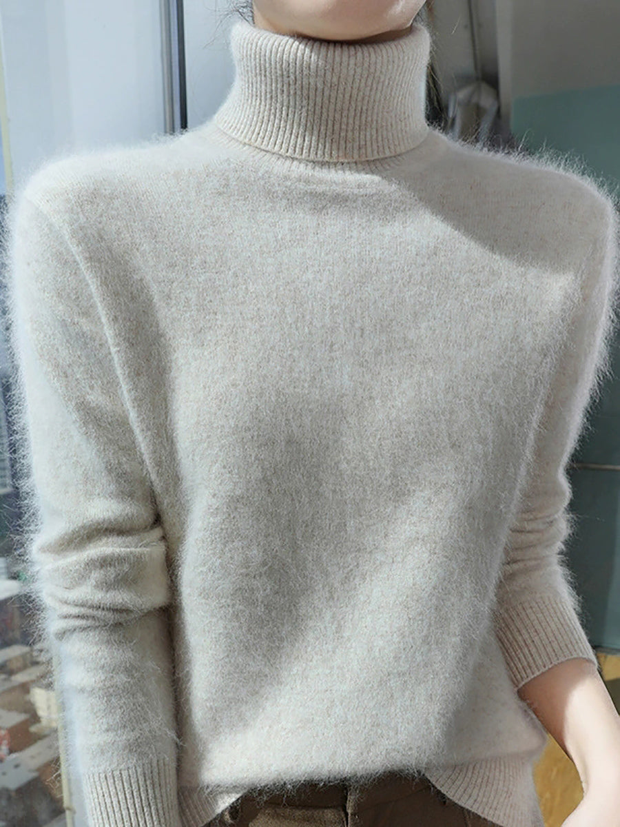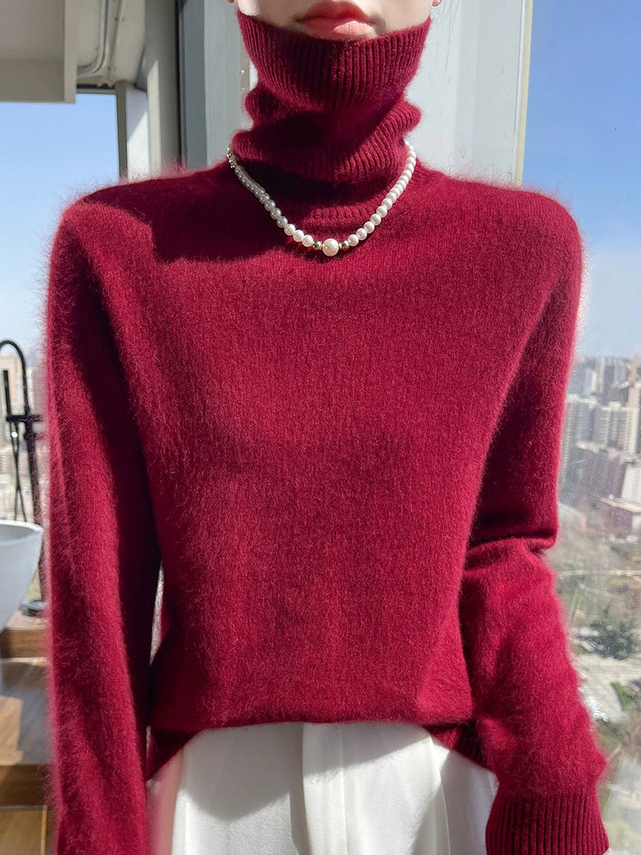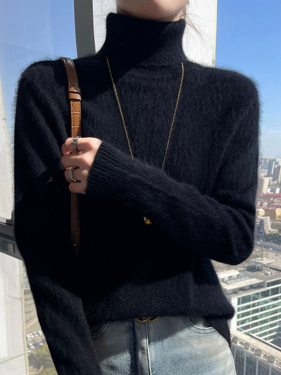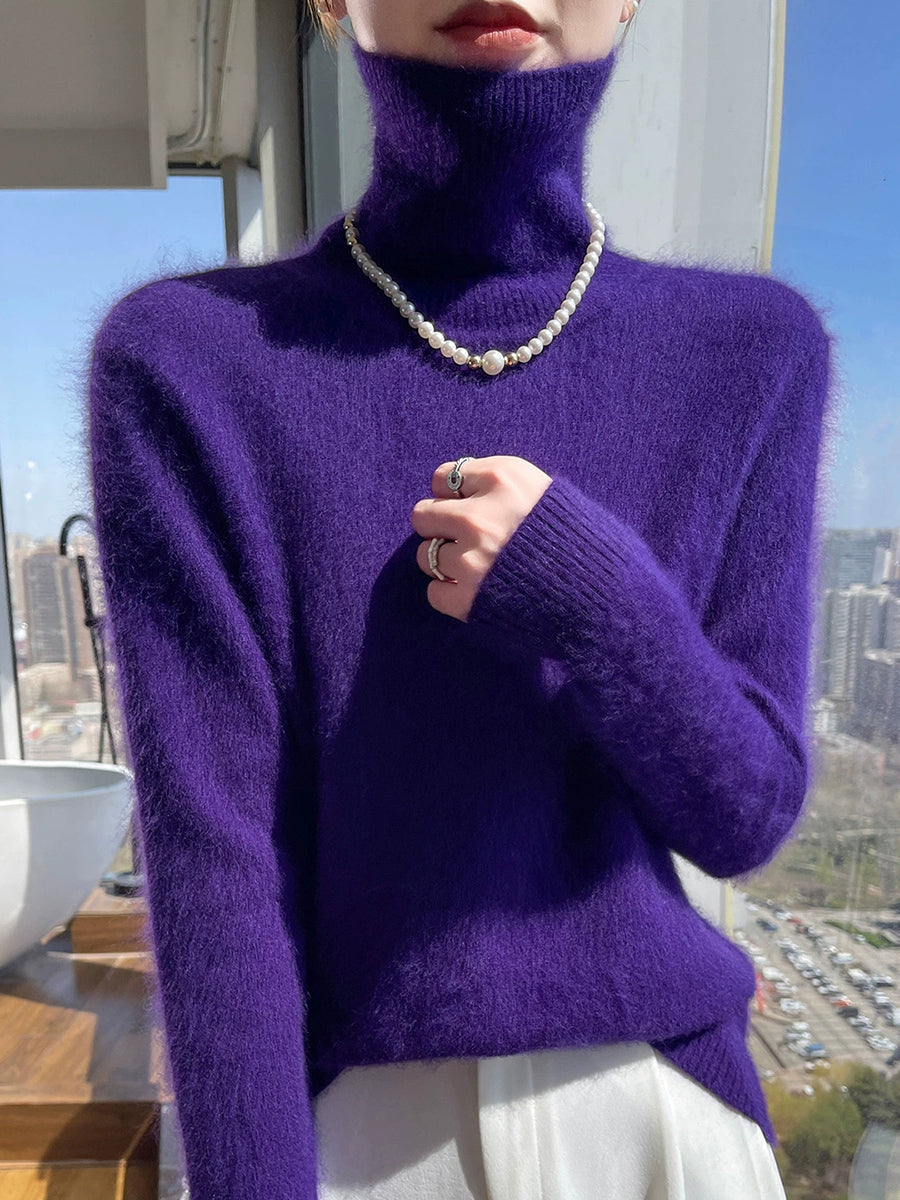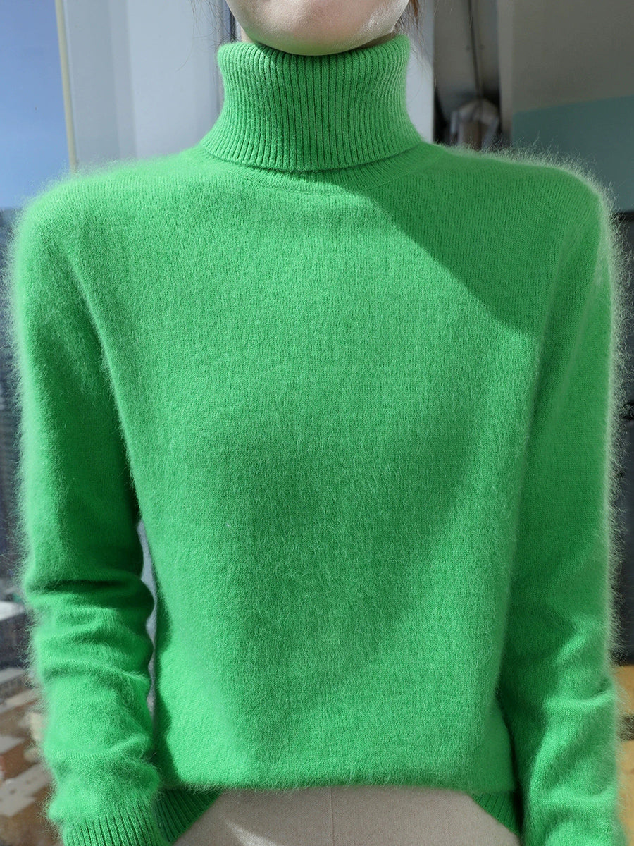 Suéter de cuello alto de color puro informal de invierno para mujer