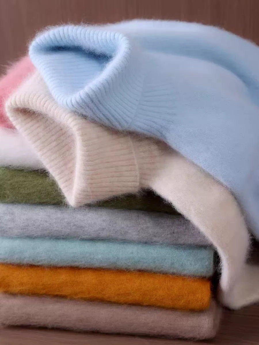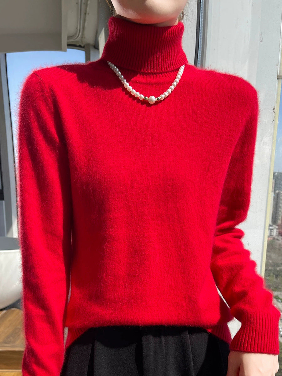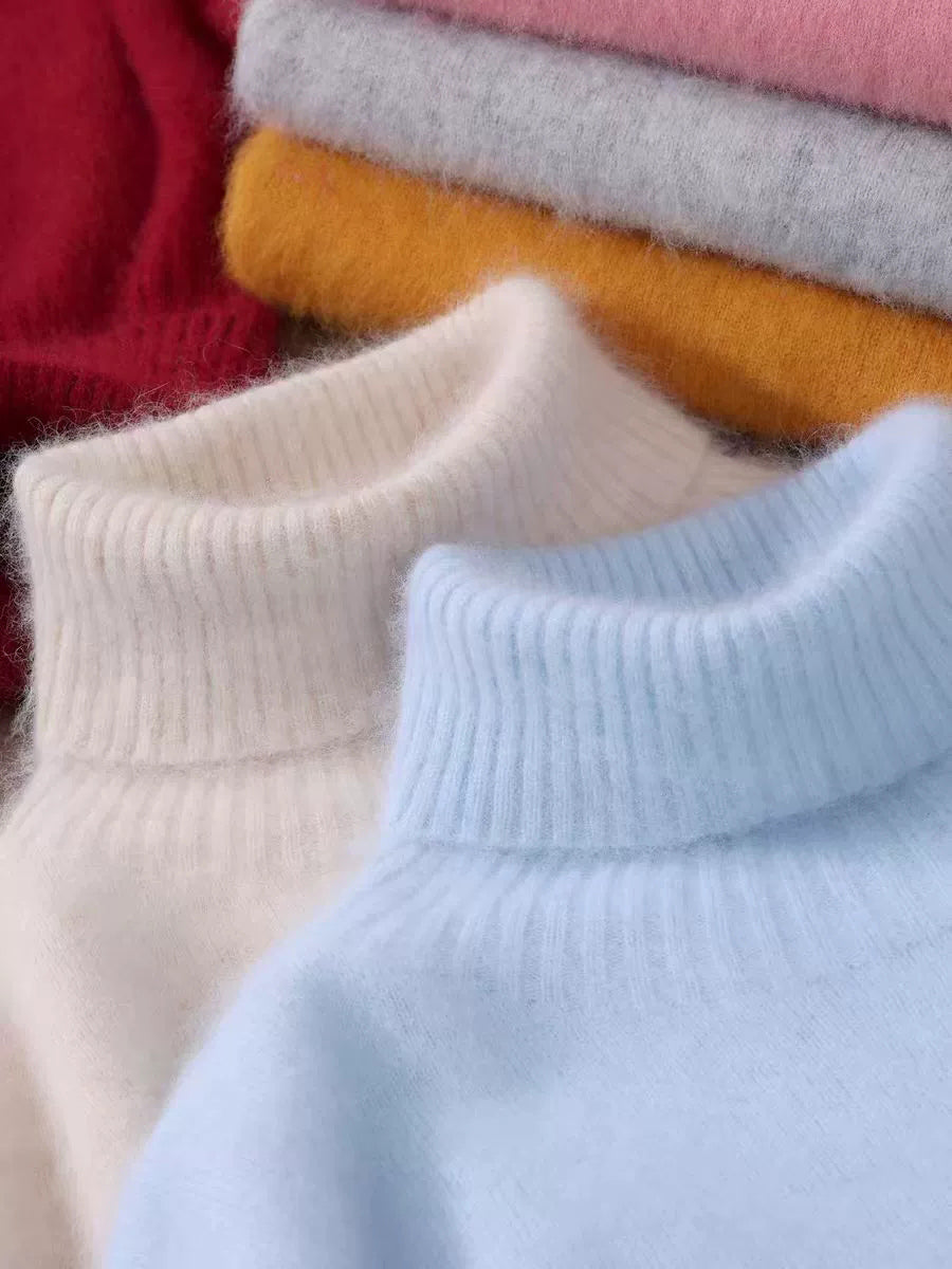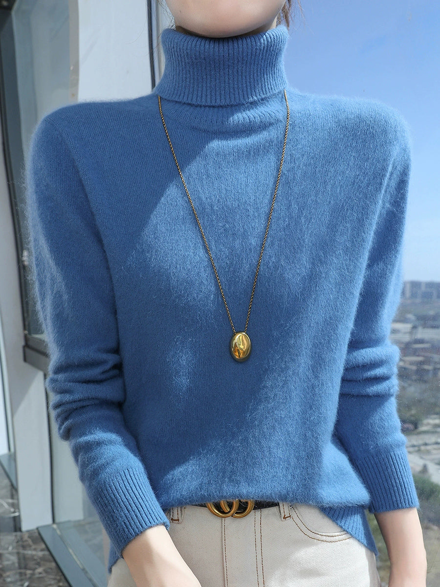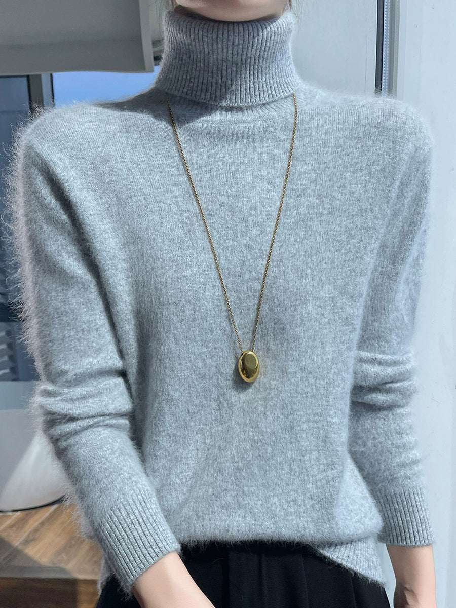 Suéter de cuello alto de color puro informal de invierno para mujer