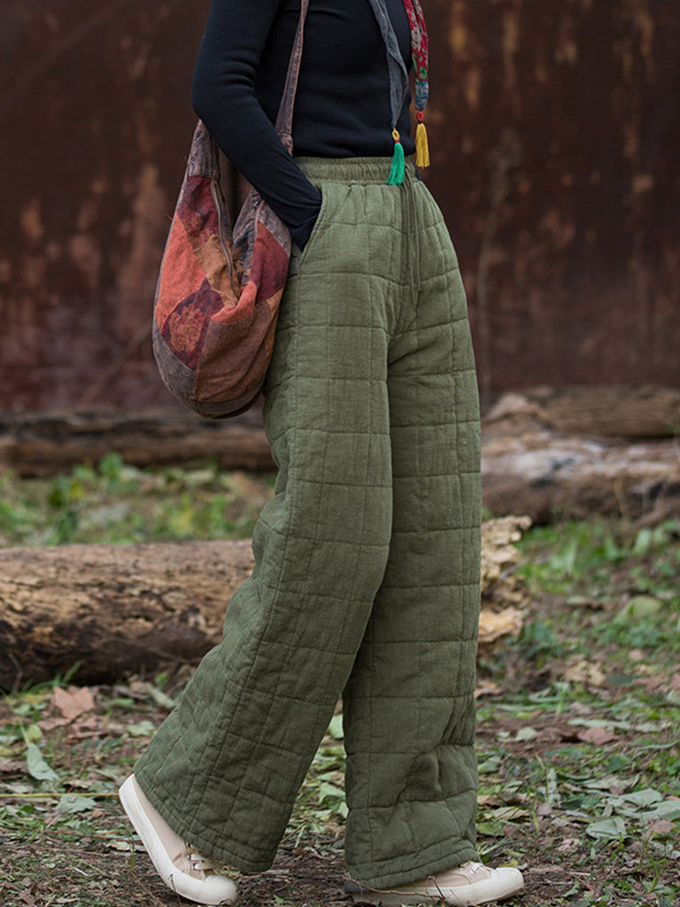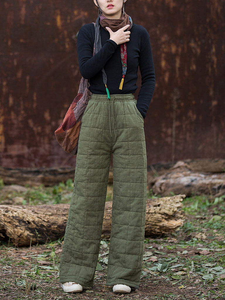 Pantalones rectos de invierno informales para mujer, forrados con forro polar de ramio