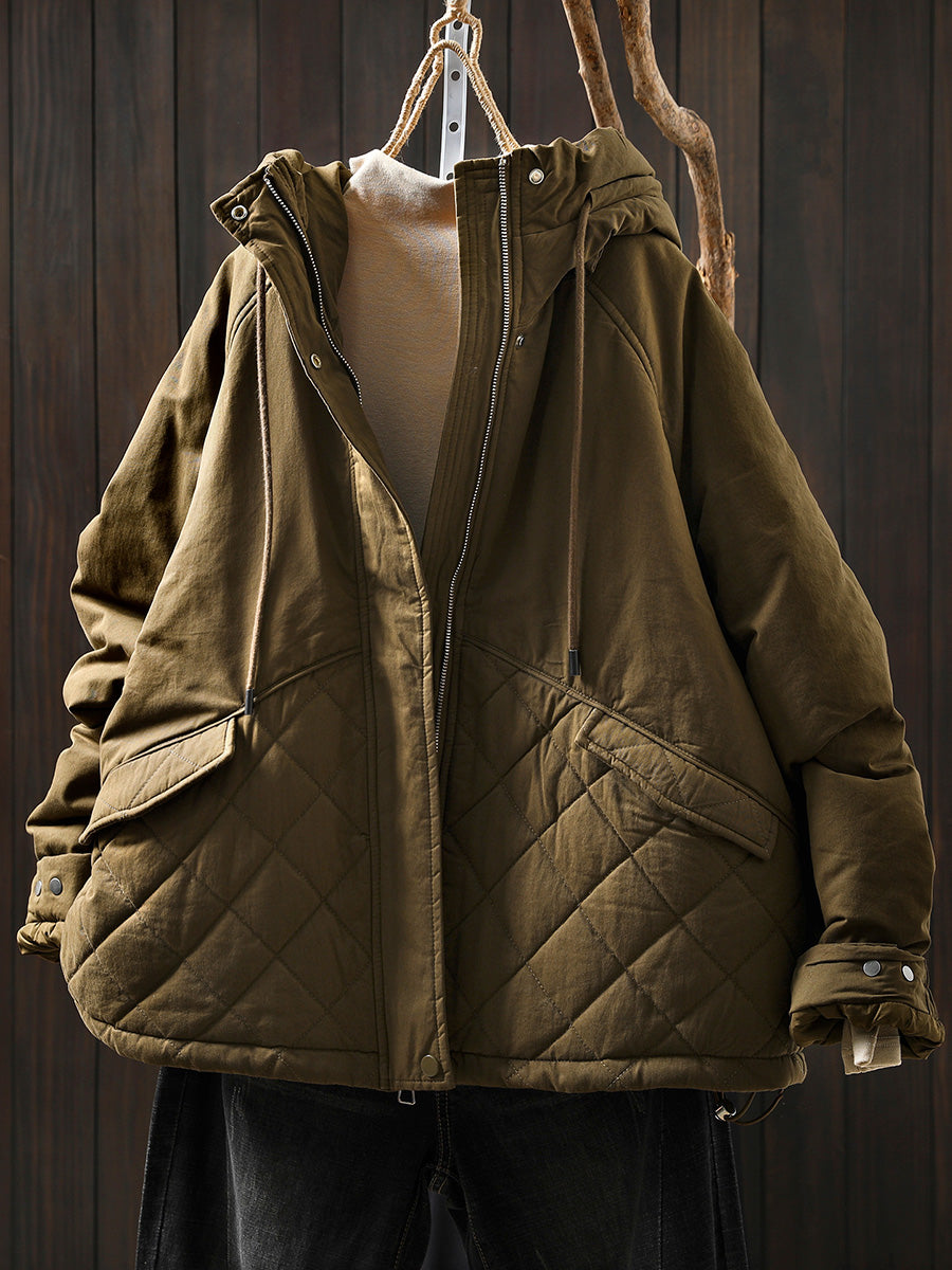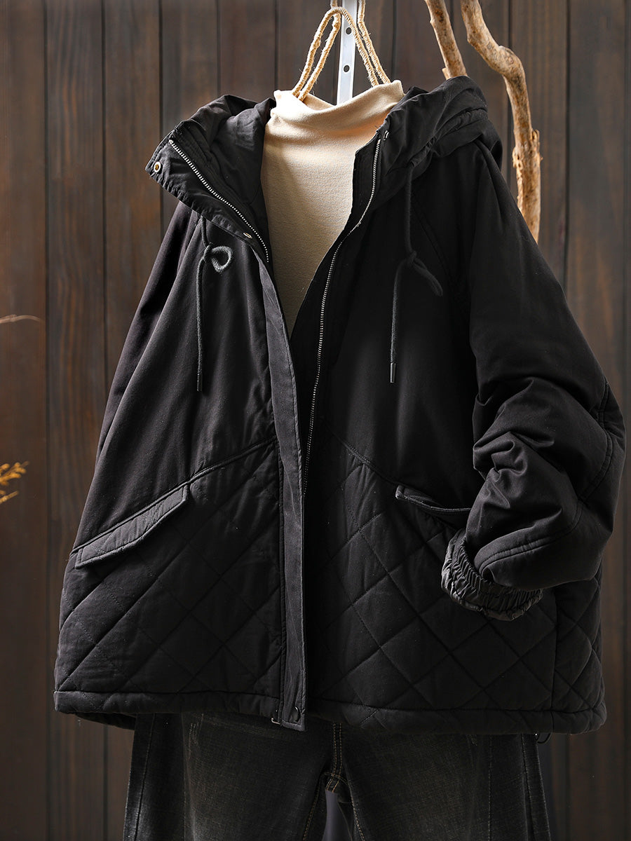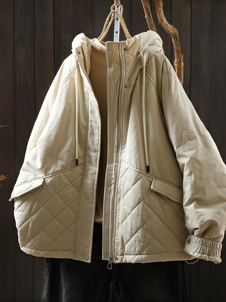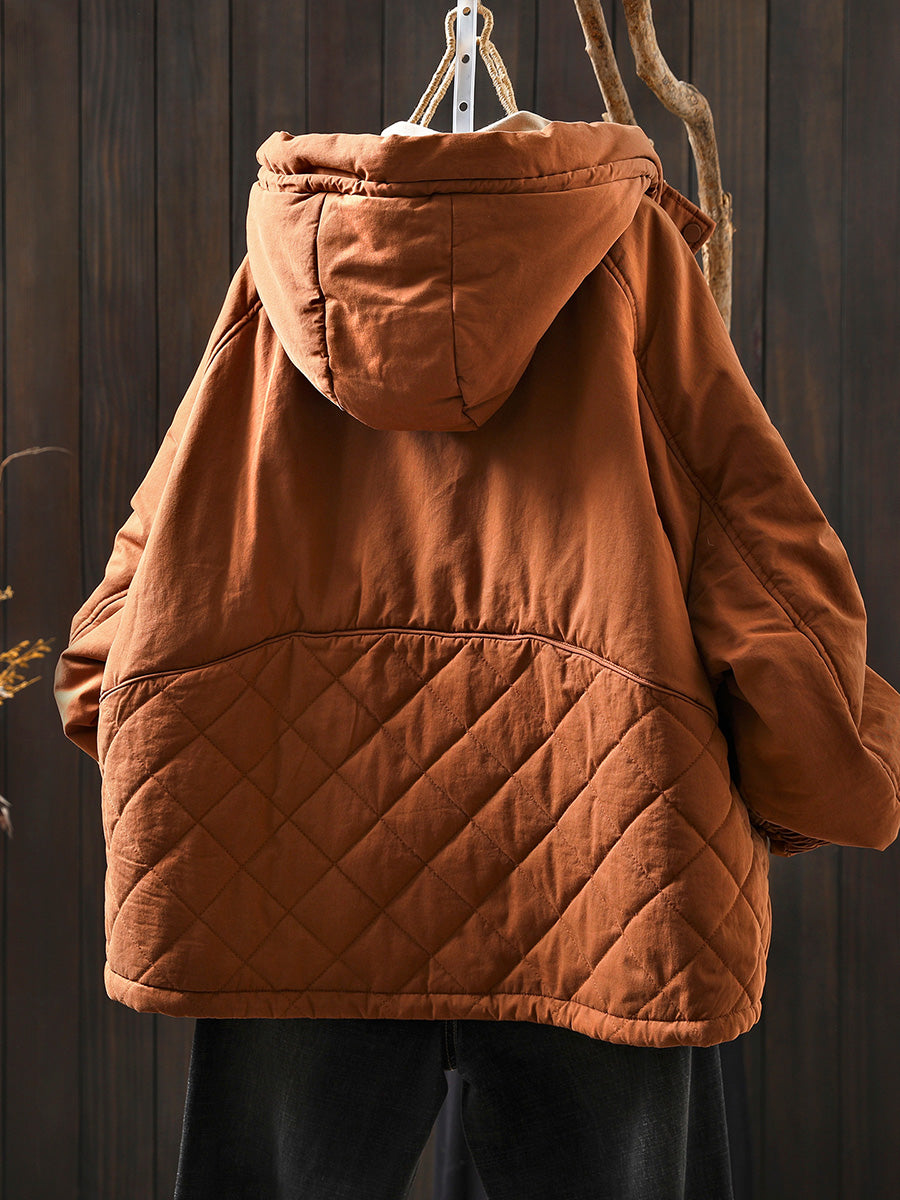 Abrigo acolchado con capucha para mujer, estilo casual de invierno, con estampado de rombos.