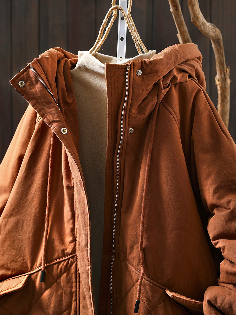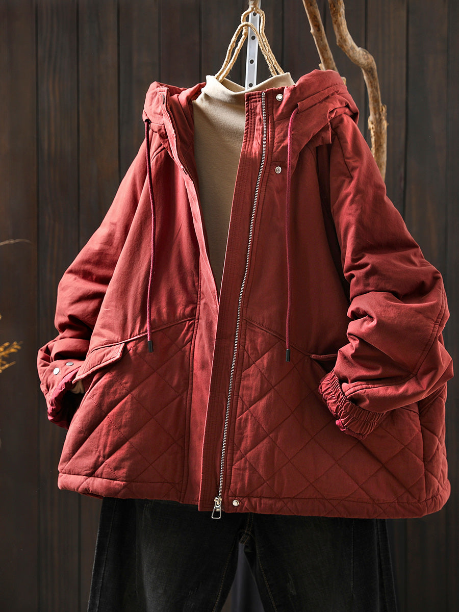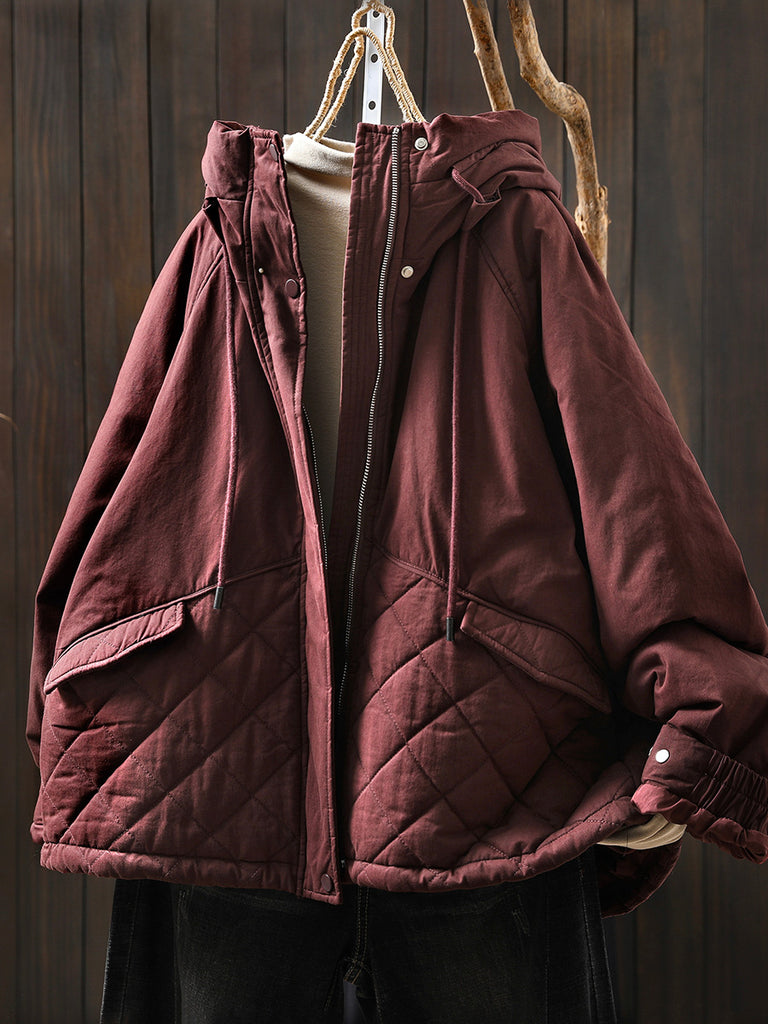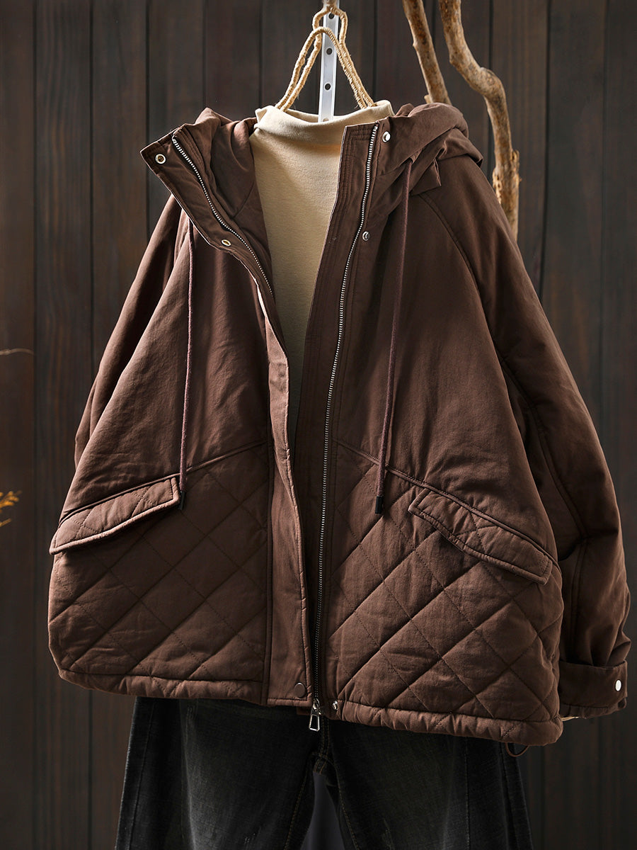 Abrigo acolchado con capucha para mujer, estilo casual de invierno, con estampado de rombos.