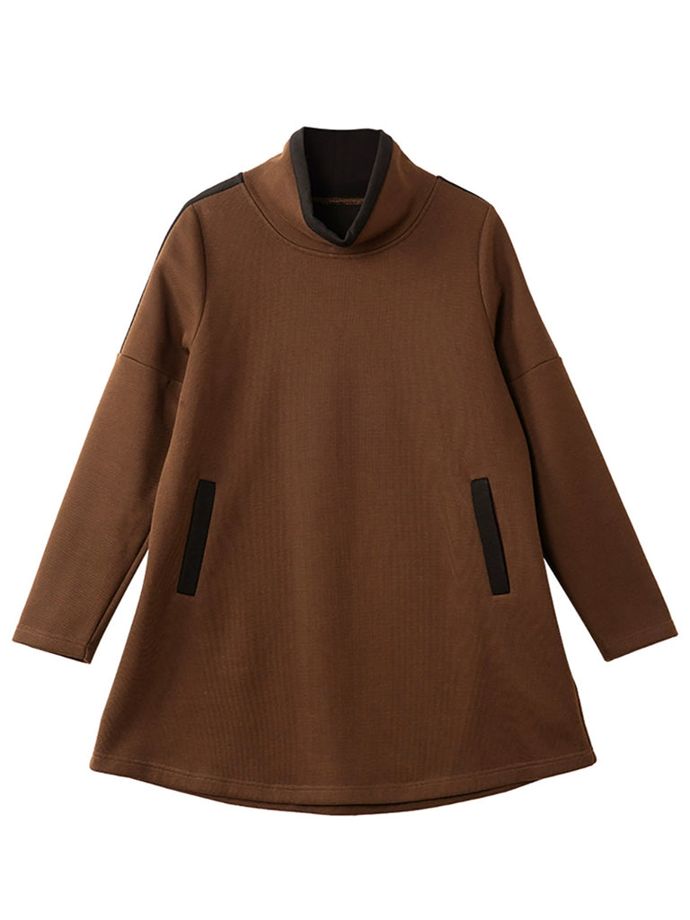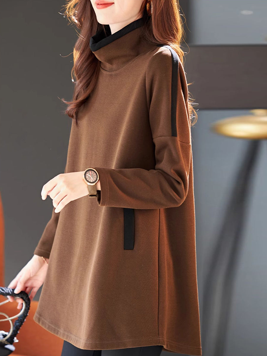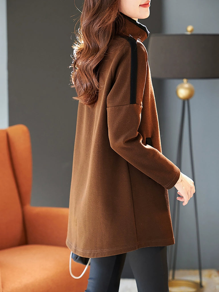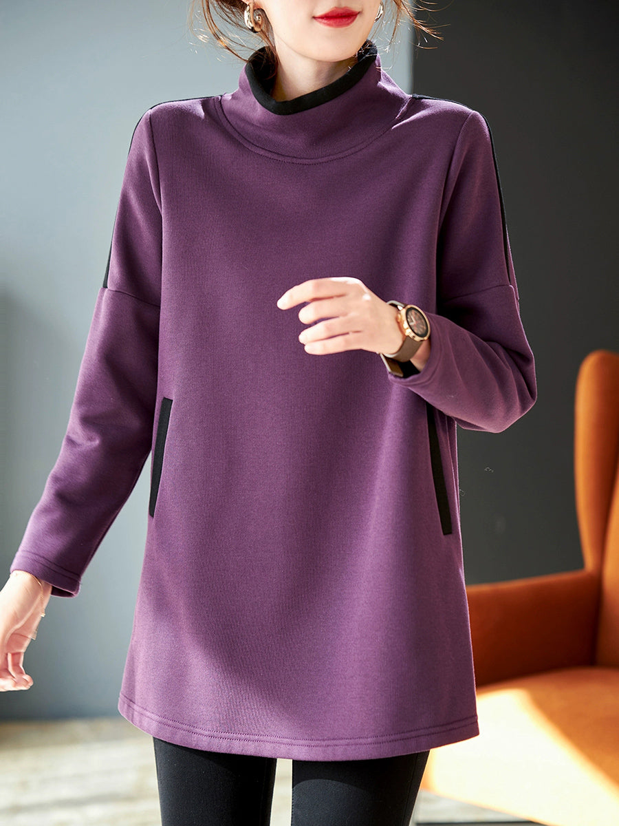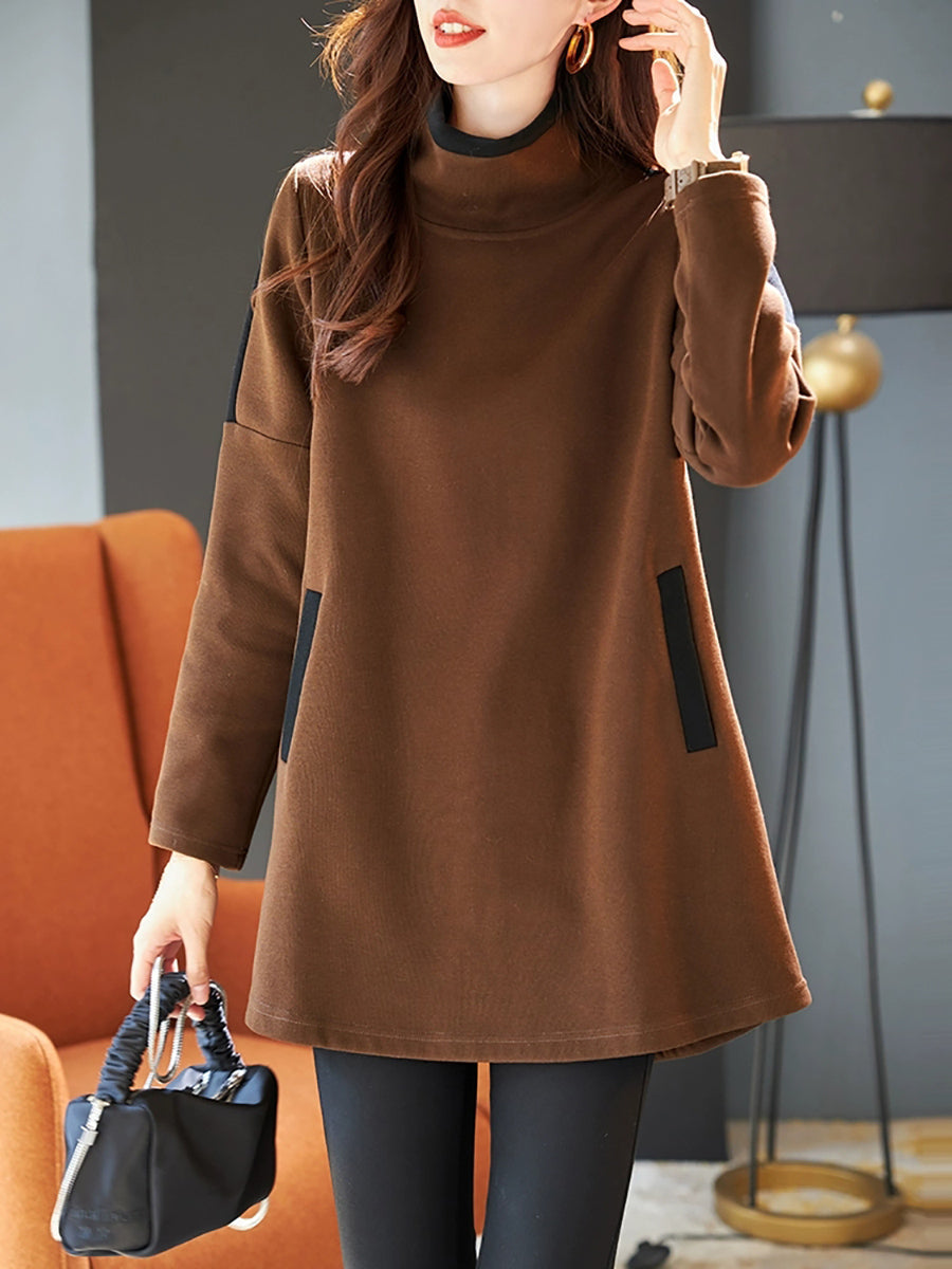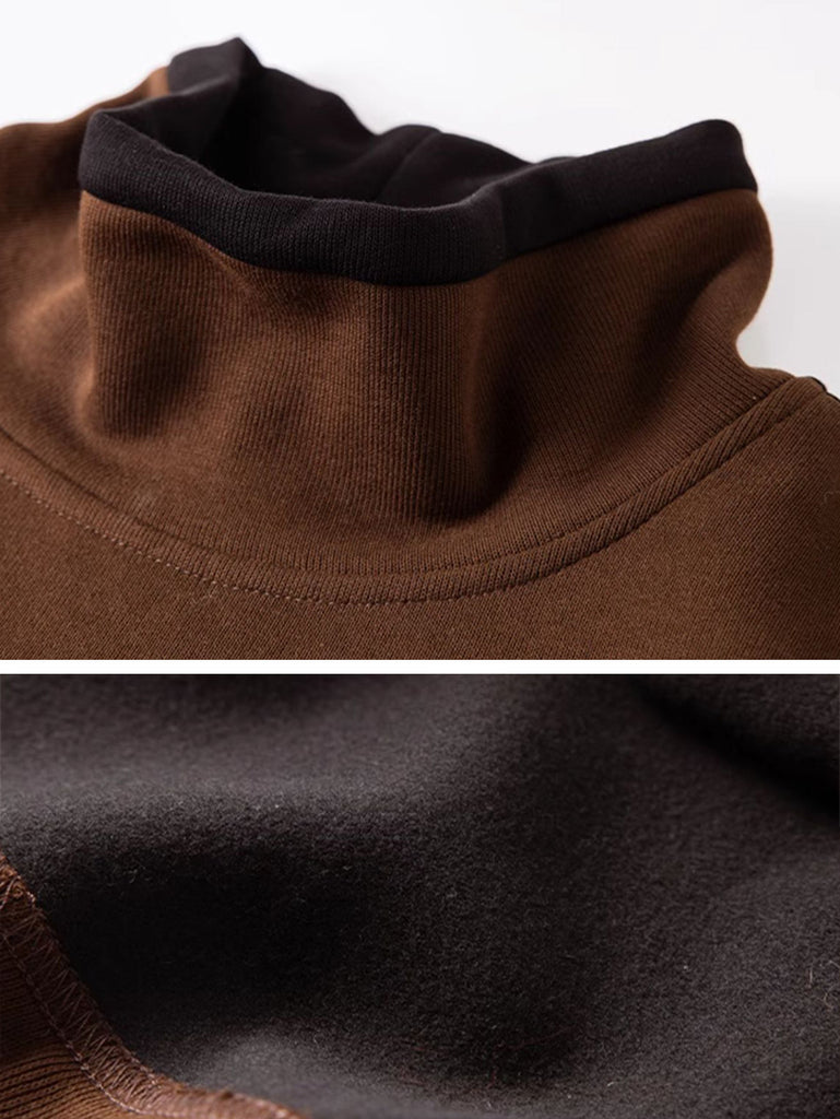 Blusa de invierno para mujer con cuello alto y forro polar, diseño colorblock.