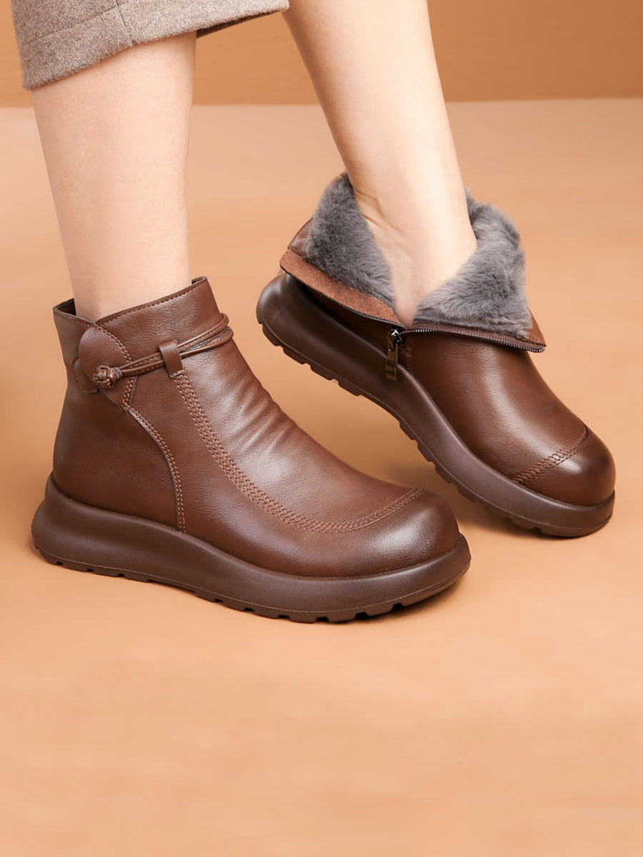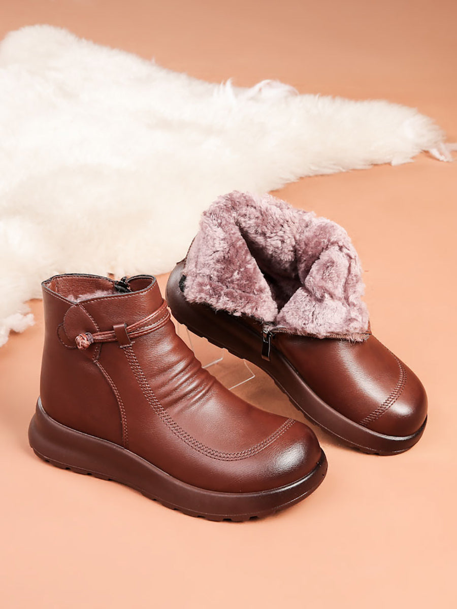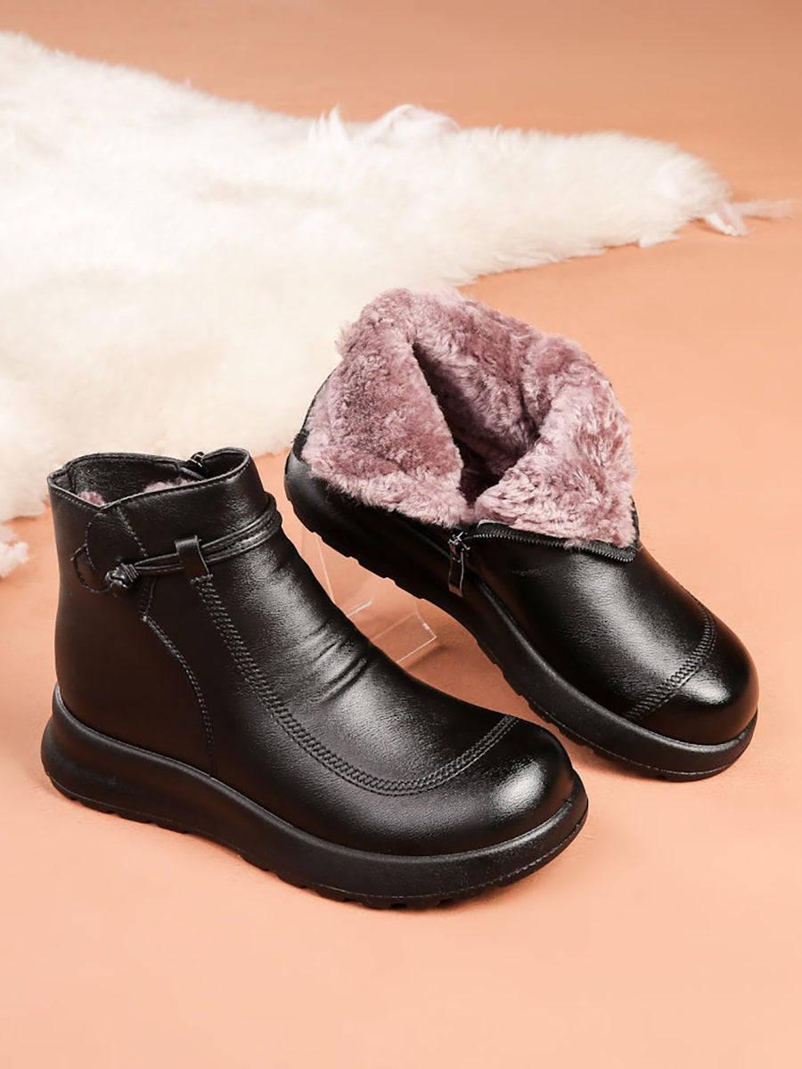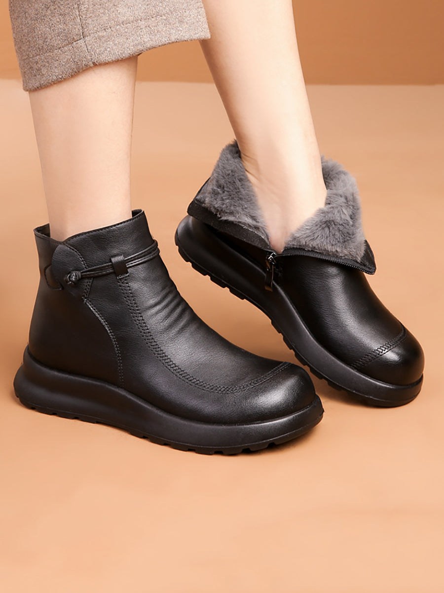 Botines de invierno de piel auténtica con forro polar para mujer