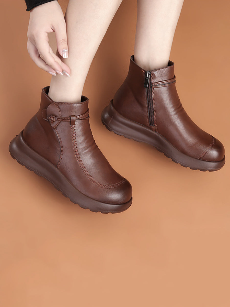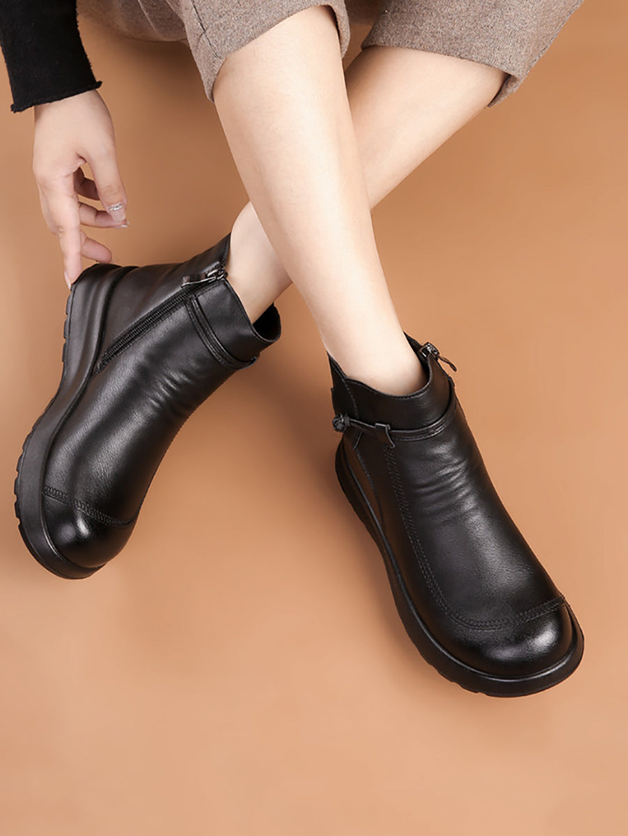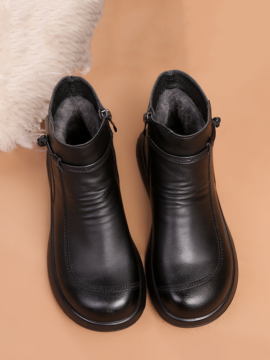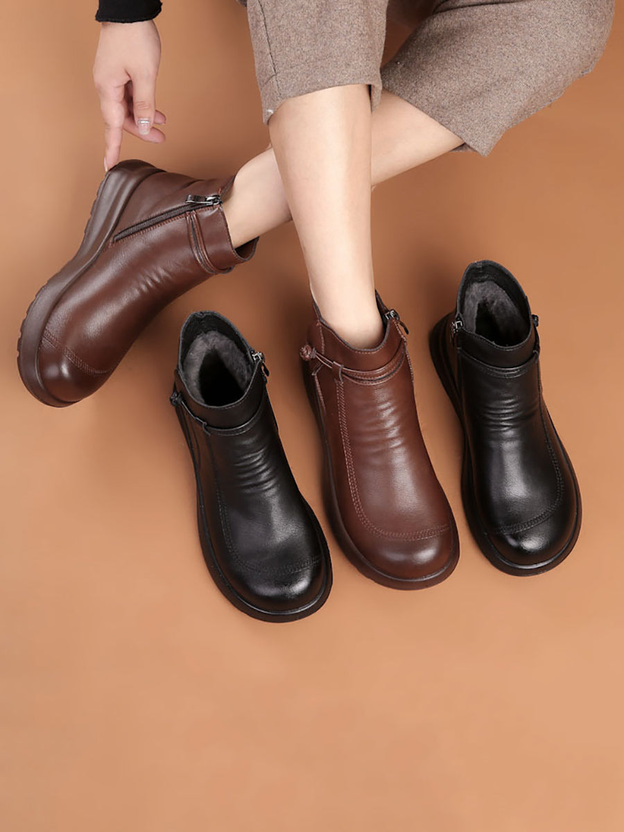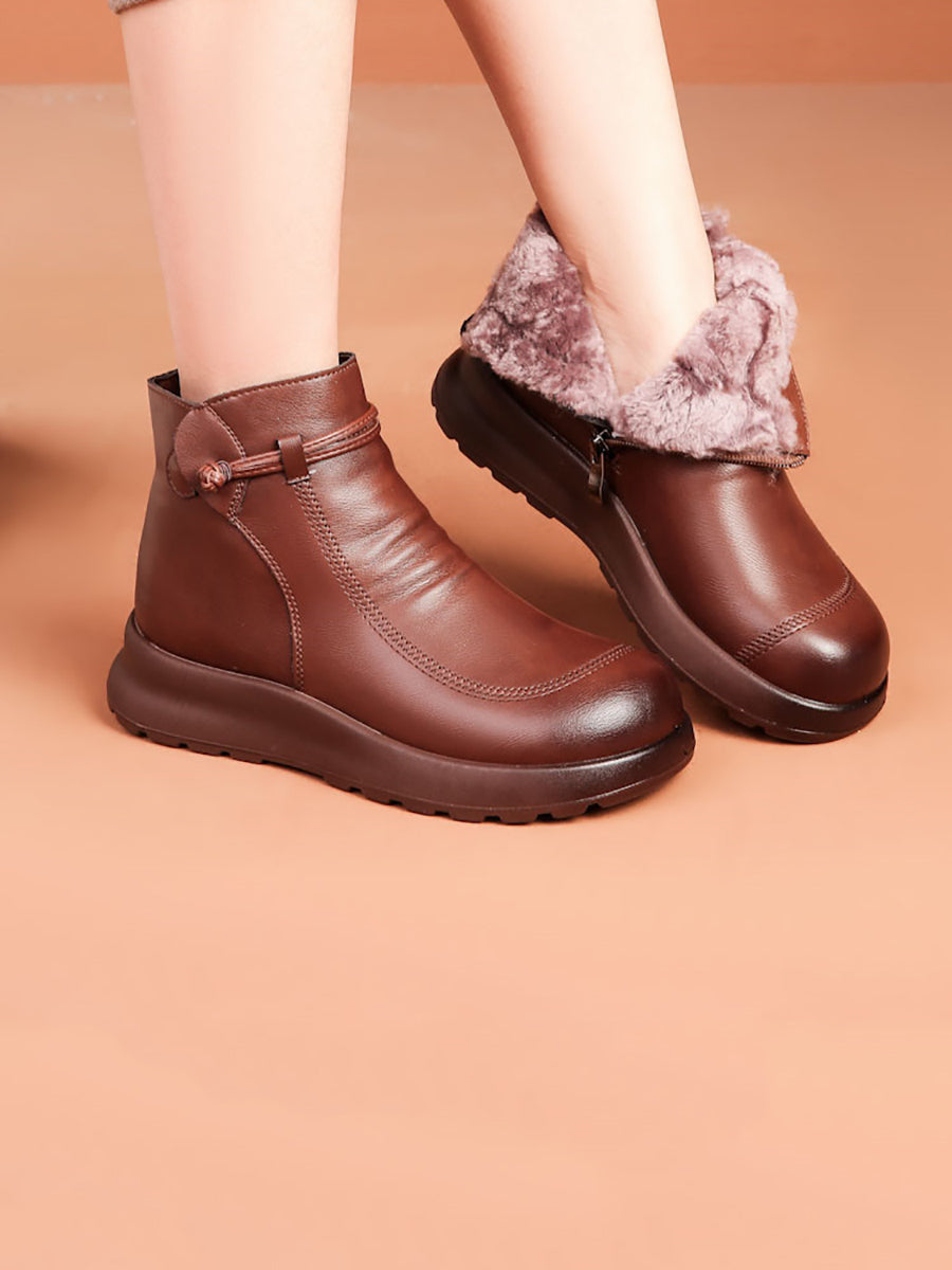 Botines de invierno de piel auténtica con forro polar para mujer