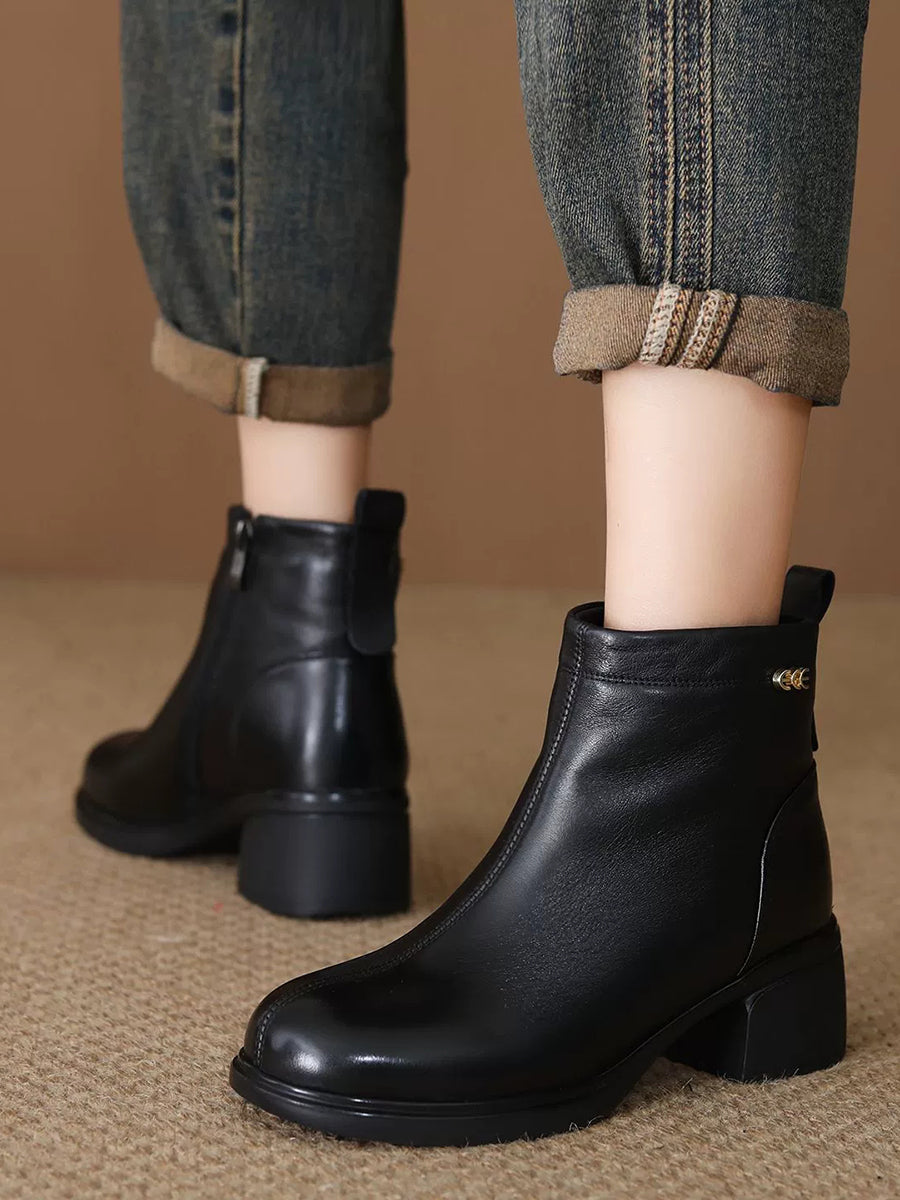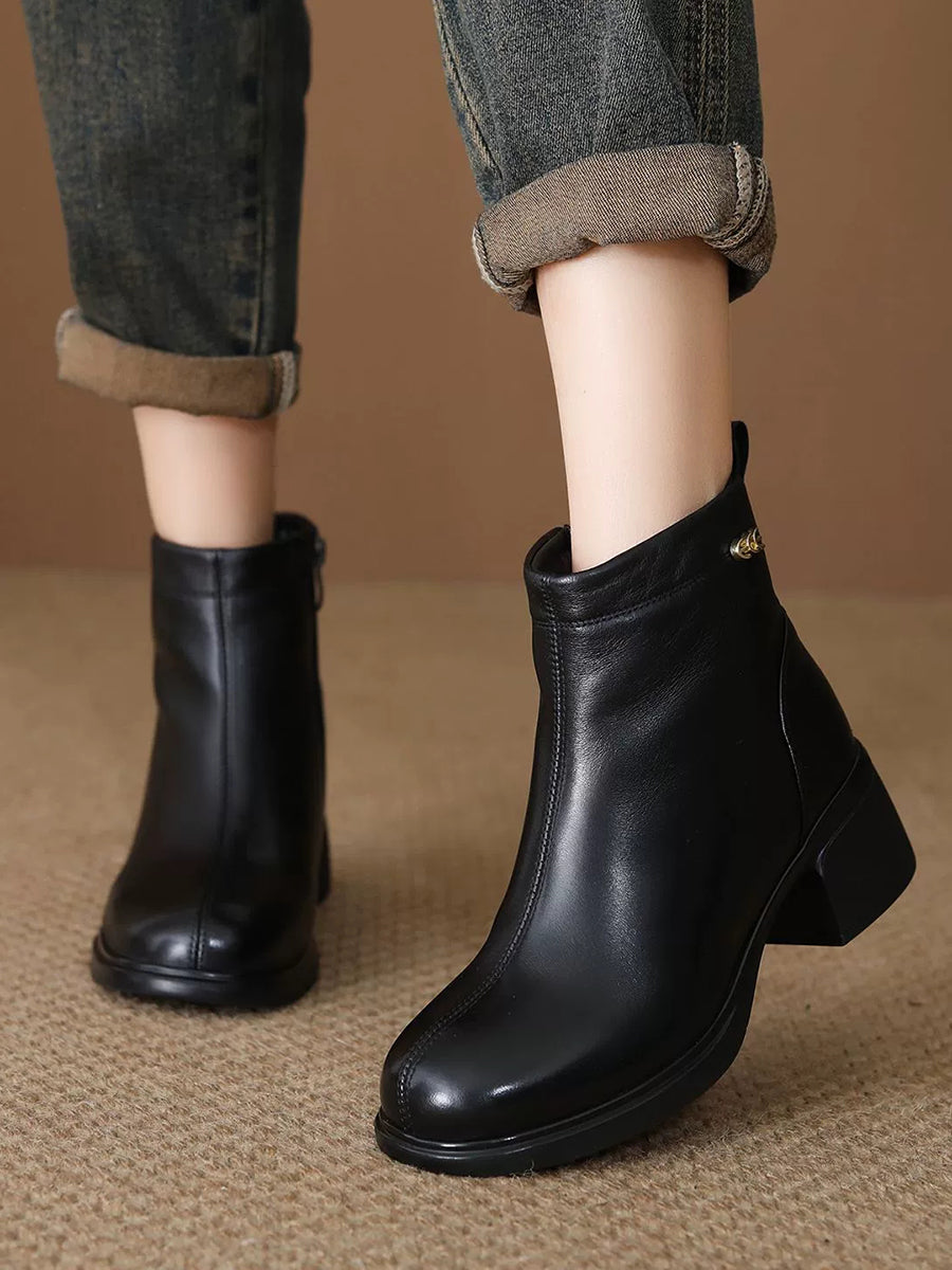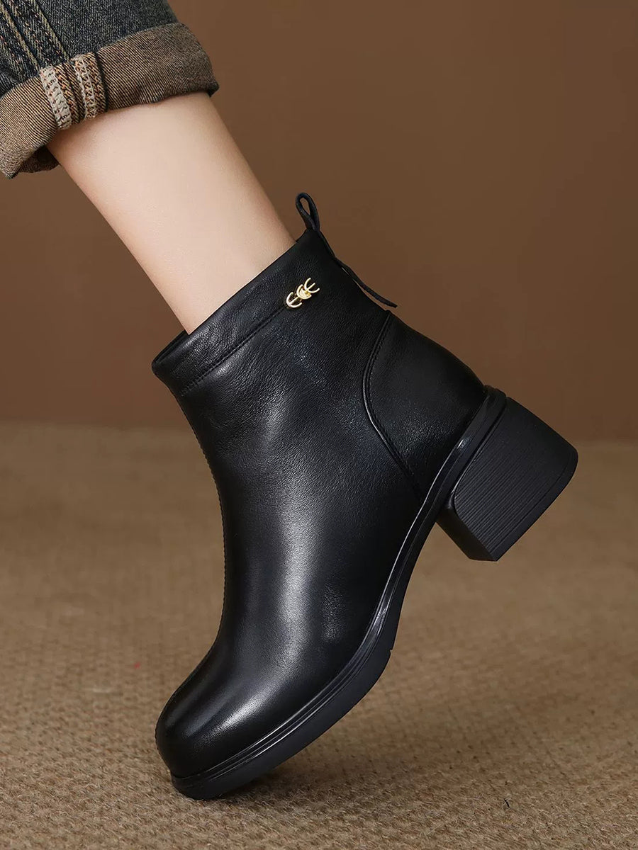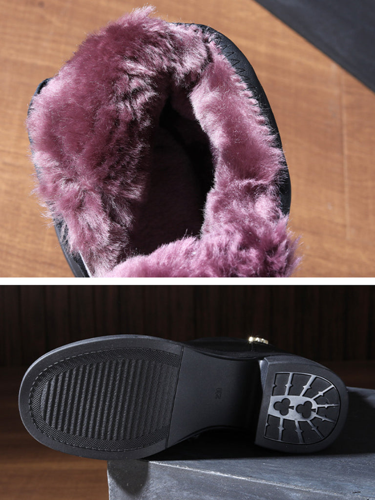 Botas de tacón medio con forro polar de piel auténtica para mujer, de invierno