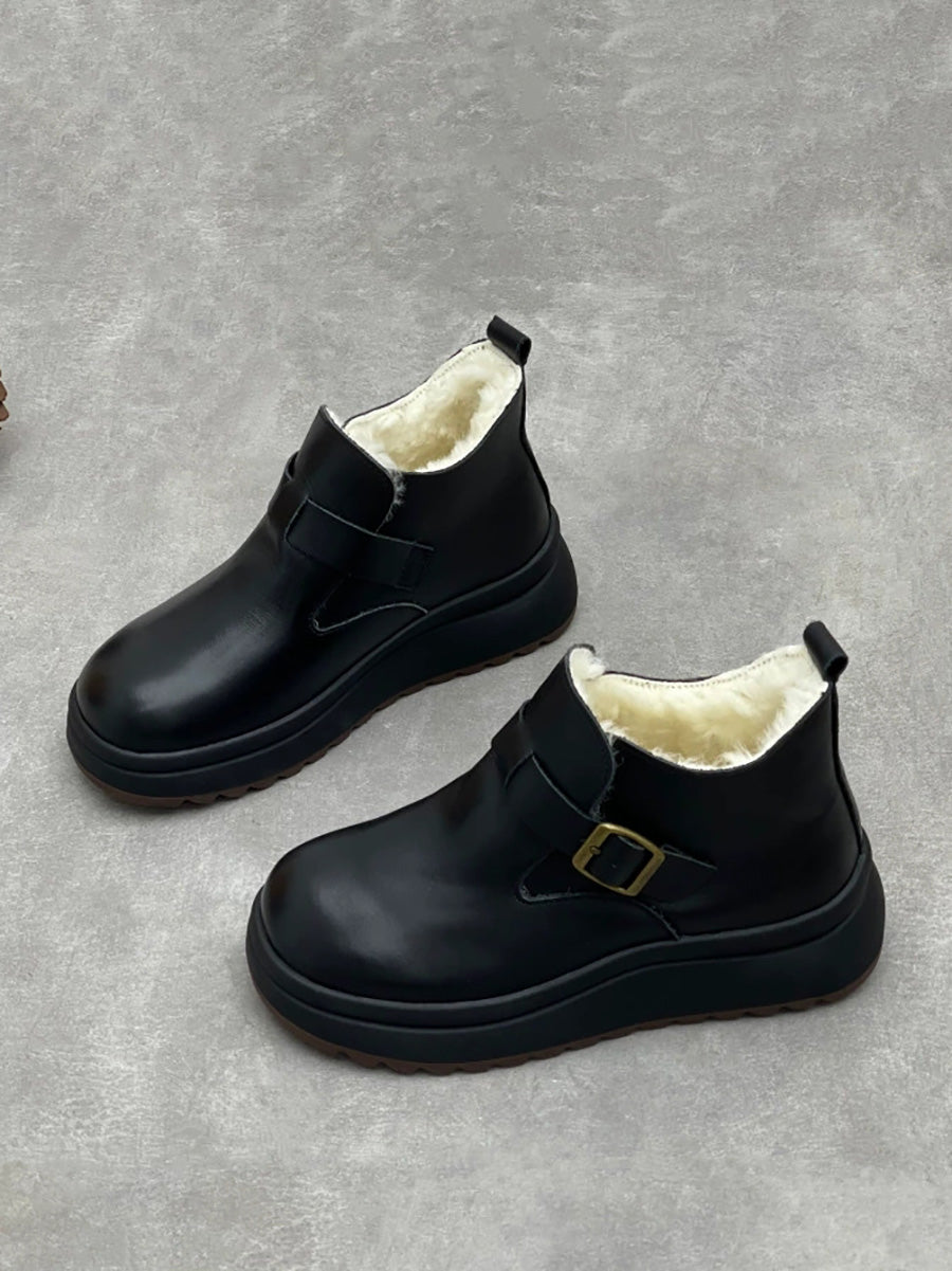 Zapatos de invierno para mujer, de piel auténtica con forro polar