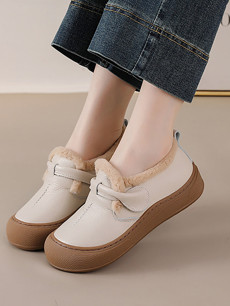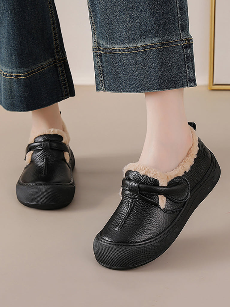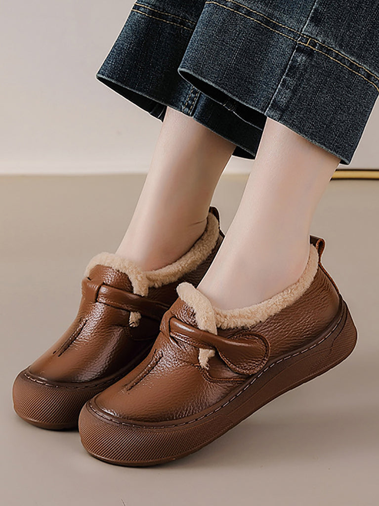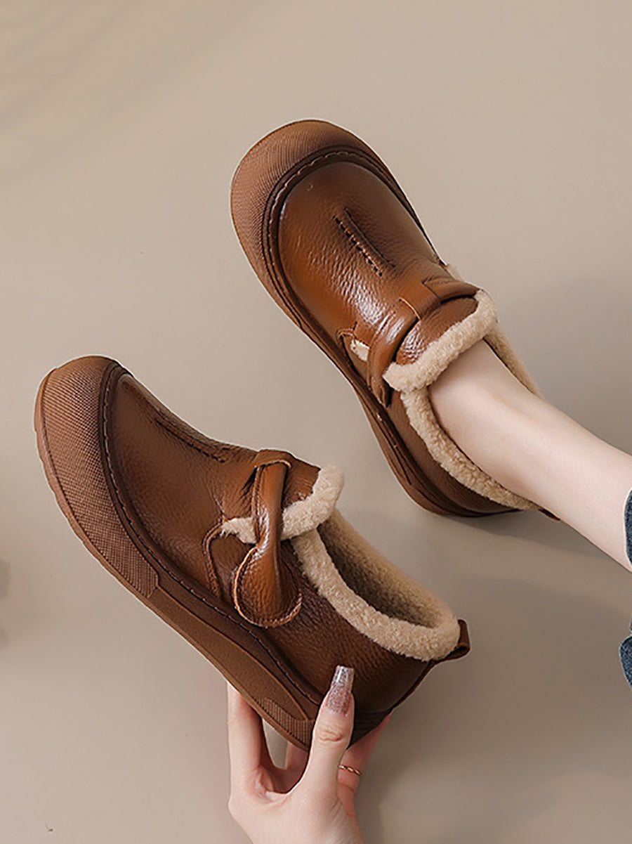 Zapatos de invierno para mujer de piel auténtica con forro polar