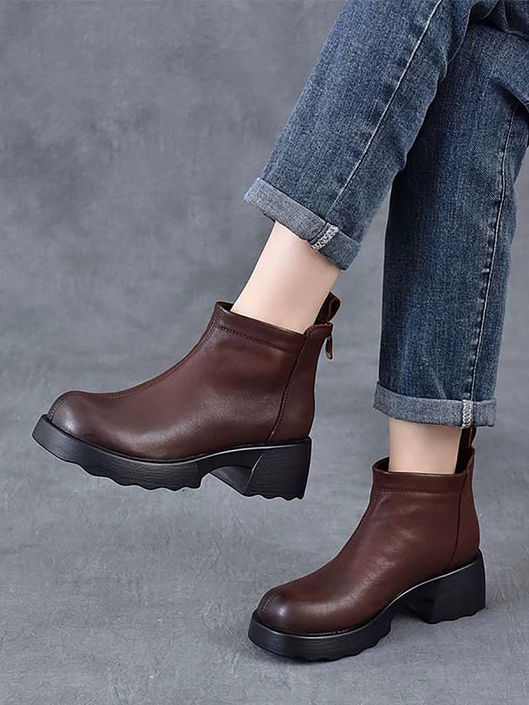 Botines de tacón medio de piel auténtica de invierno para mujer