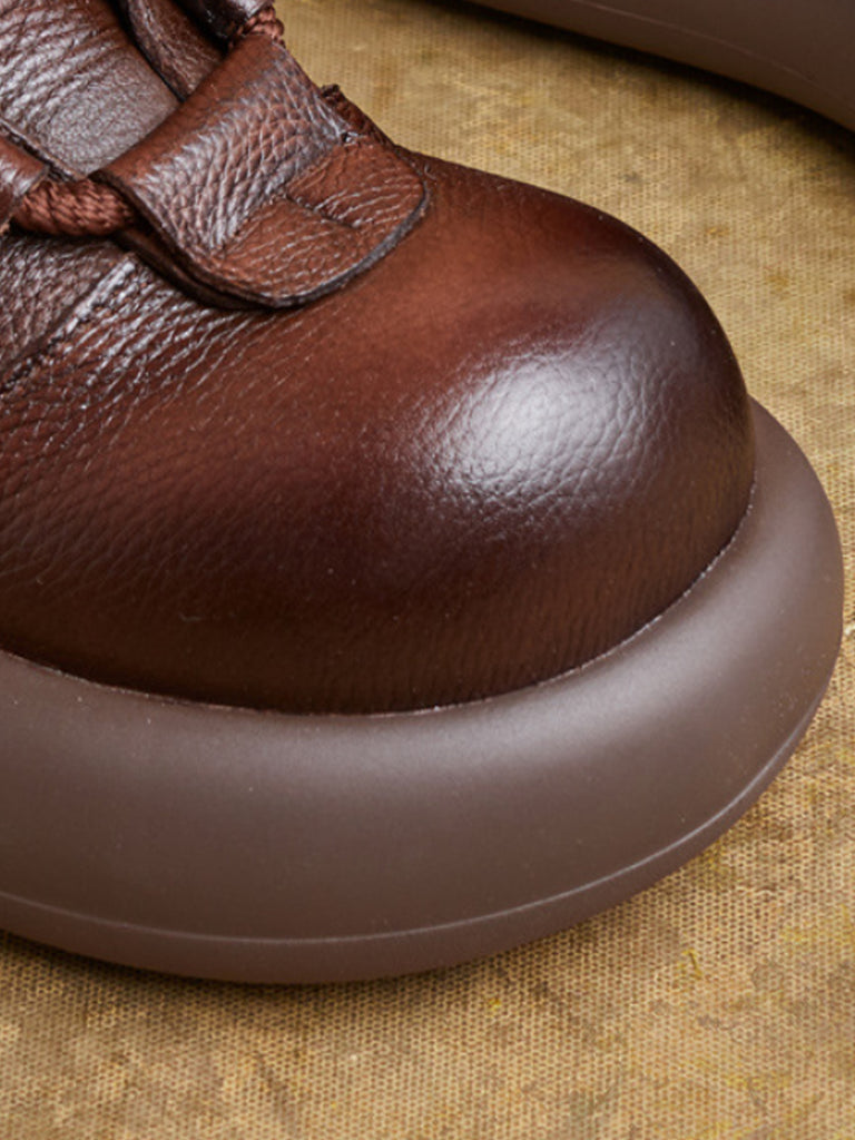 Botines de plataforma de piel auténtica para mujer, de invierno
