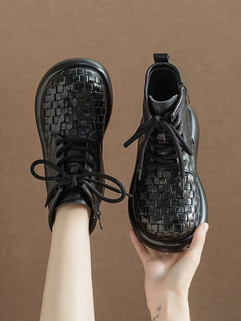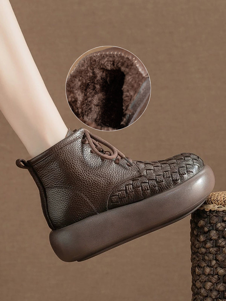 Botines de plataforma con empalme de cuero genuino de invierno para mujer