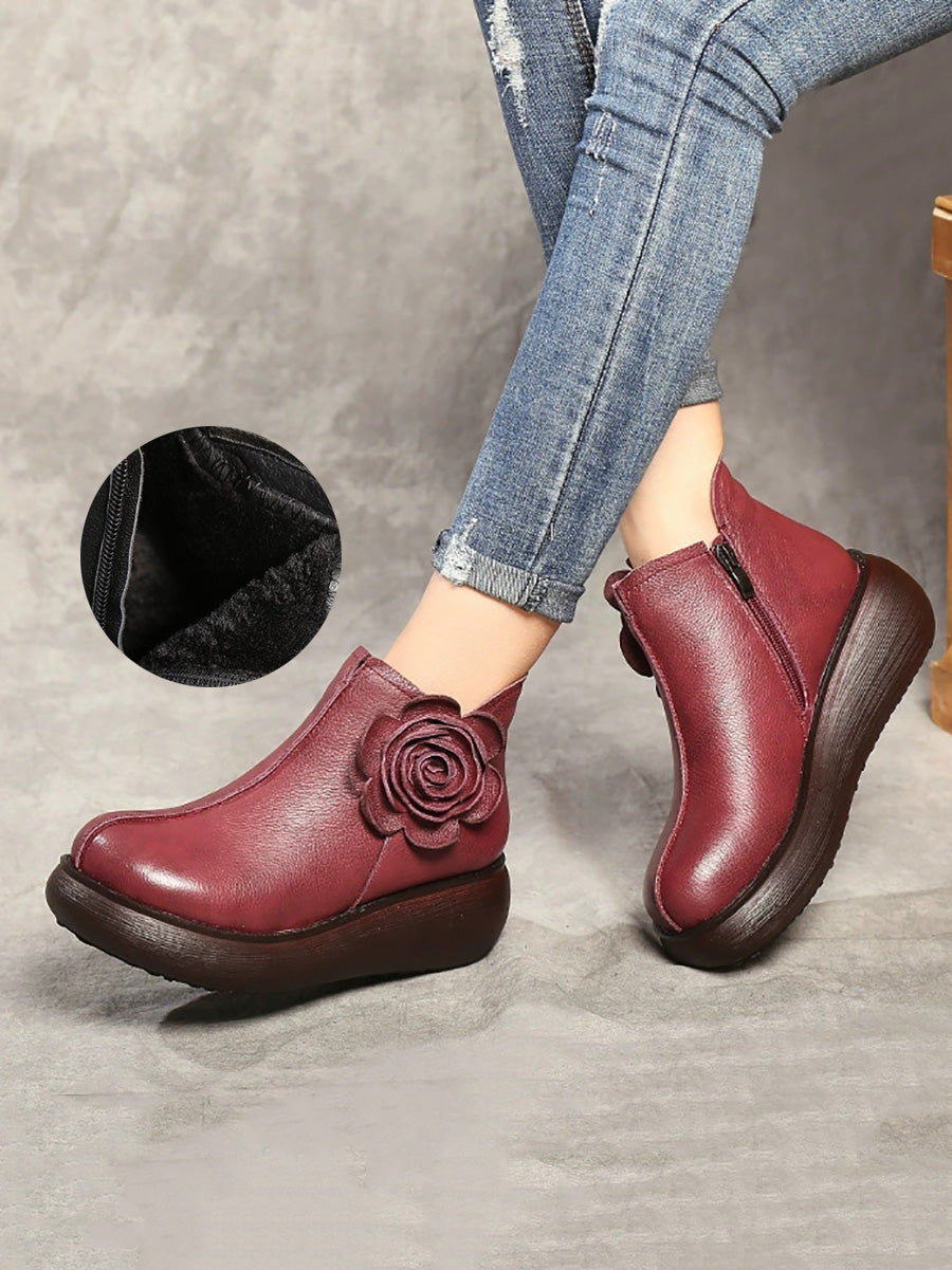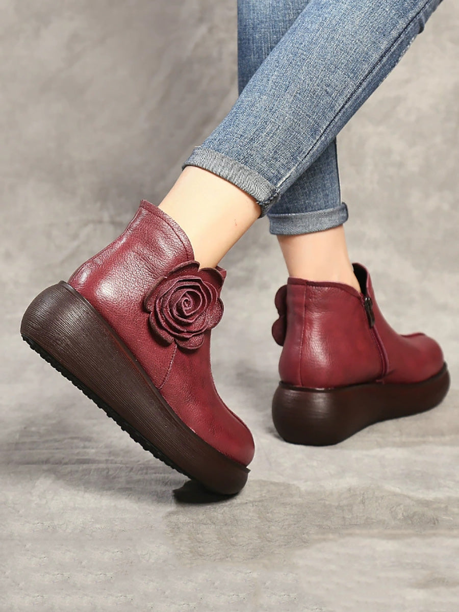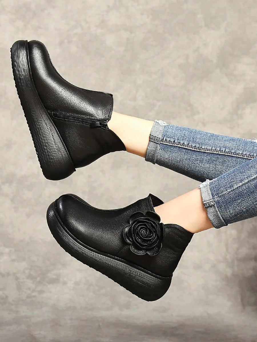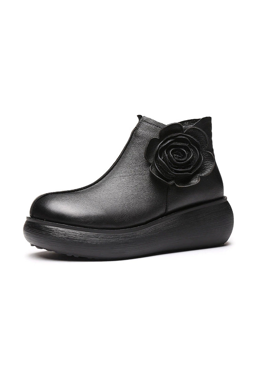 Botines de plataforma con flores de cuero para mujer de invierno