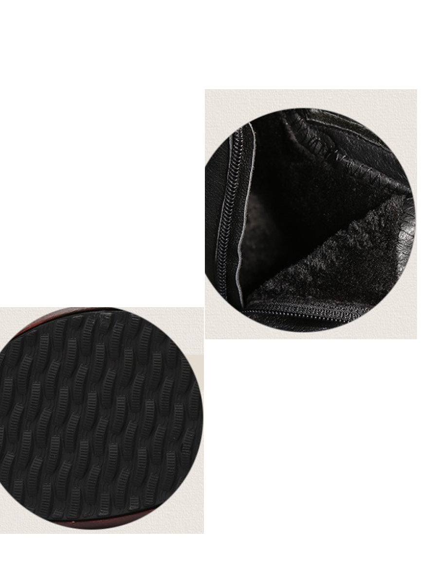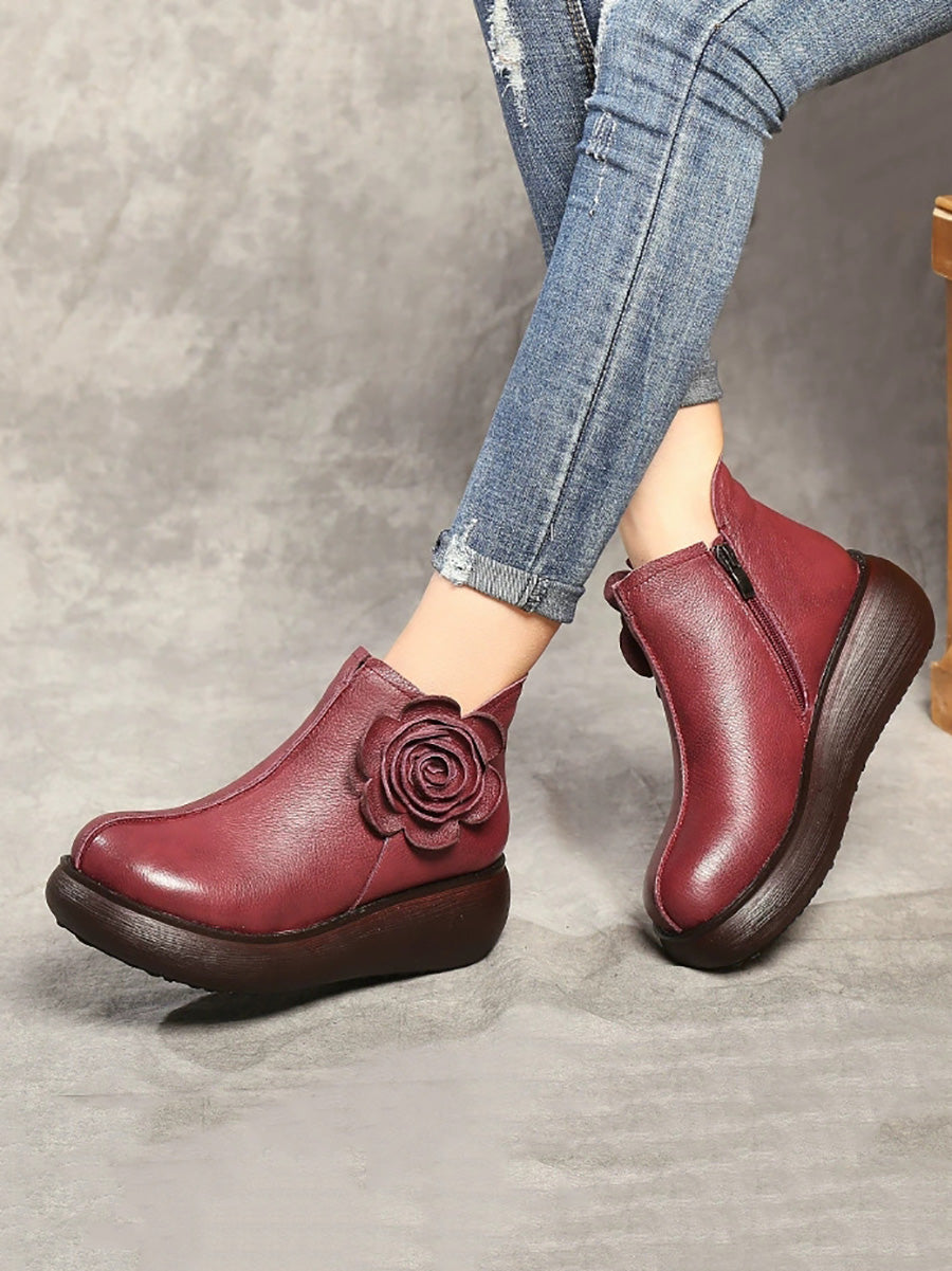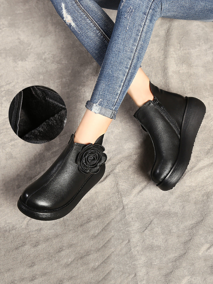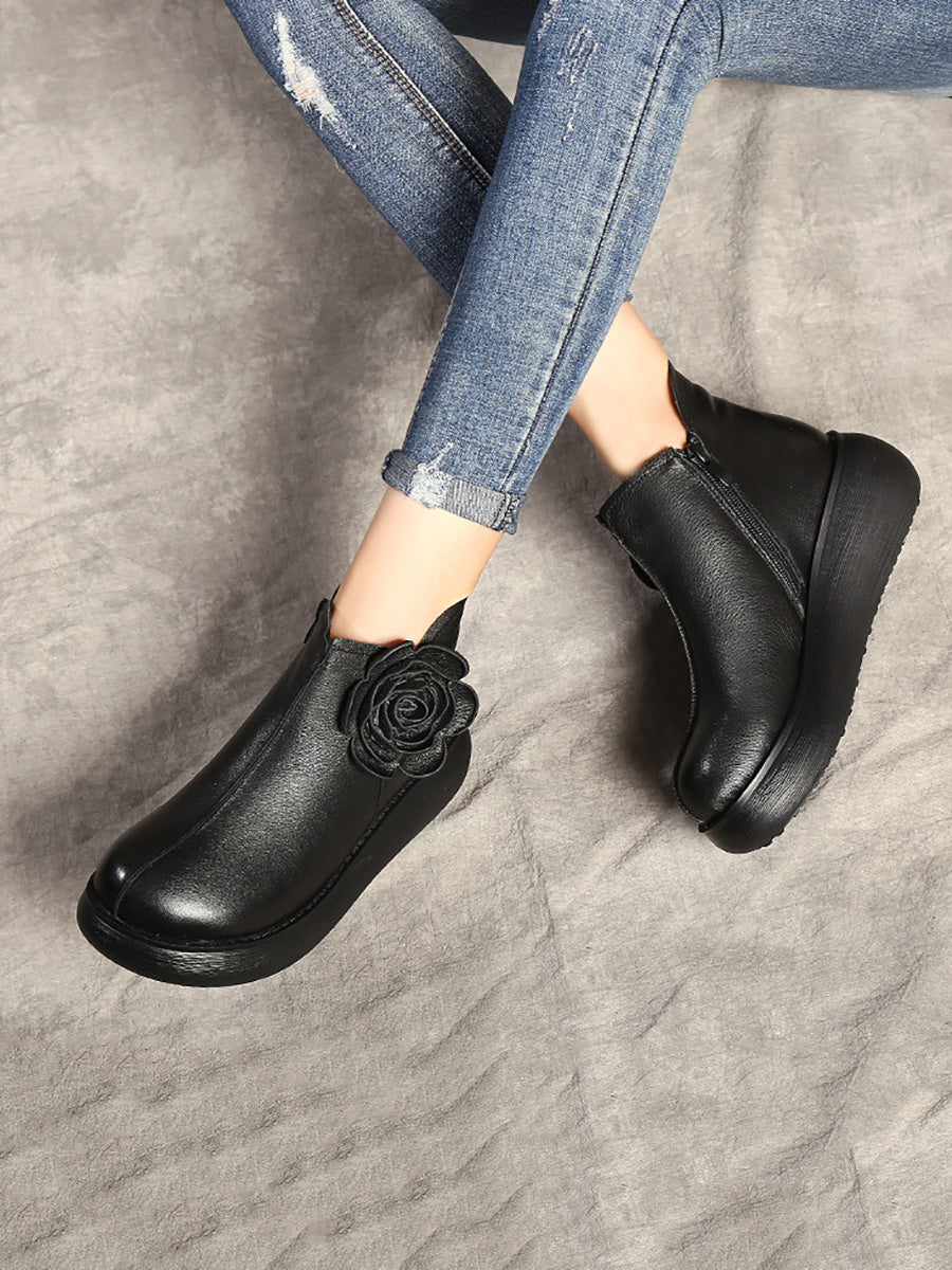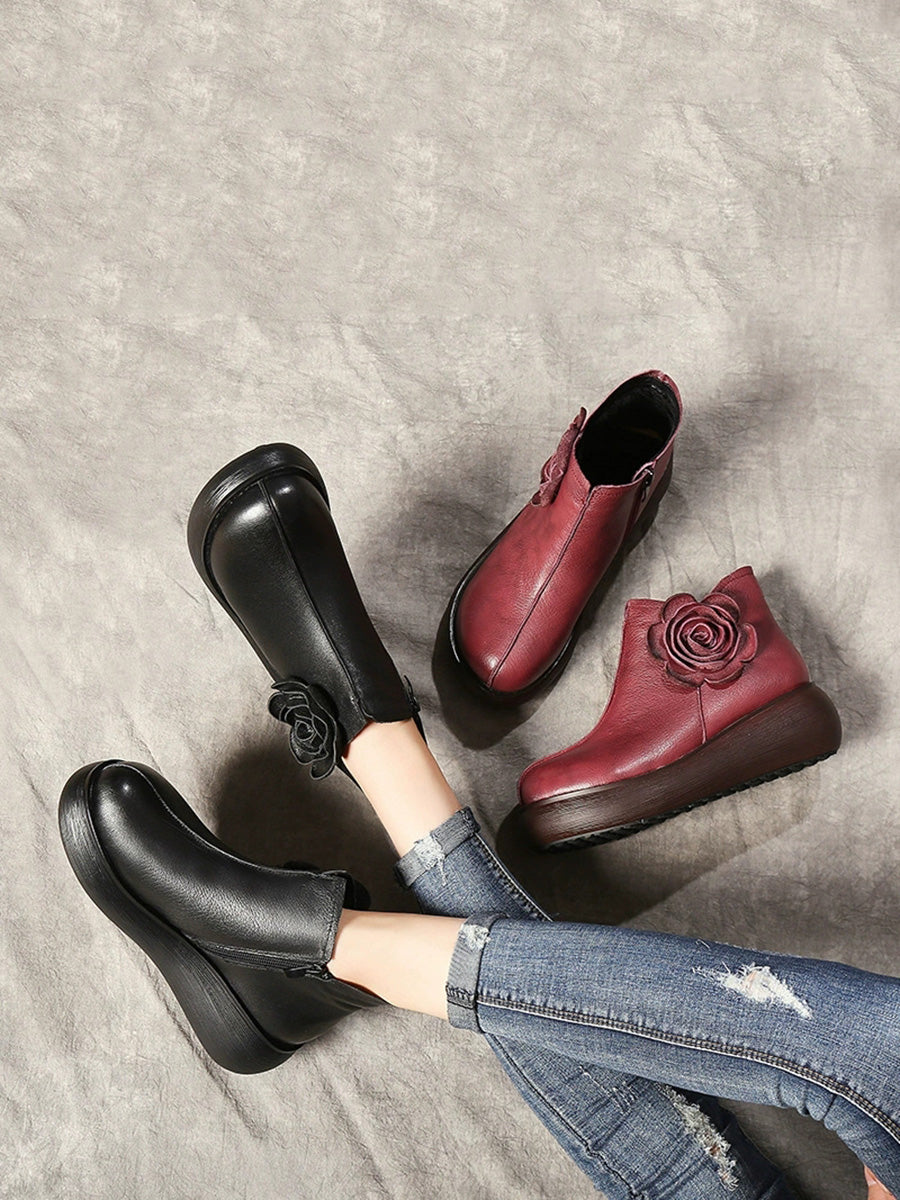 Botines de plataforma con flores de cuero para mujer de invierno