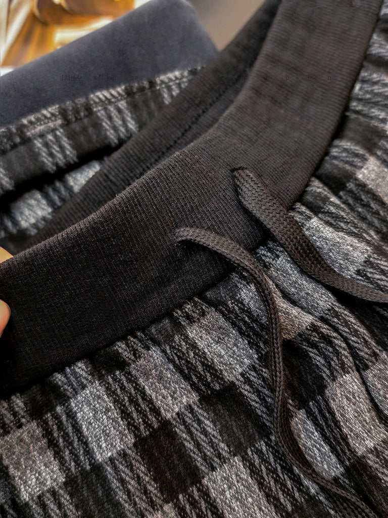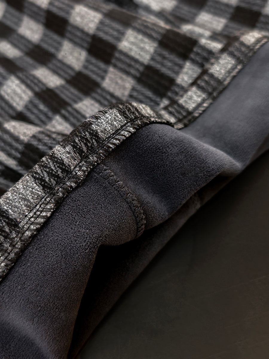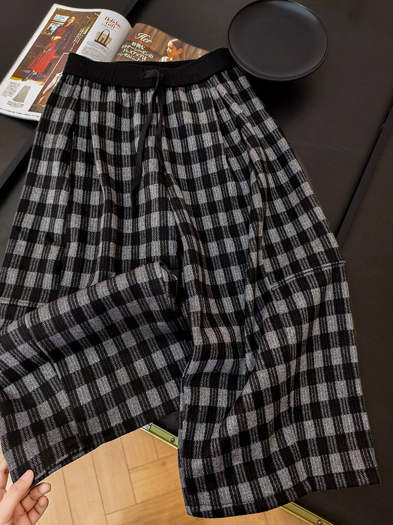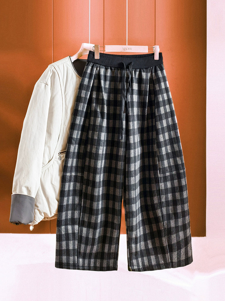 Pantalones anchos de invierno con forro polar a cuadros para mujer