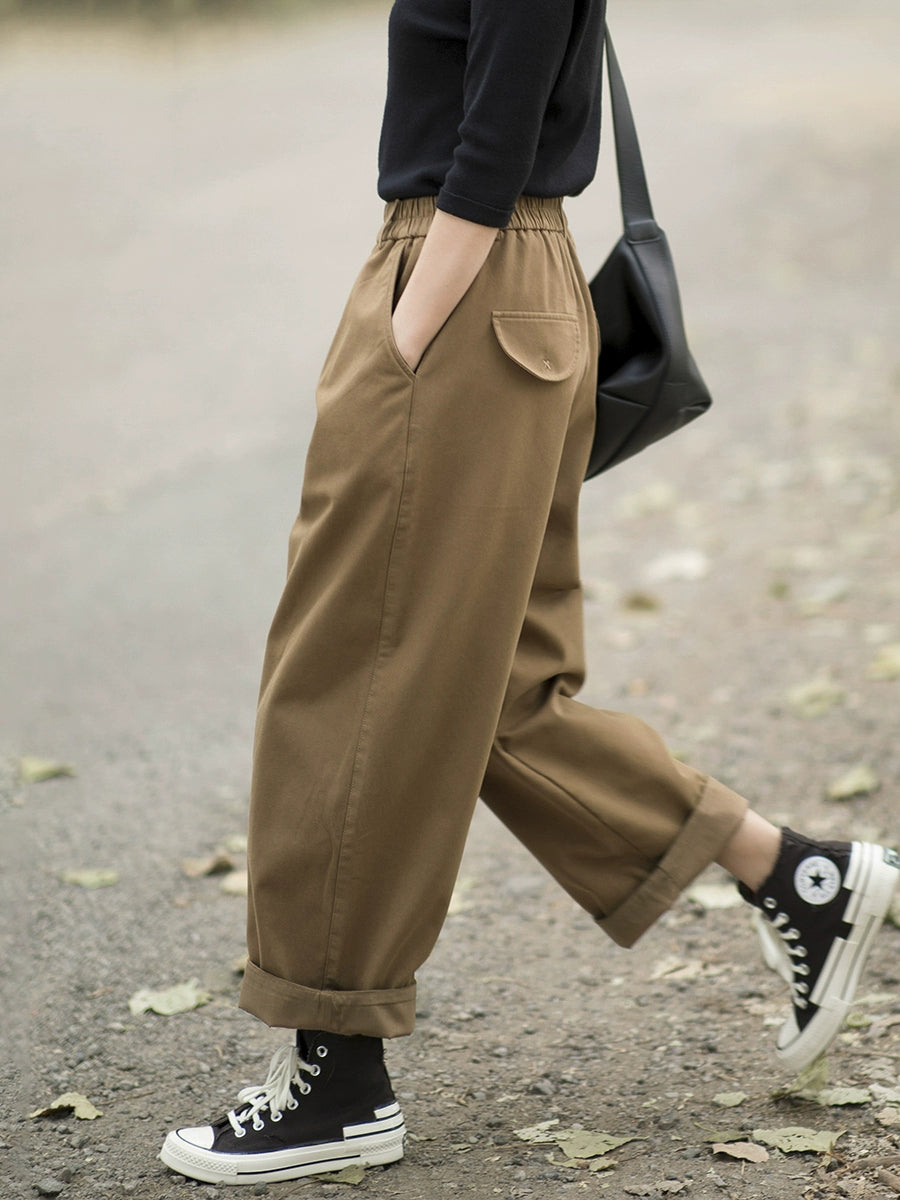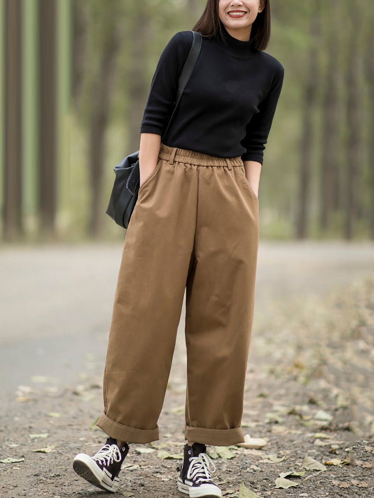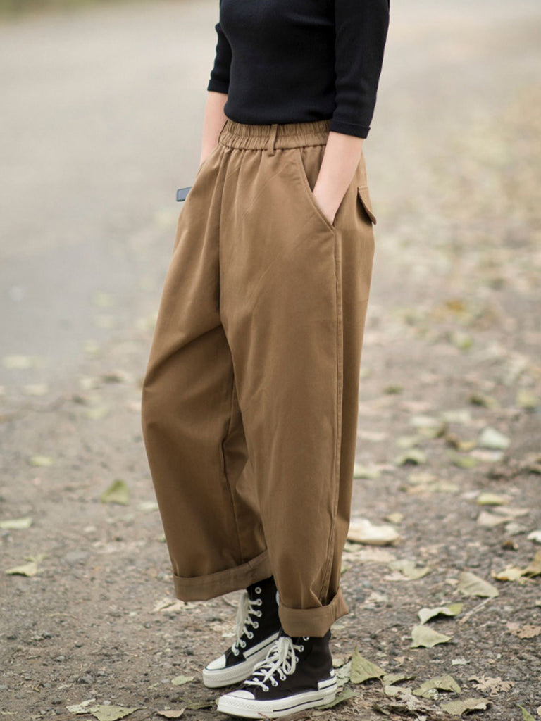 Pantalones tipo harem de invierno para mujer, de color liso, 100% algodón con forro polar.