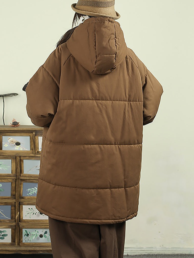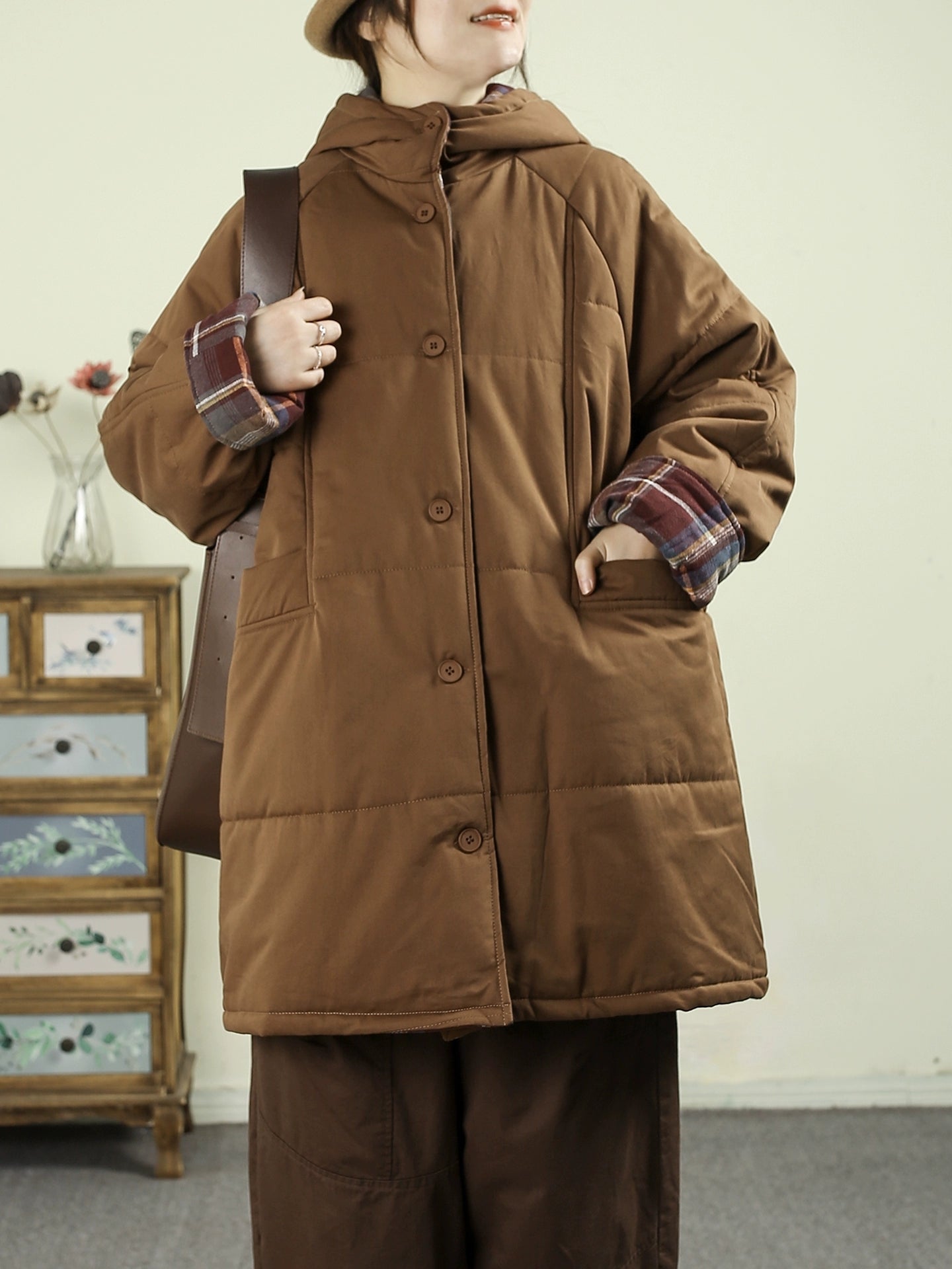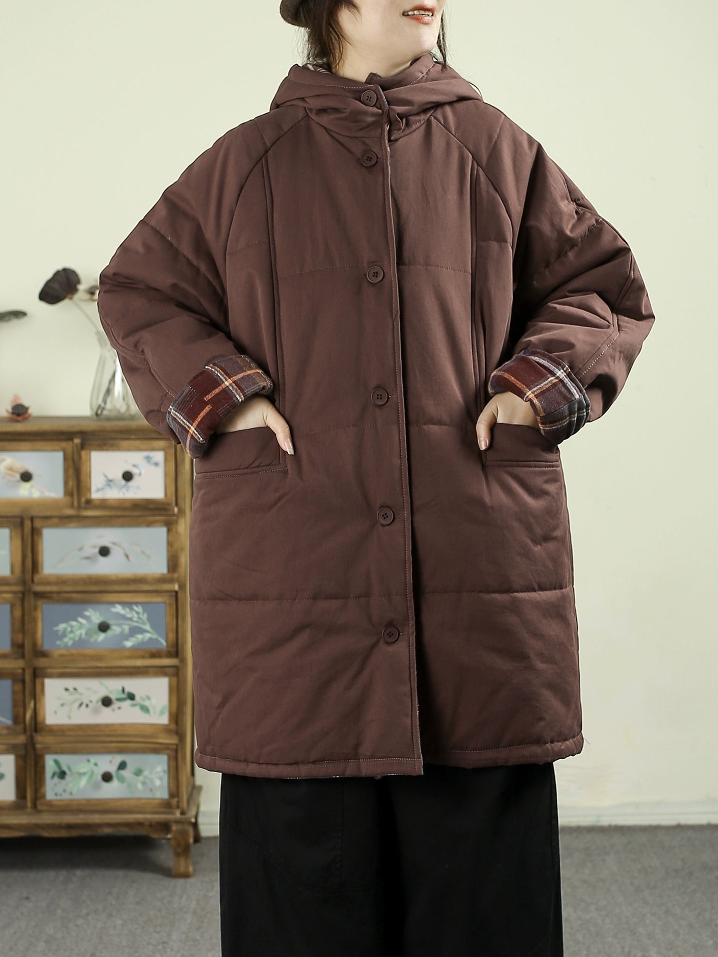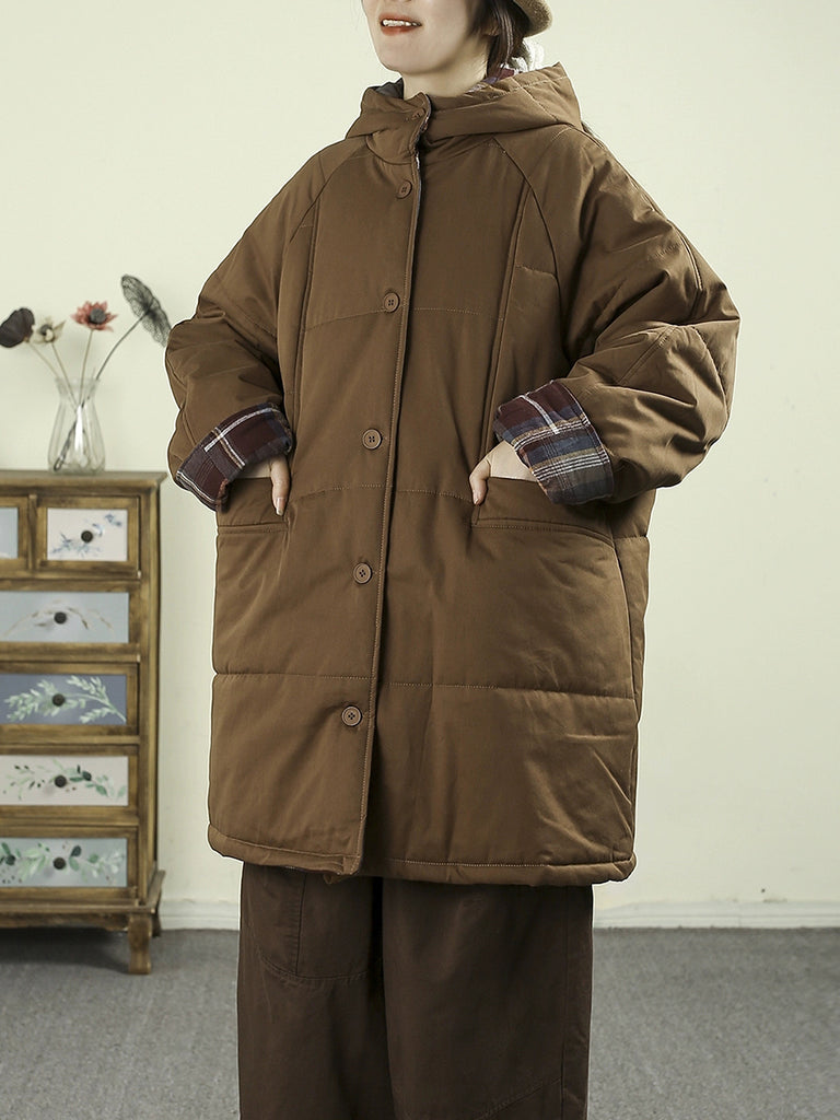 Abrigo acolchado con capucha para mujer, color liso, 100% algodón, ideal para el invierno.