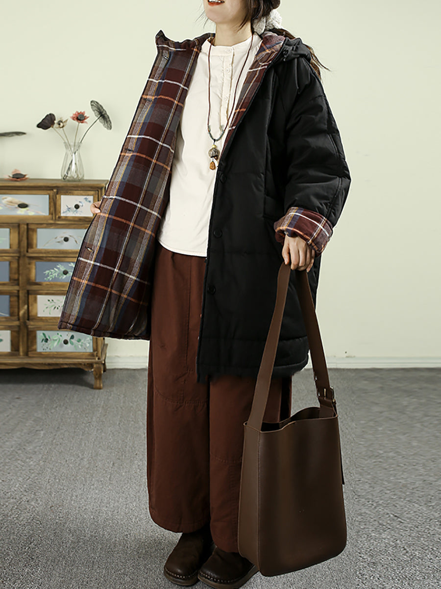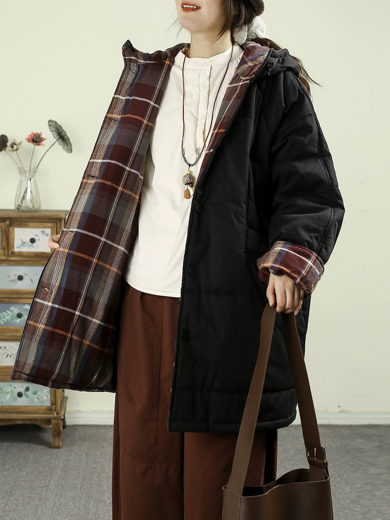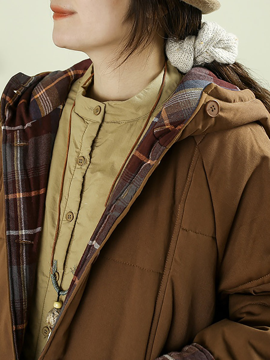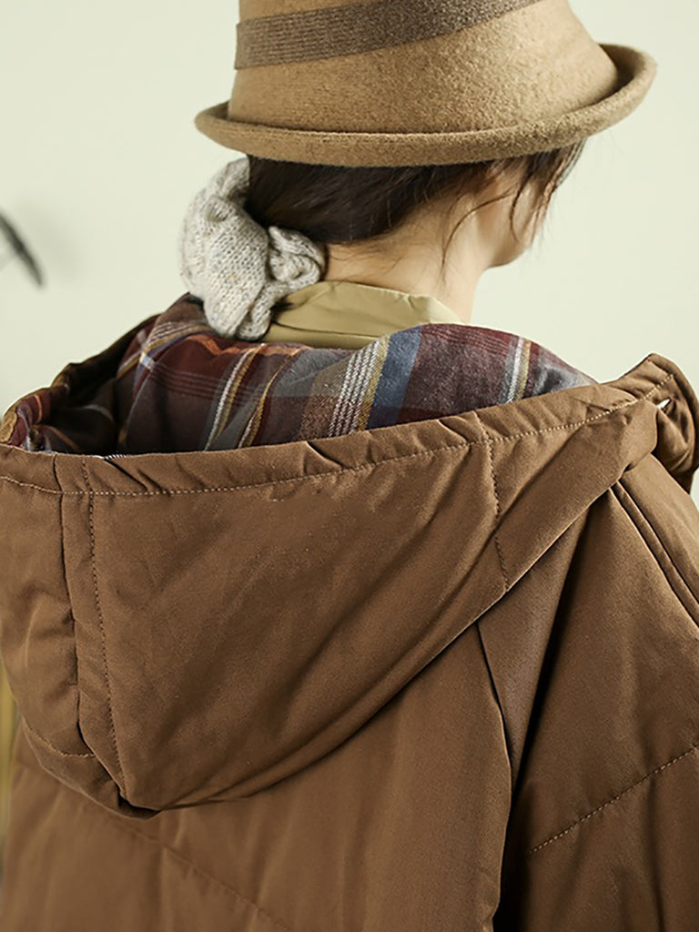 Abrigo acolchado con capucha para mujer, color liso, 100% algodón, ideal para el invierno.