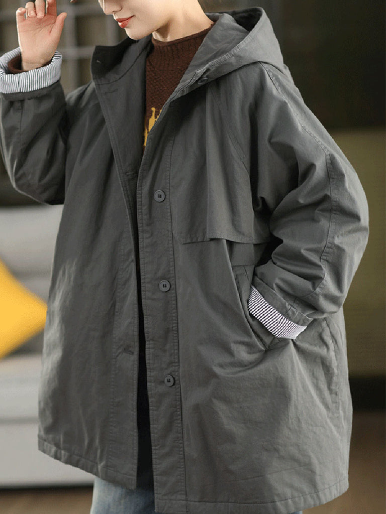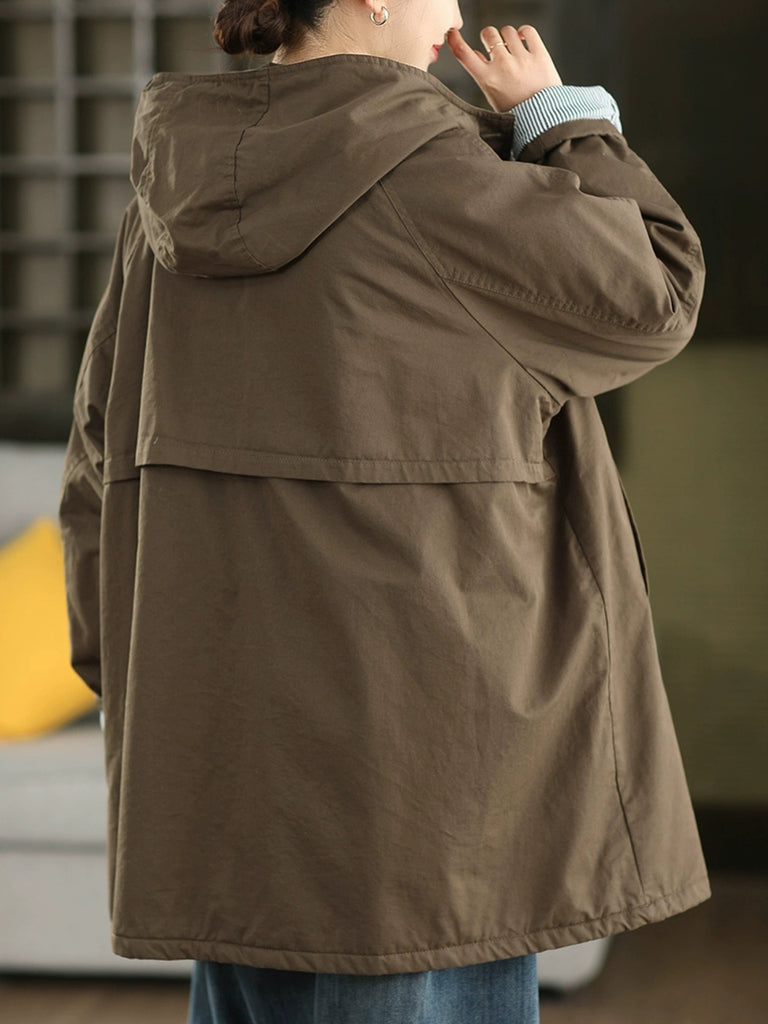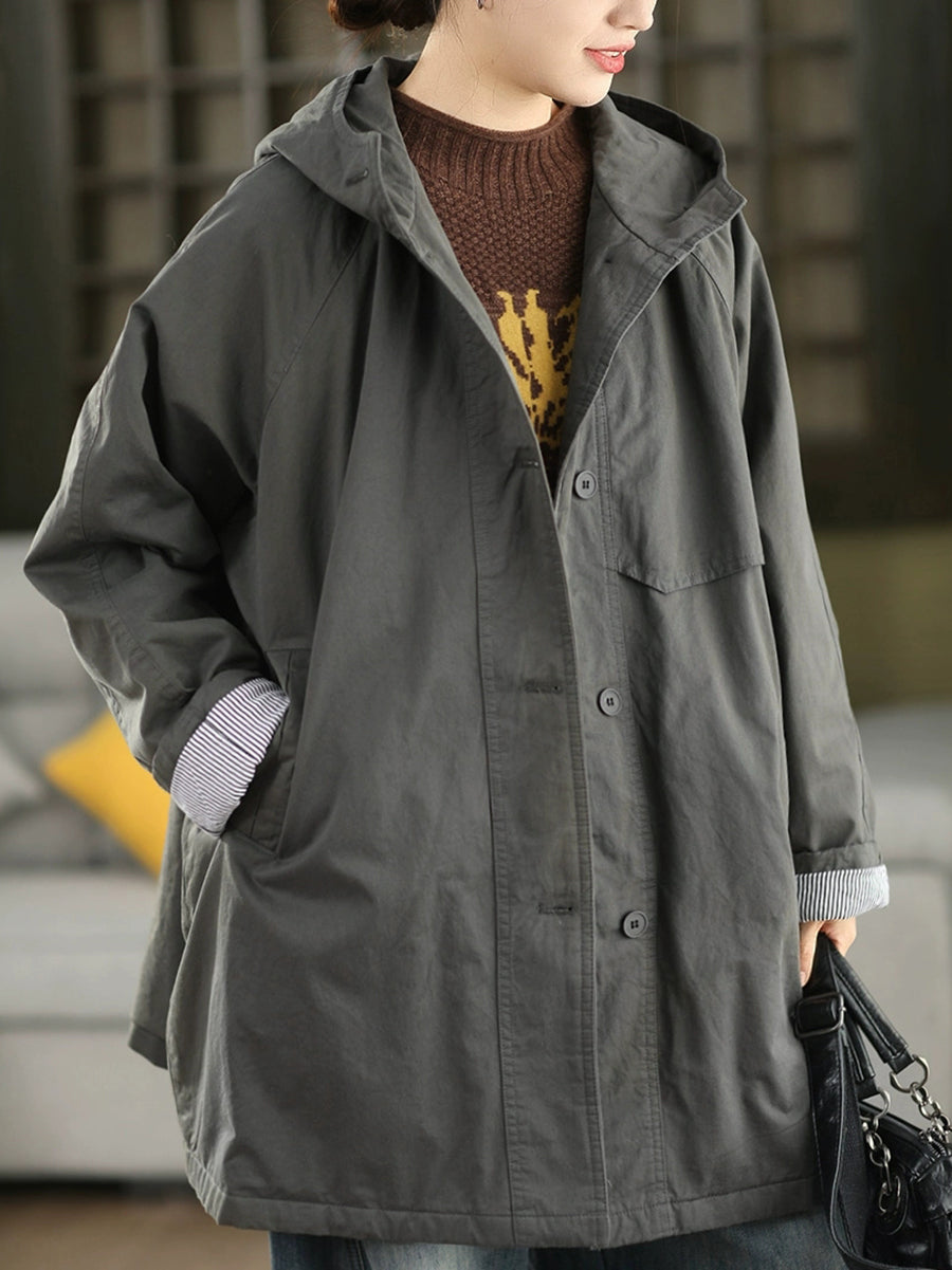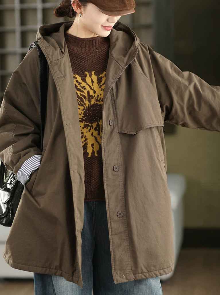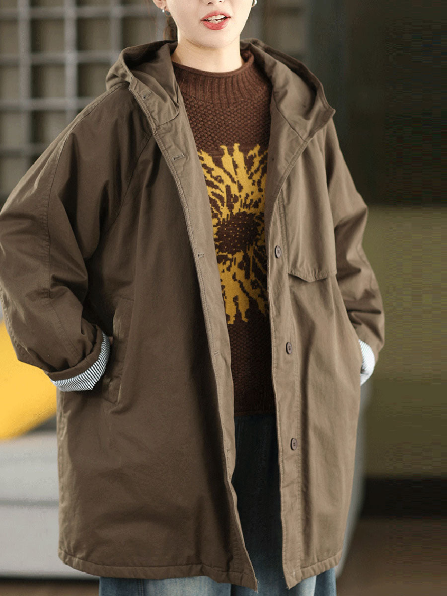 Abrigo acolchado con capucha para mujer, color liso, 100% algodón, ideal para el invierno.