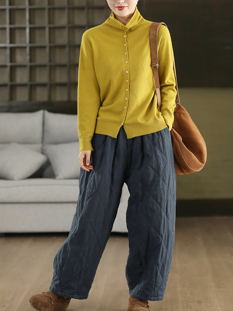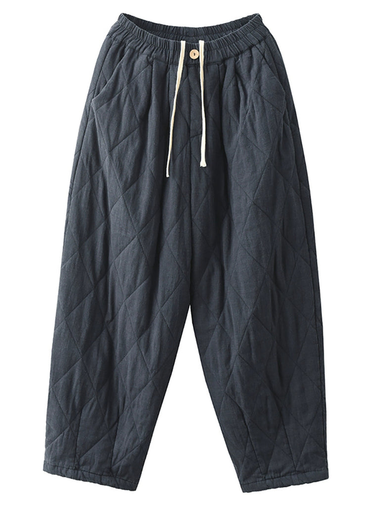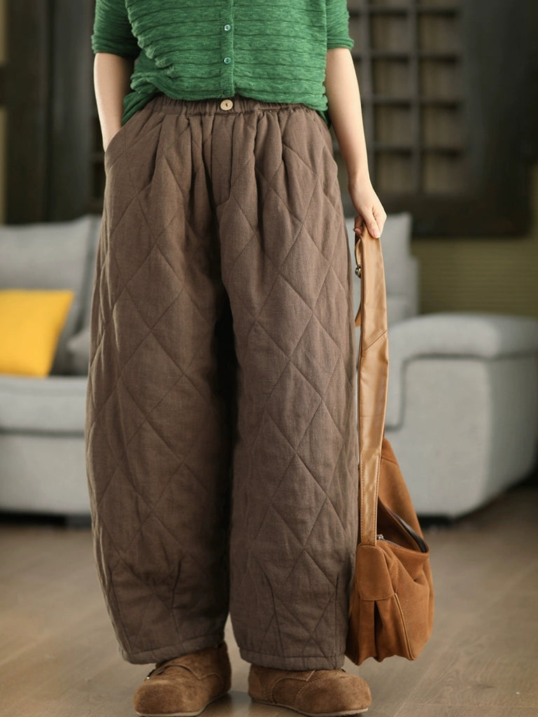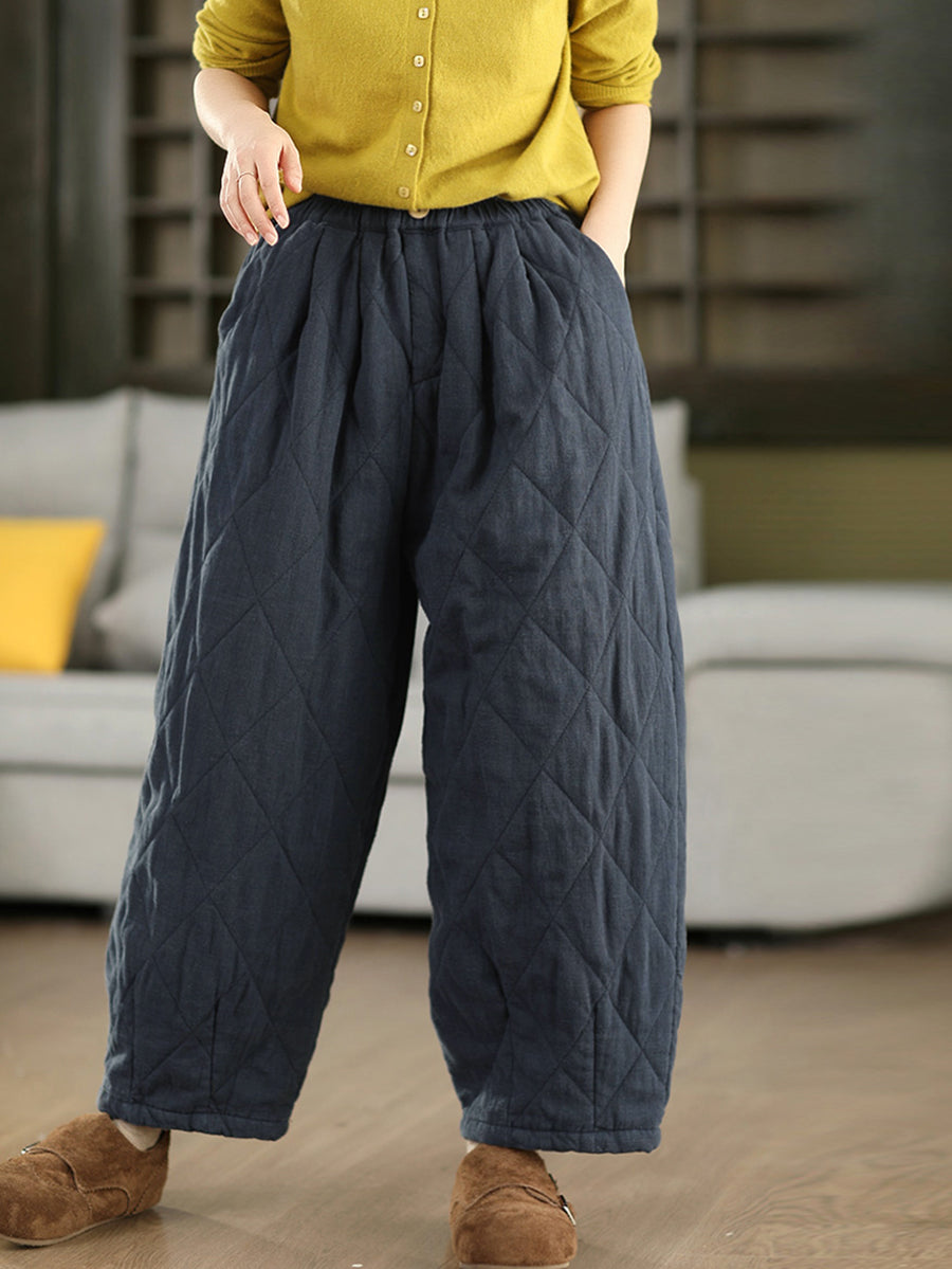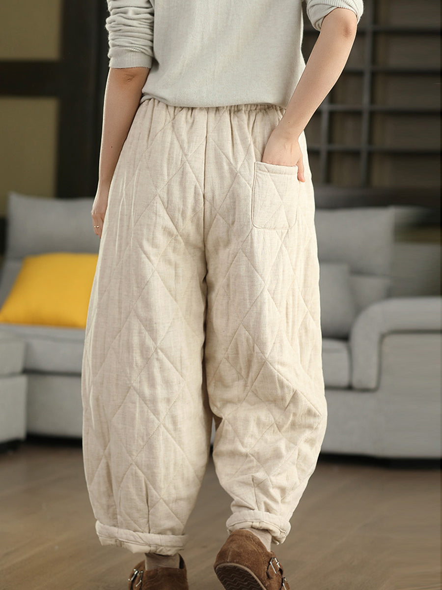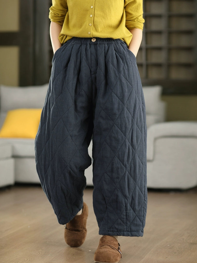 Pantalones bombachos acolchados de cáñamo 100% para mujer, color liso, ideales para el invierno.