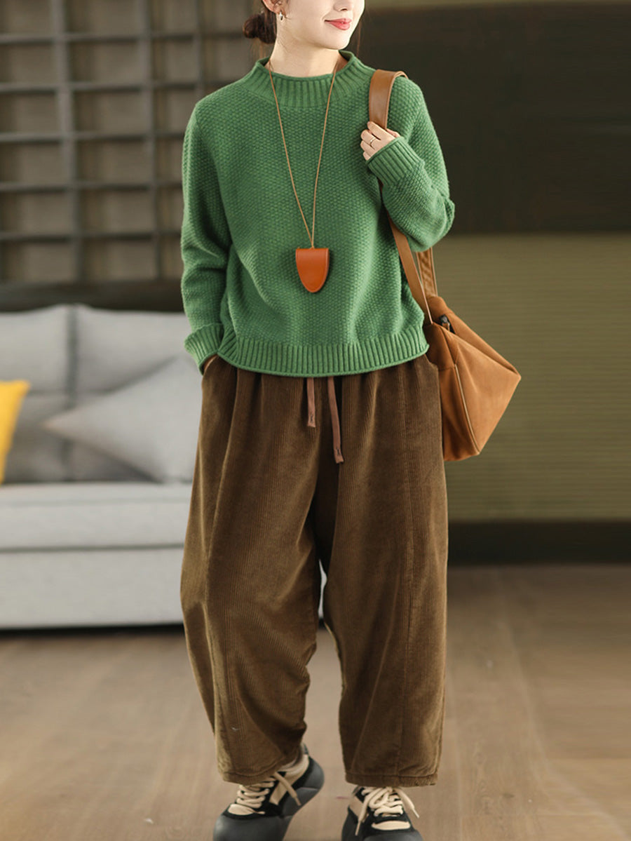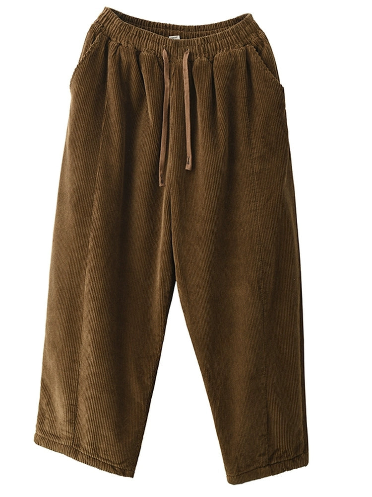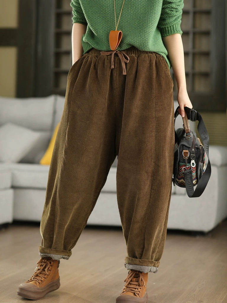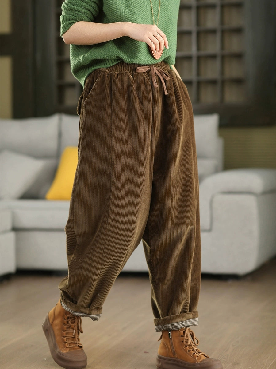 Pantalones bombachos acolchados de pana de color liso para mujer