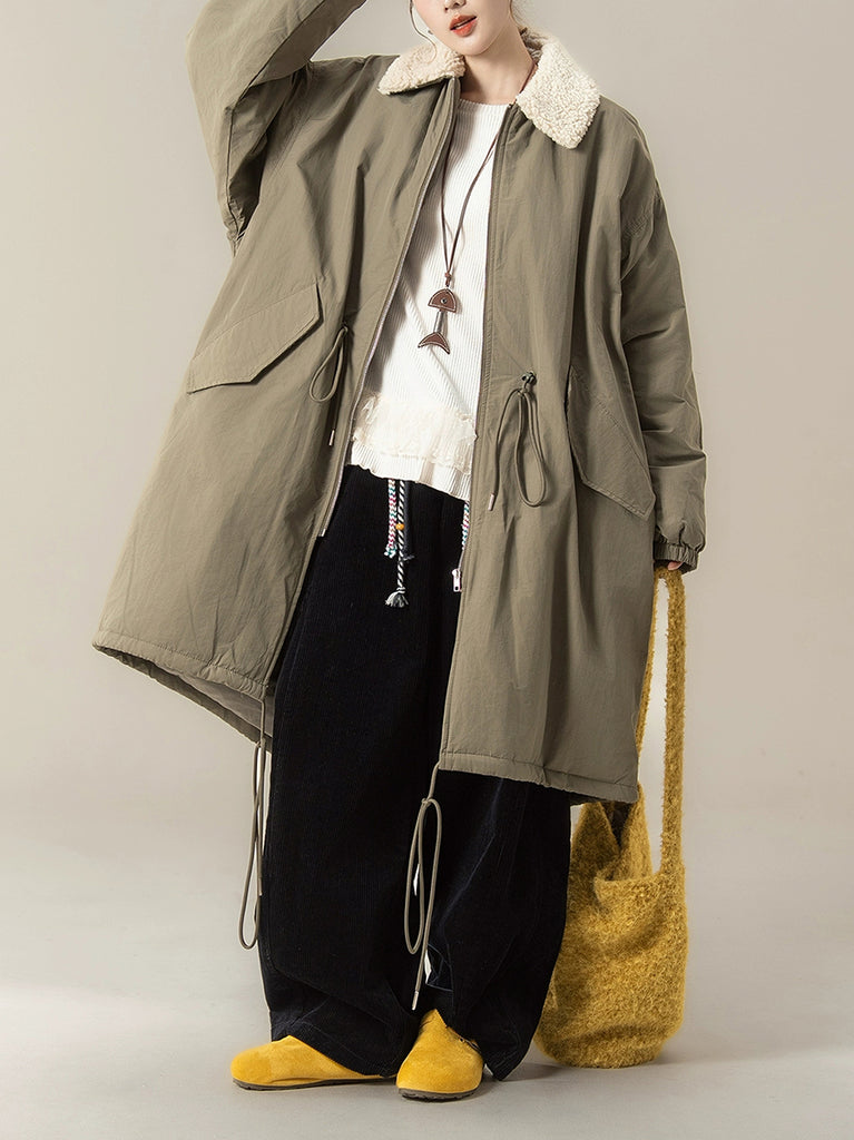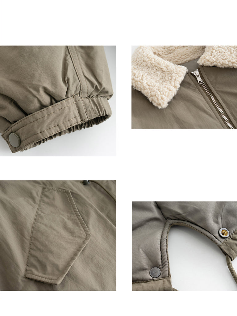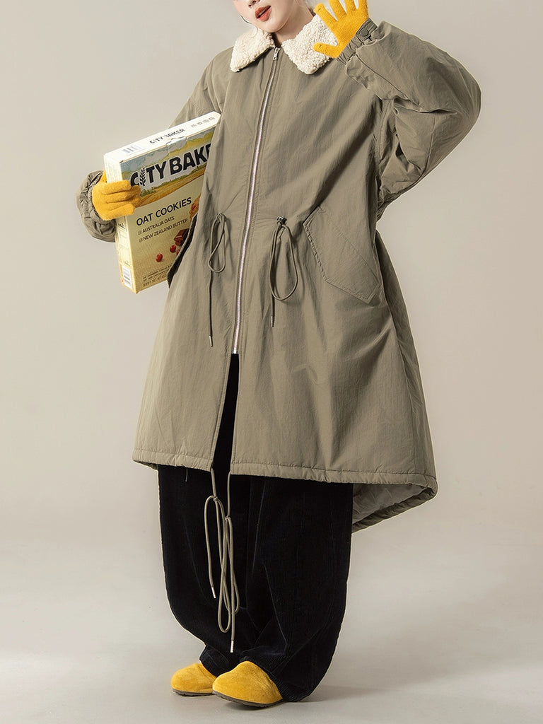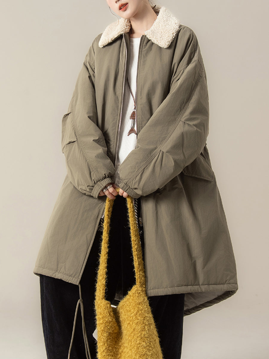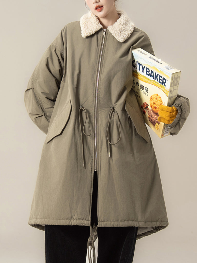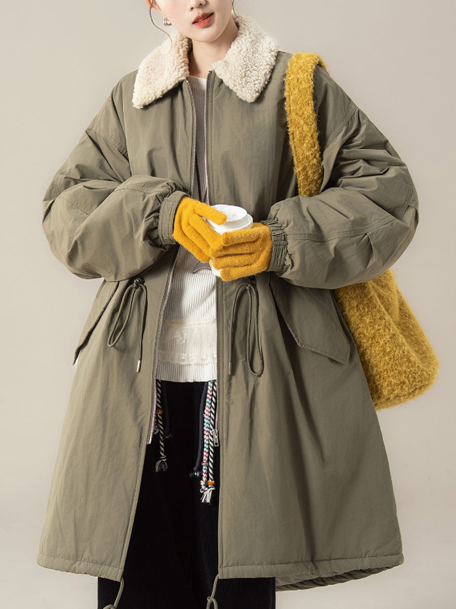 Abrigo acolchado de cuello polar de color puro de invierno para mujer