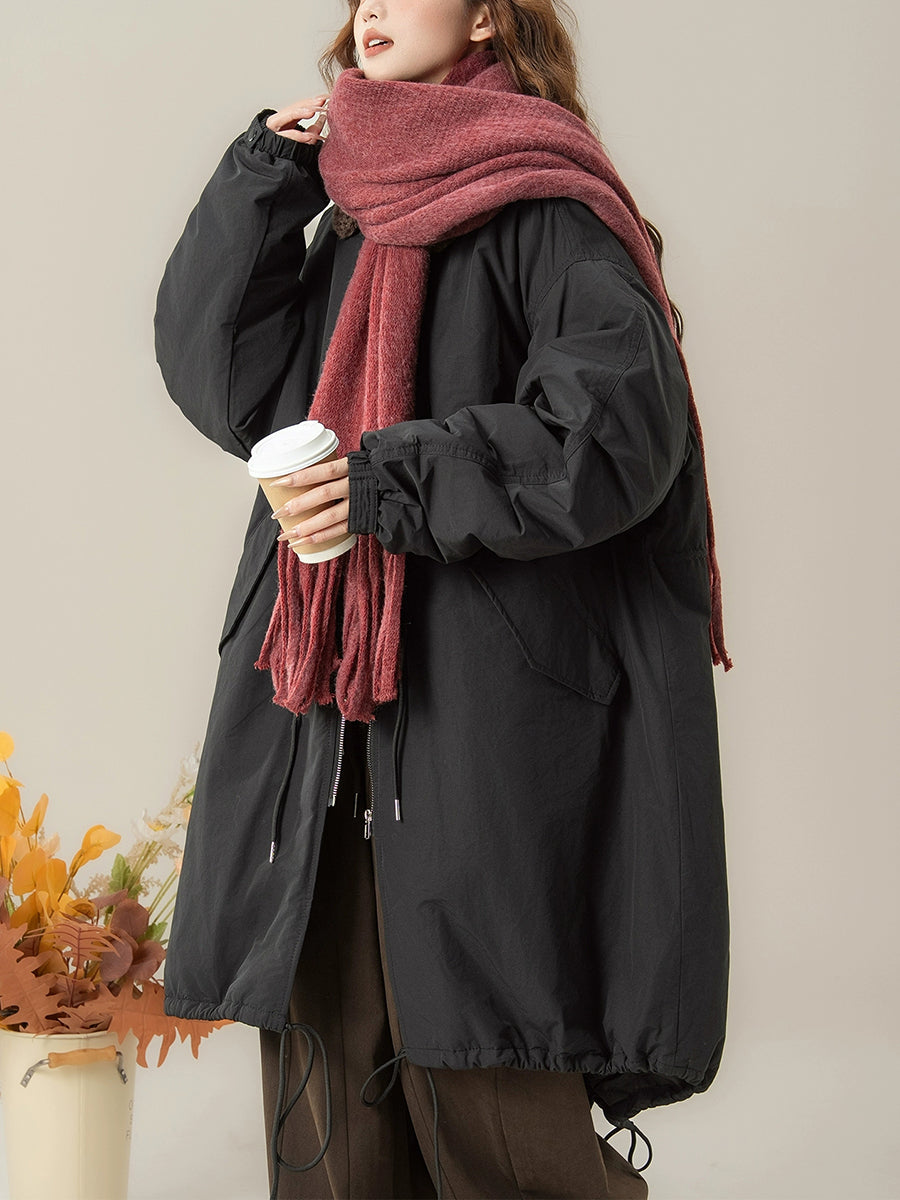 Diseñado para invierno y otoño, este abrigo presenta un diseño de color liso con un clásico cuello vuelto. Ofrece mangas raglán largas con un estilo retro que combina elegancia atemporal con una calidez práctica.