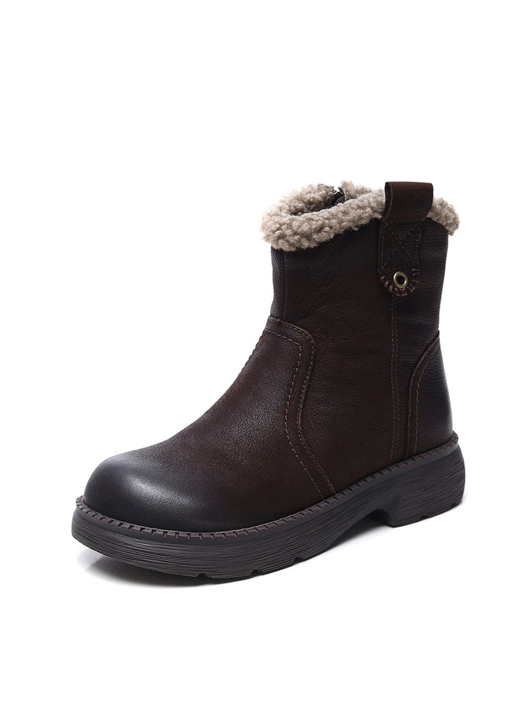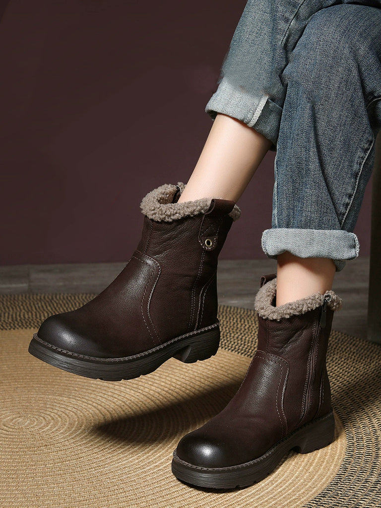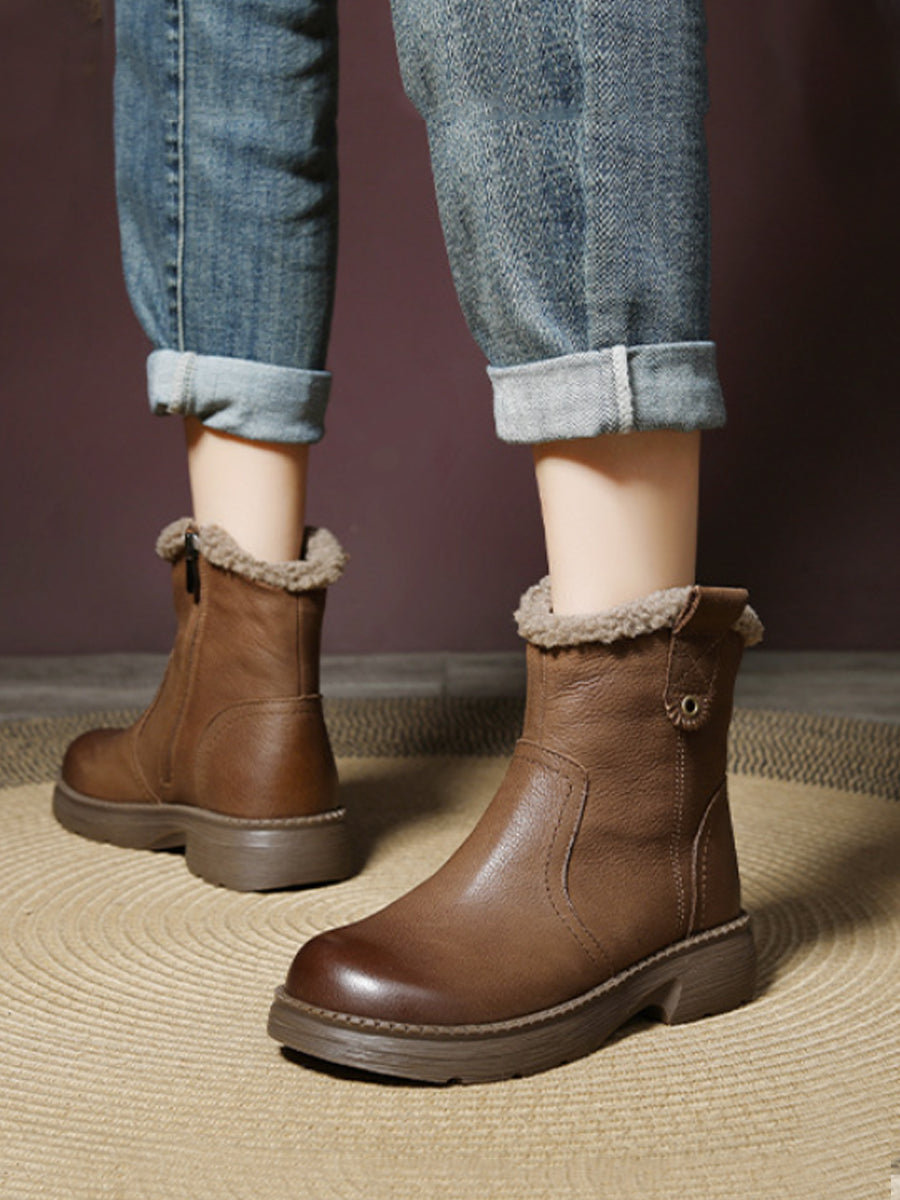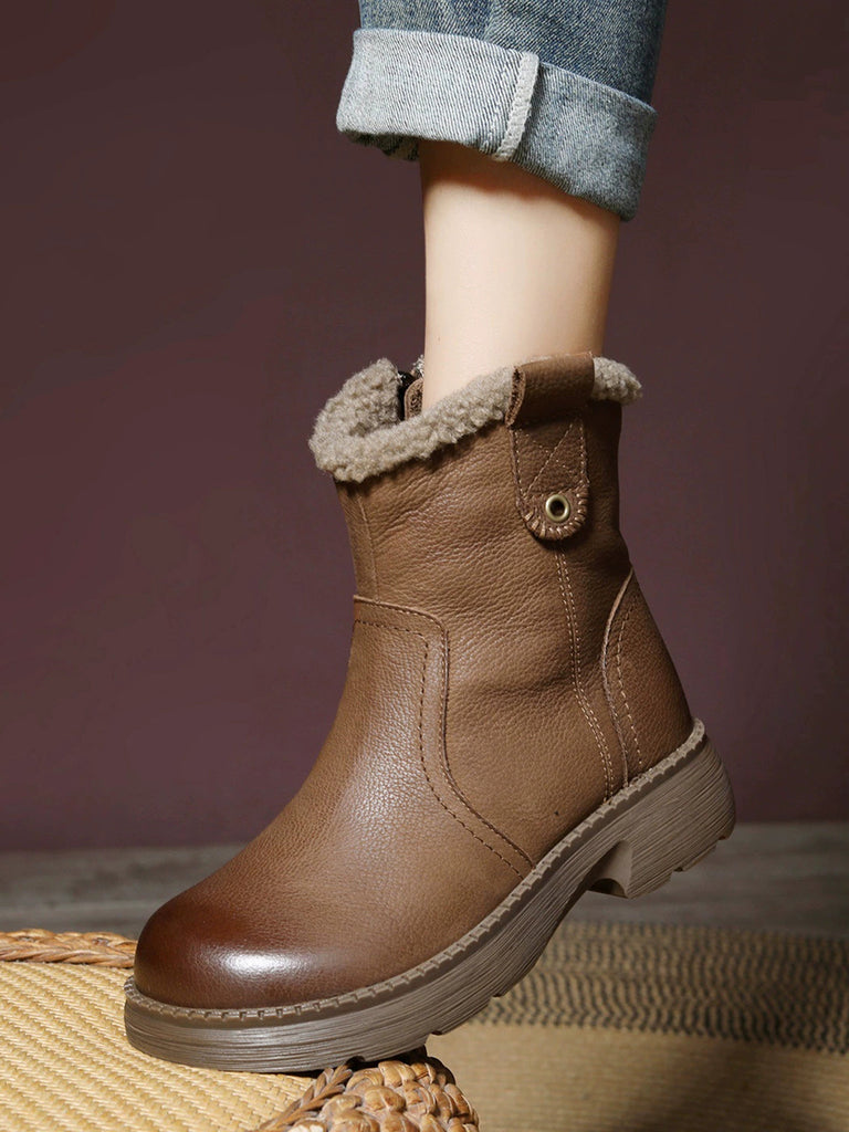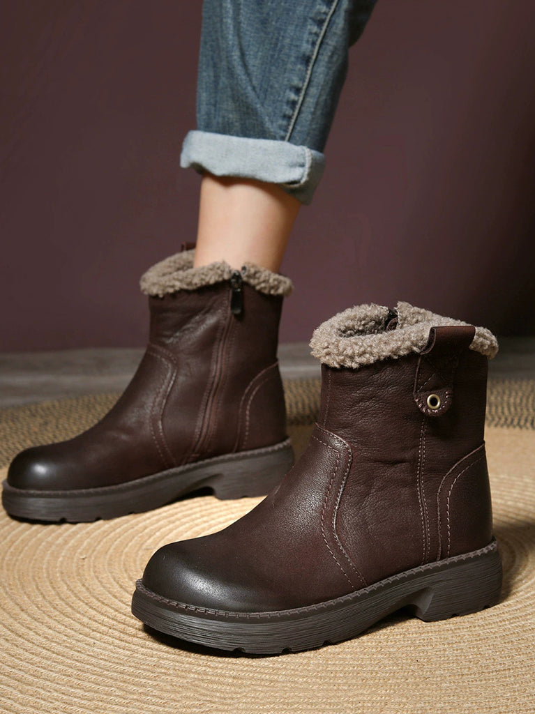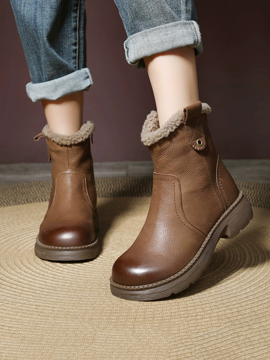 Botas de invierno para mujer, de piel auténtica de color liso con forro polar