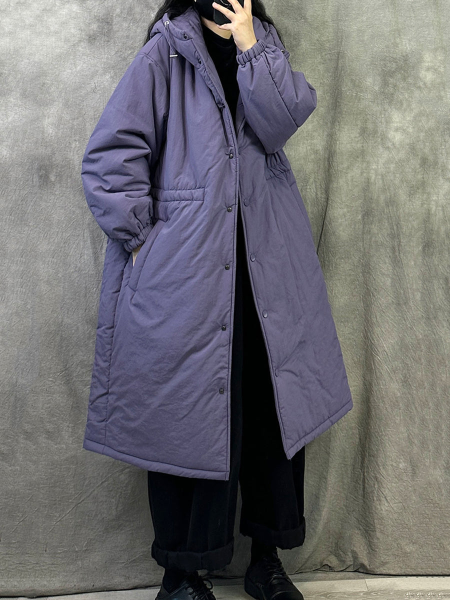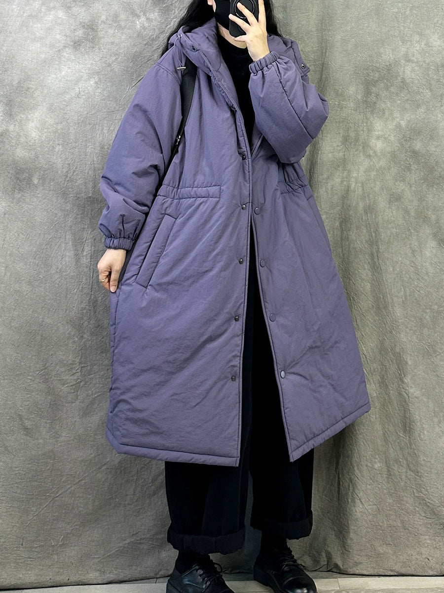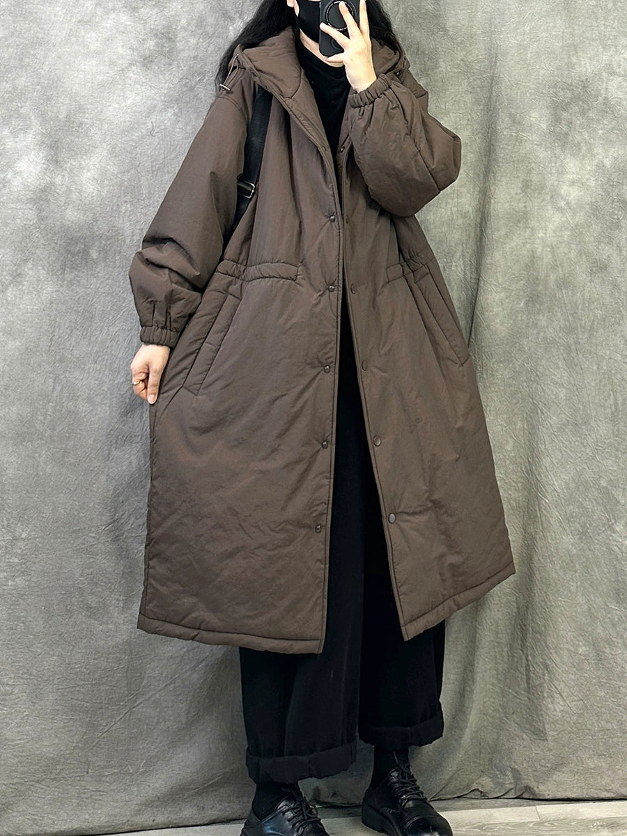 Abrigo acolchado con capucha de color puro de invierno para mujer