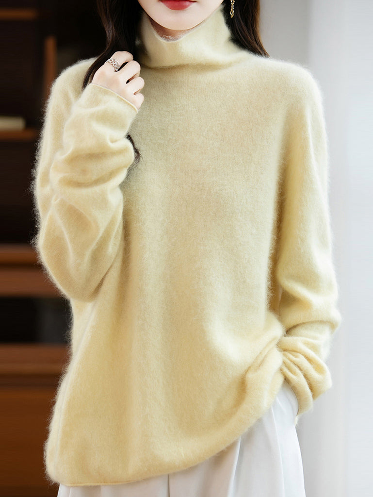 Suéter de lana con cuello redondo de color puro para mujer de invierno