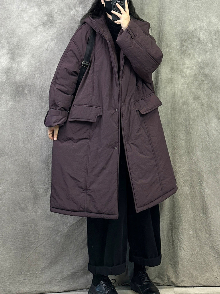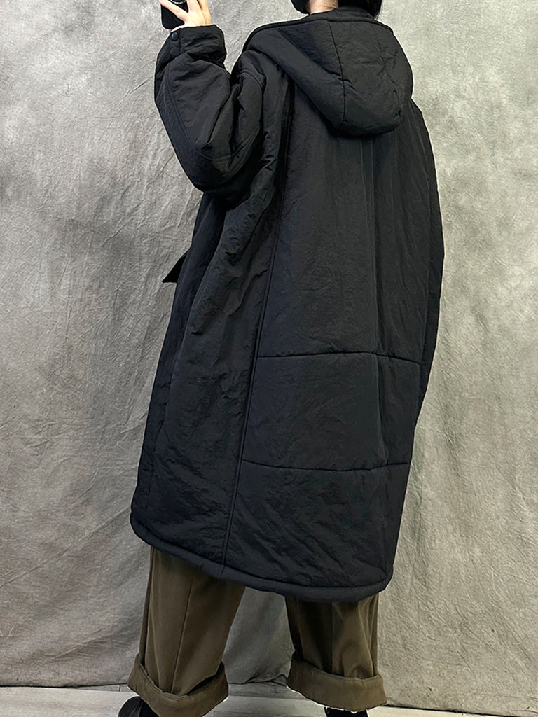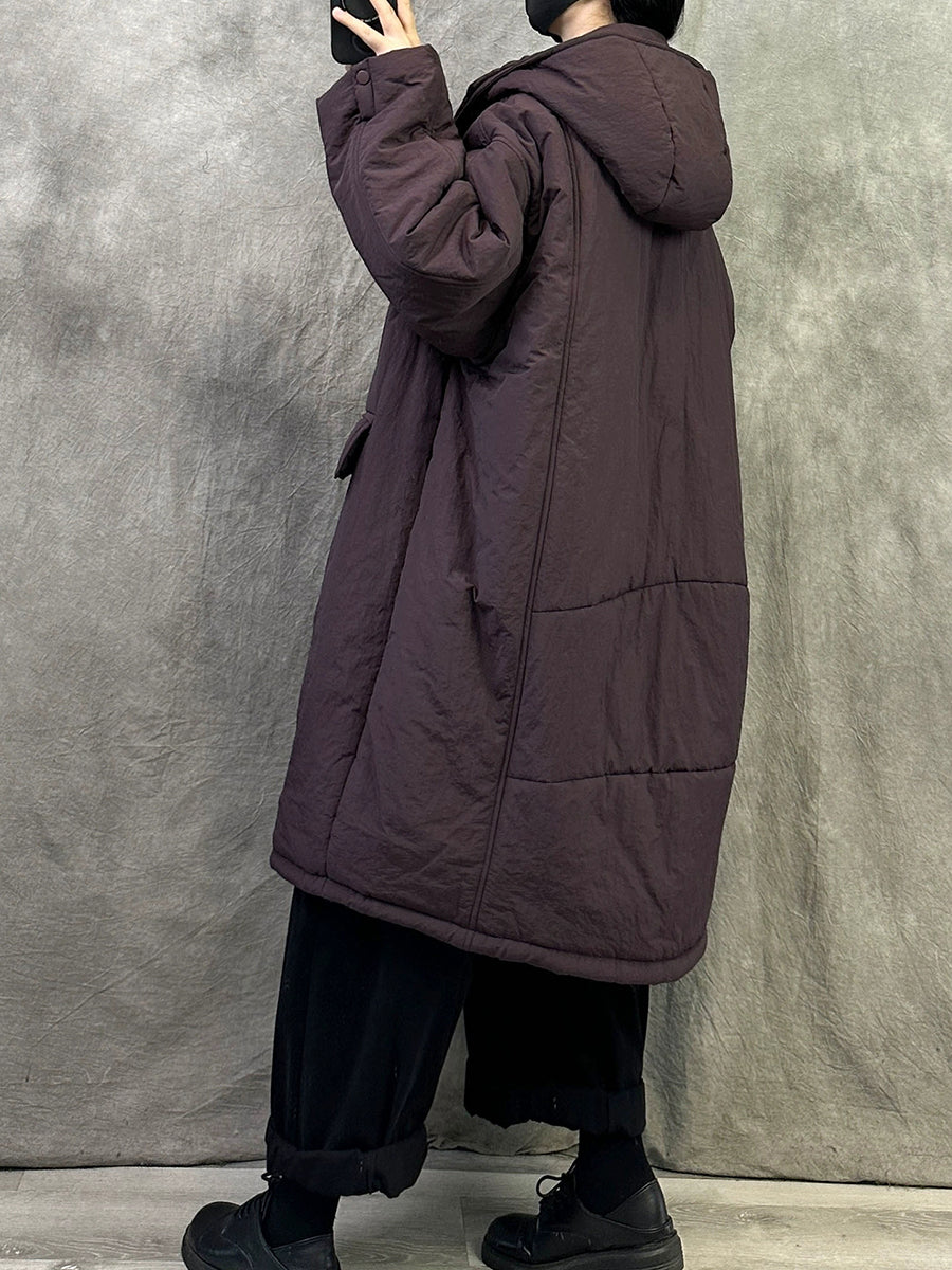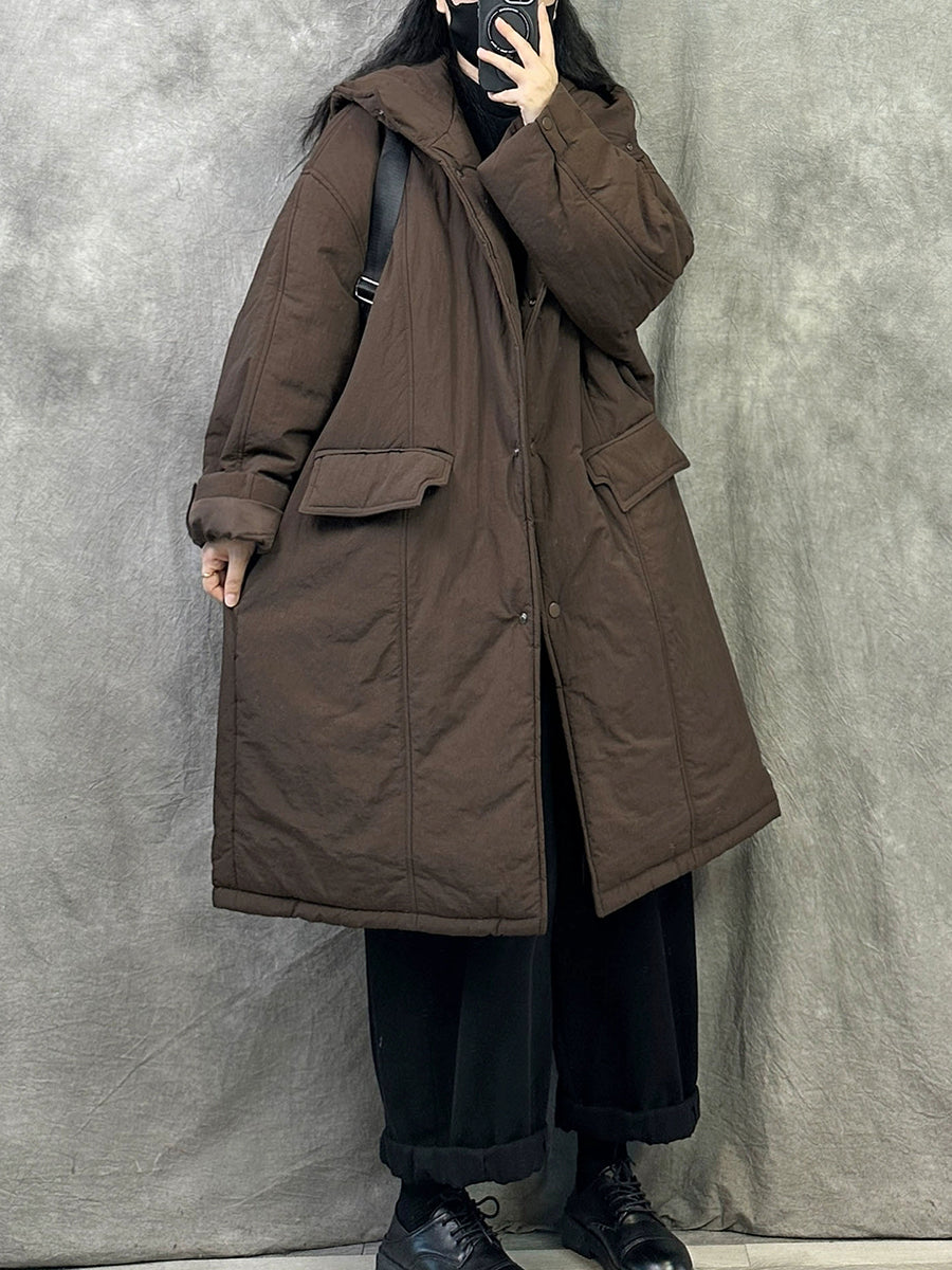 Abrigo largo acolchado con capucha para mujer, de color liso, ideal para el invierno.