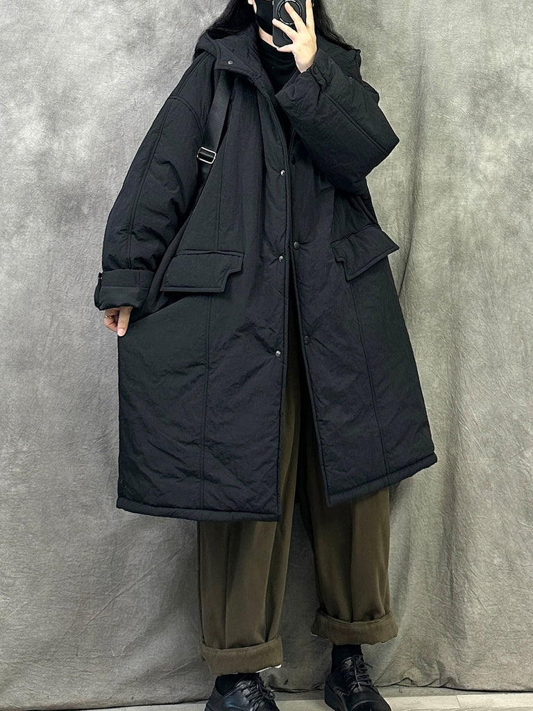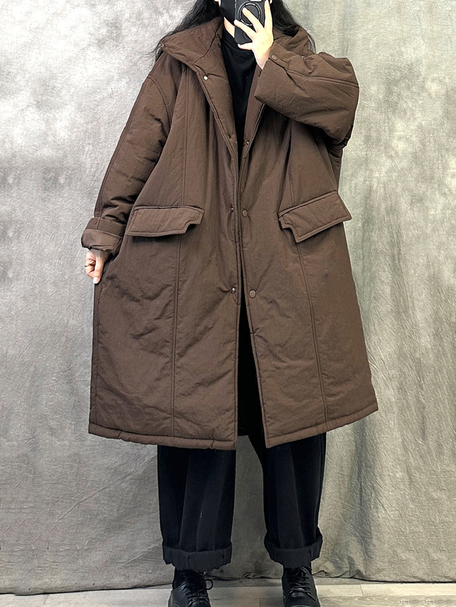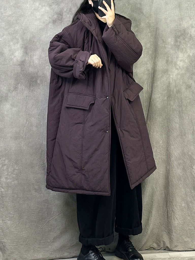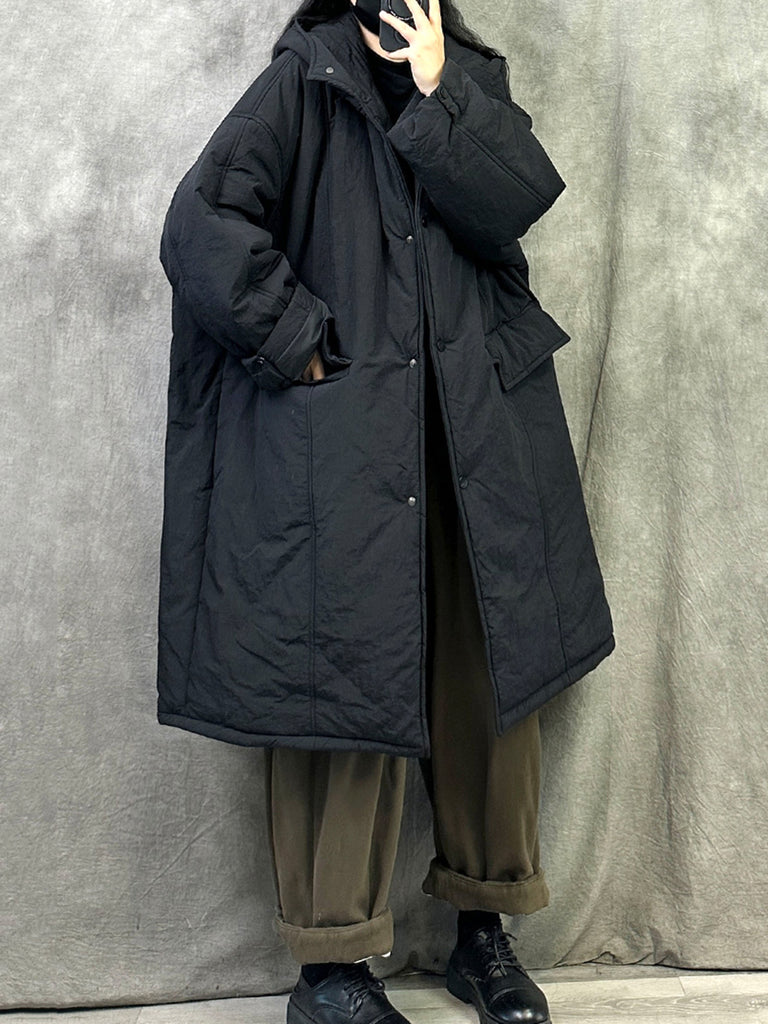 Abrigo largo acolchado con capucha para mujer, de color liso, ideal para el invierno.