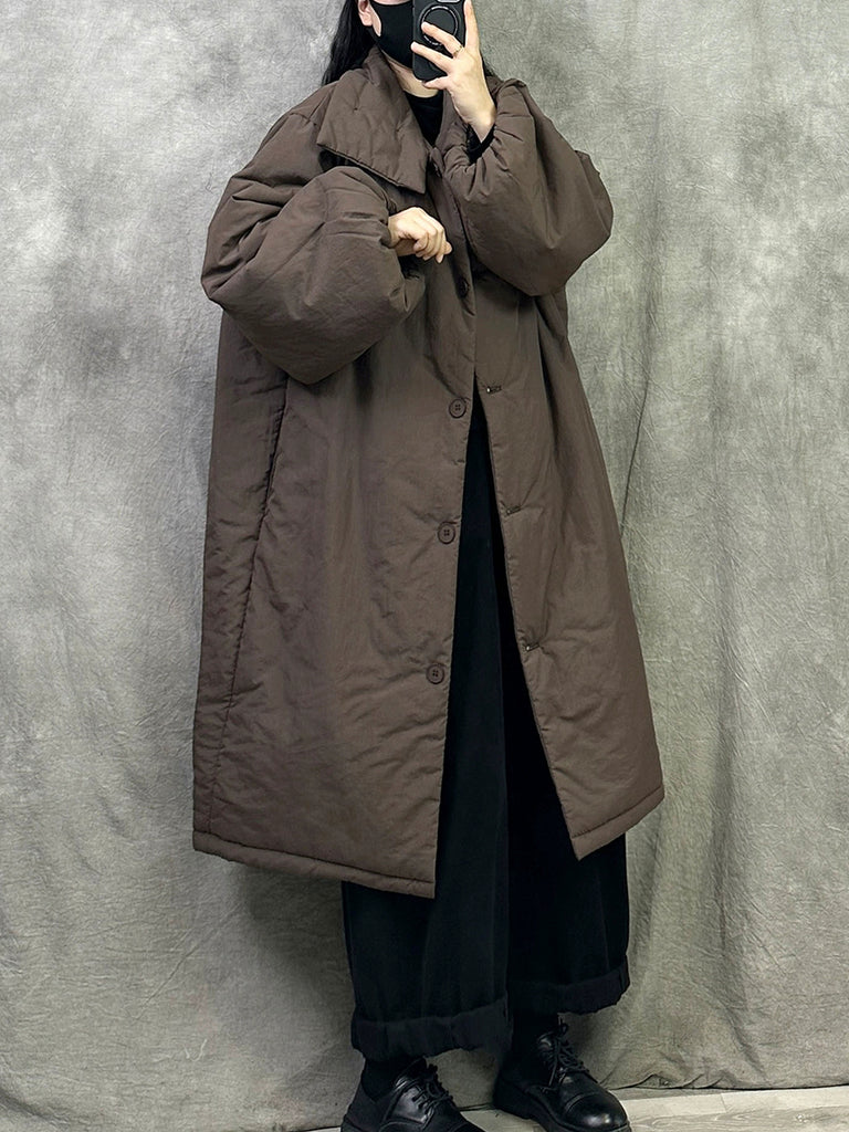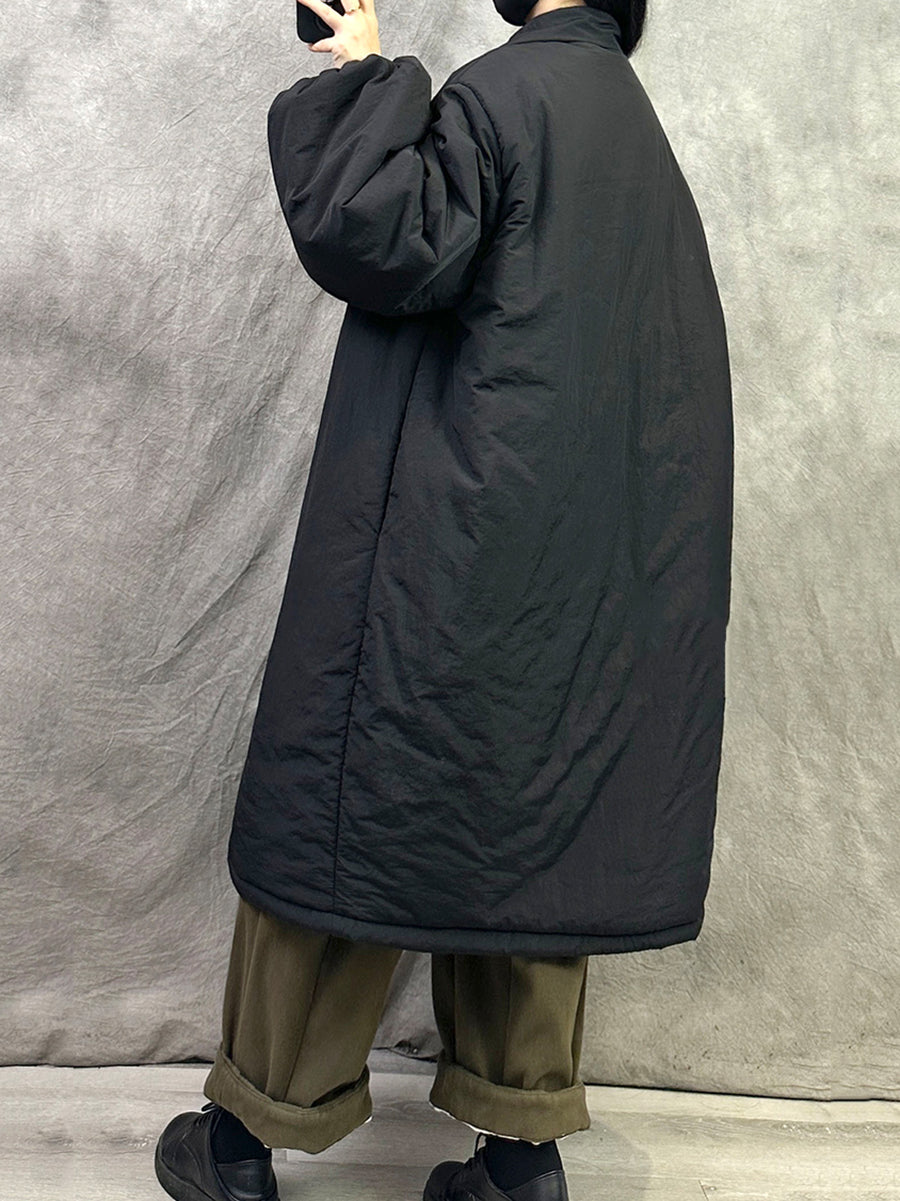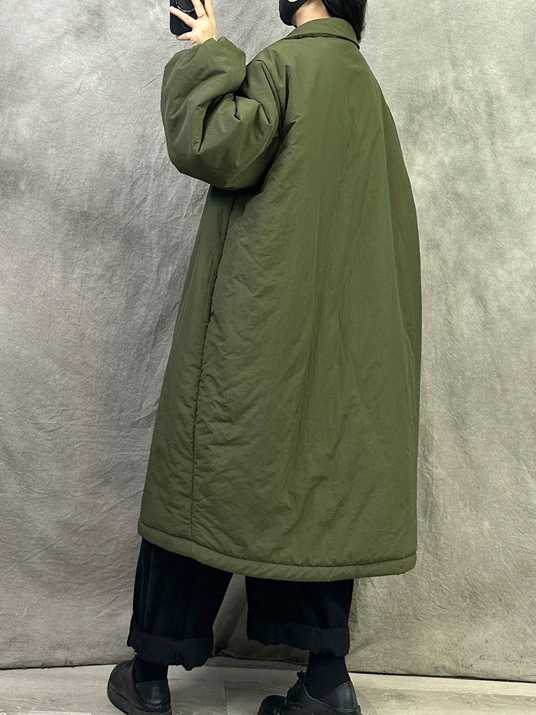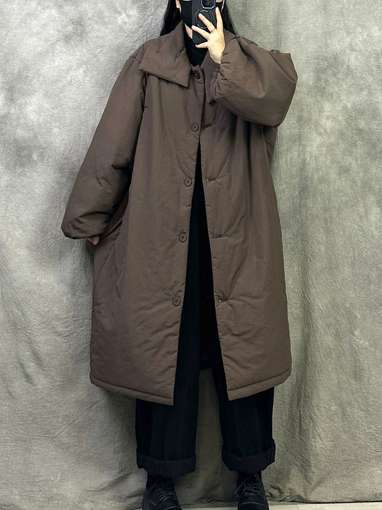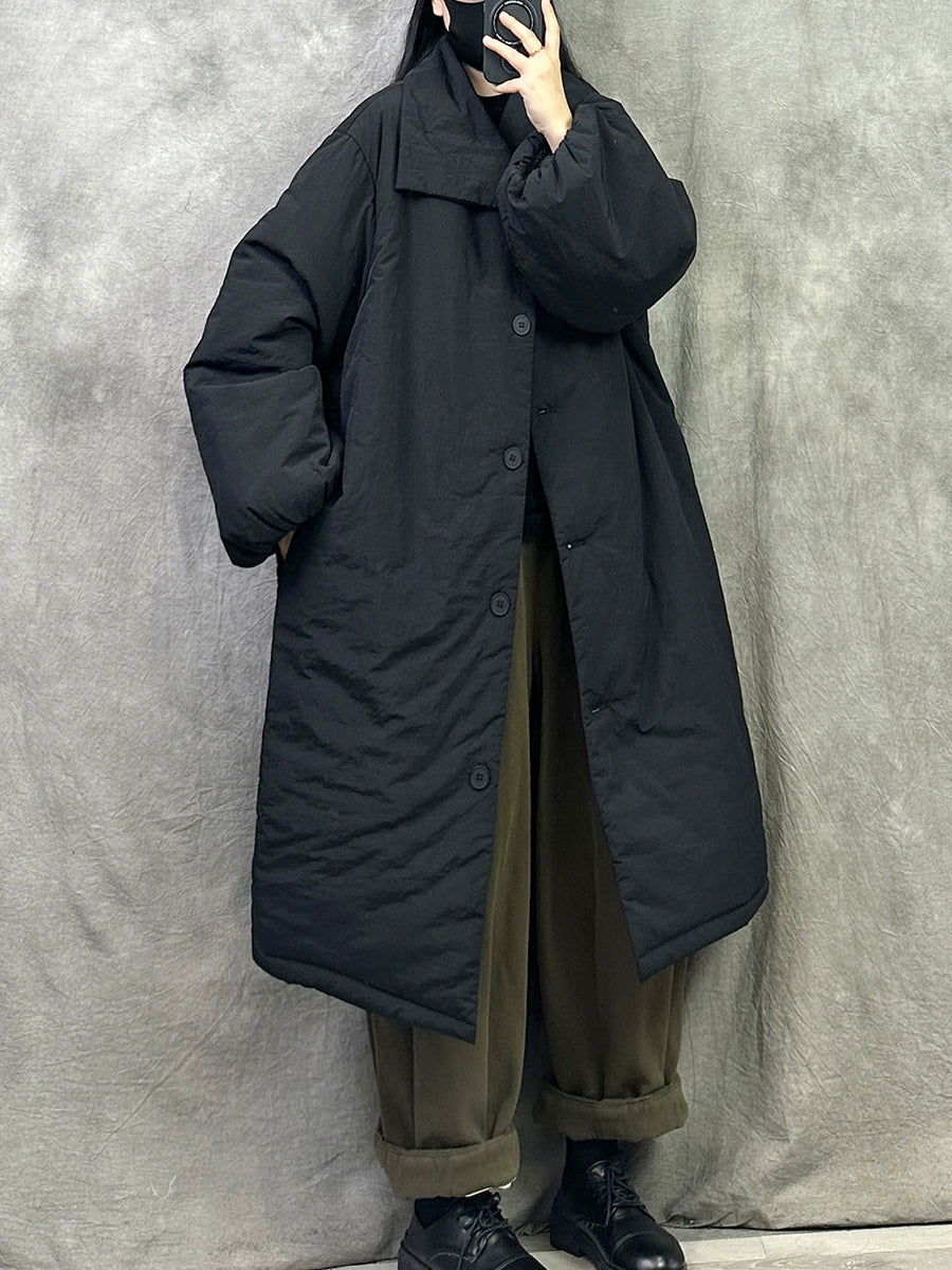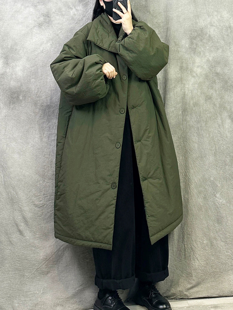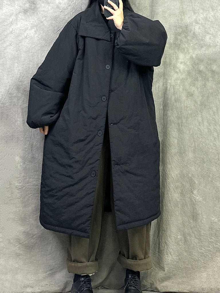Abrigo largo acolchado de invierno para mujer, de color liso, con cuello vuelto.