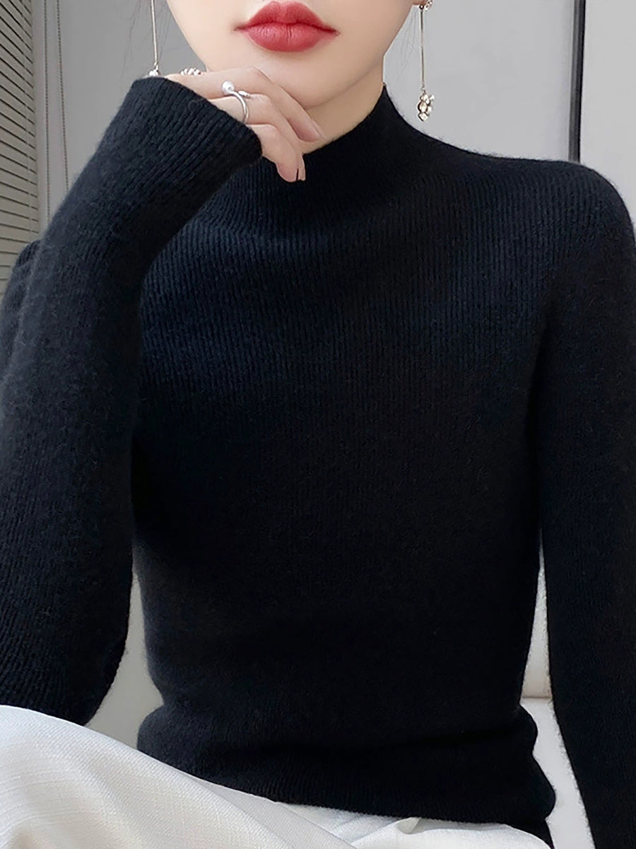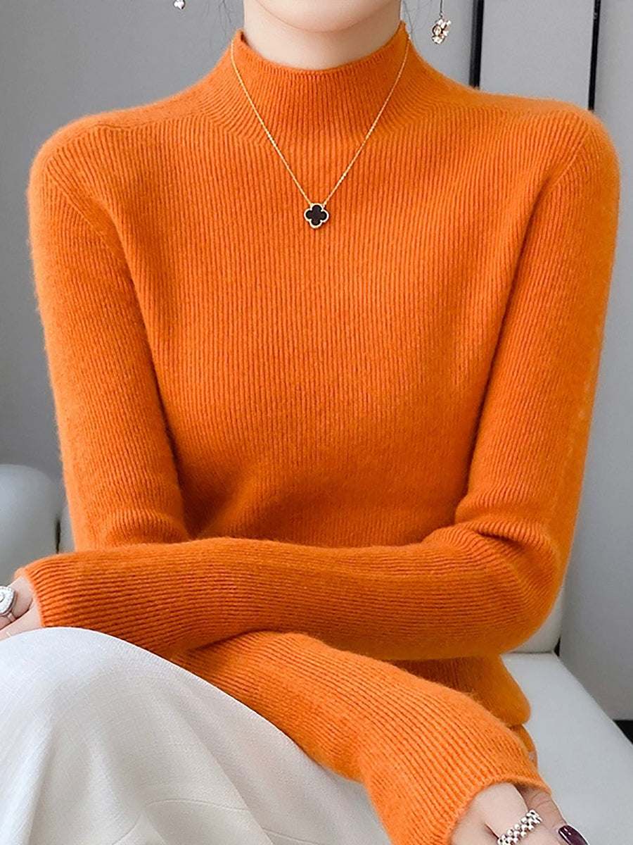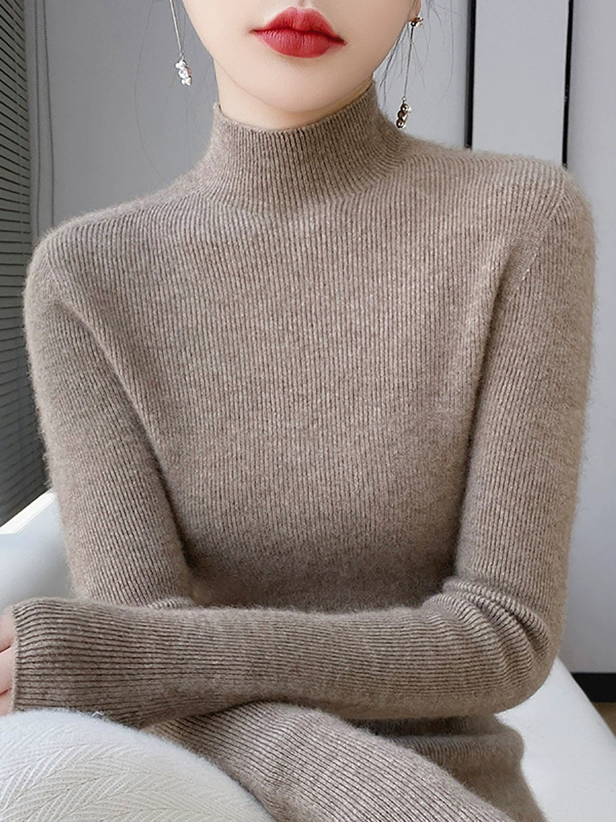 Suéter de cuello alto medio de lana de color puro de invierno para mujer