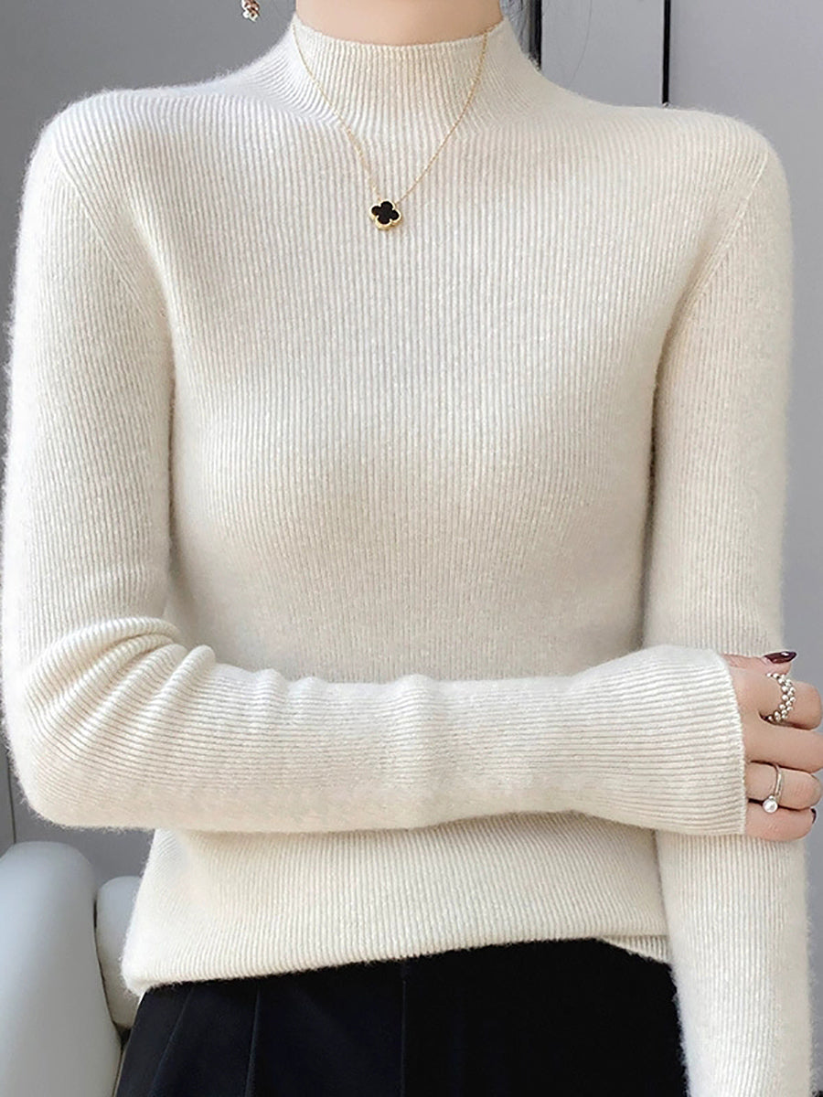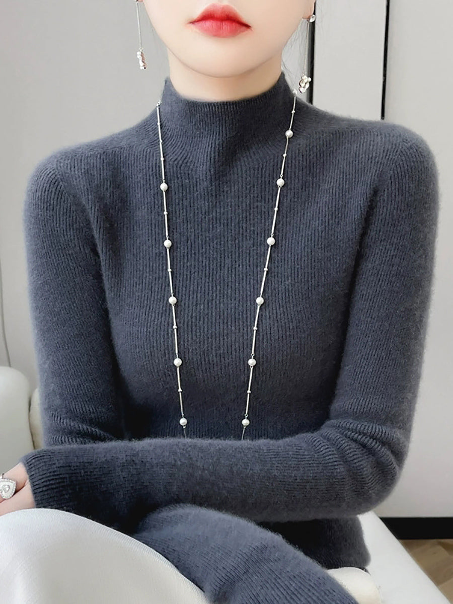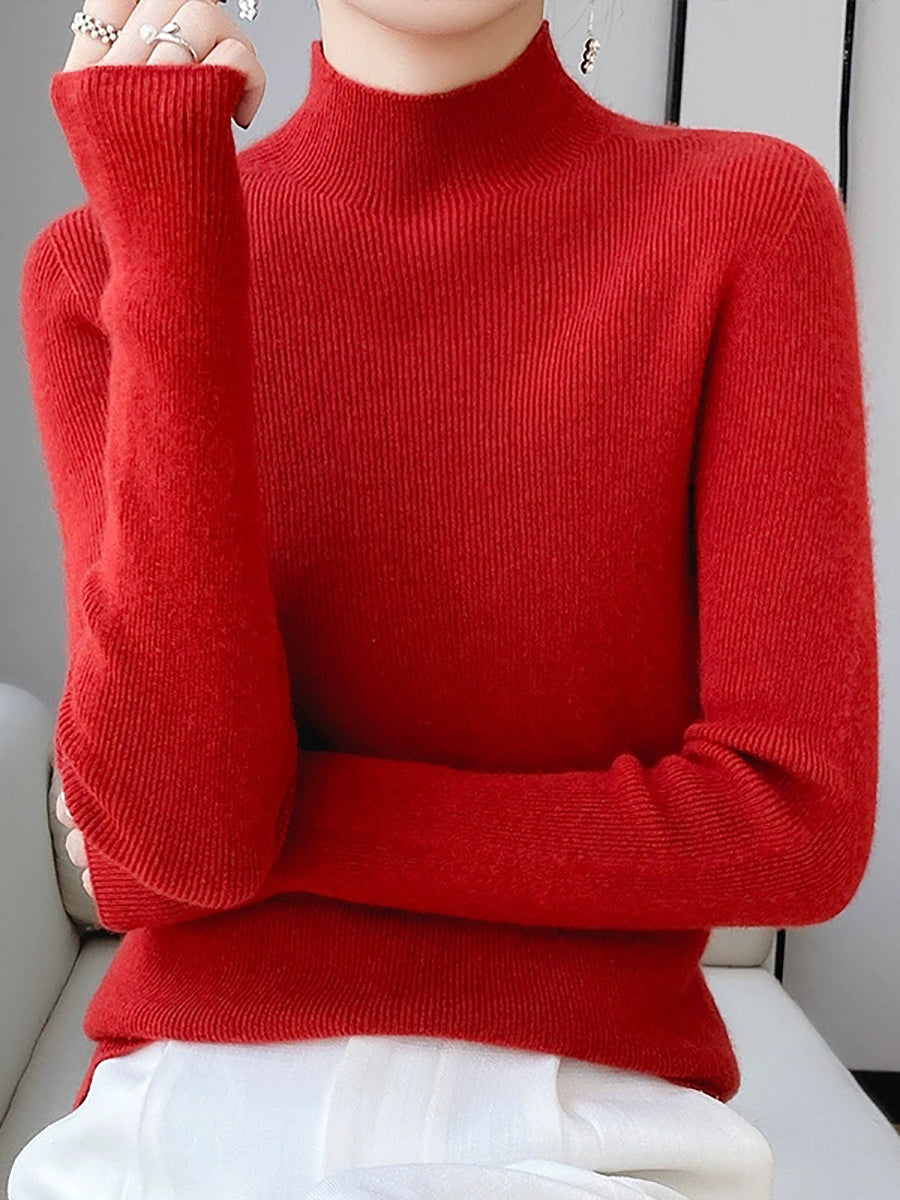 Suéter de cuello alto medio de lana de color puro de invierno para mujer