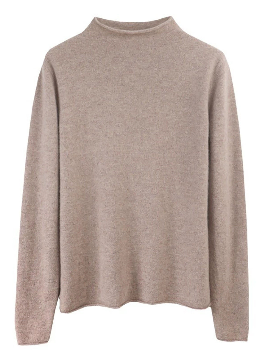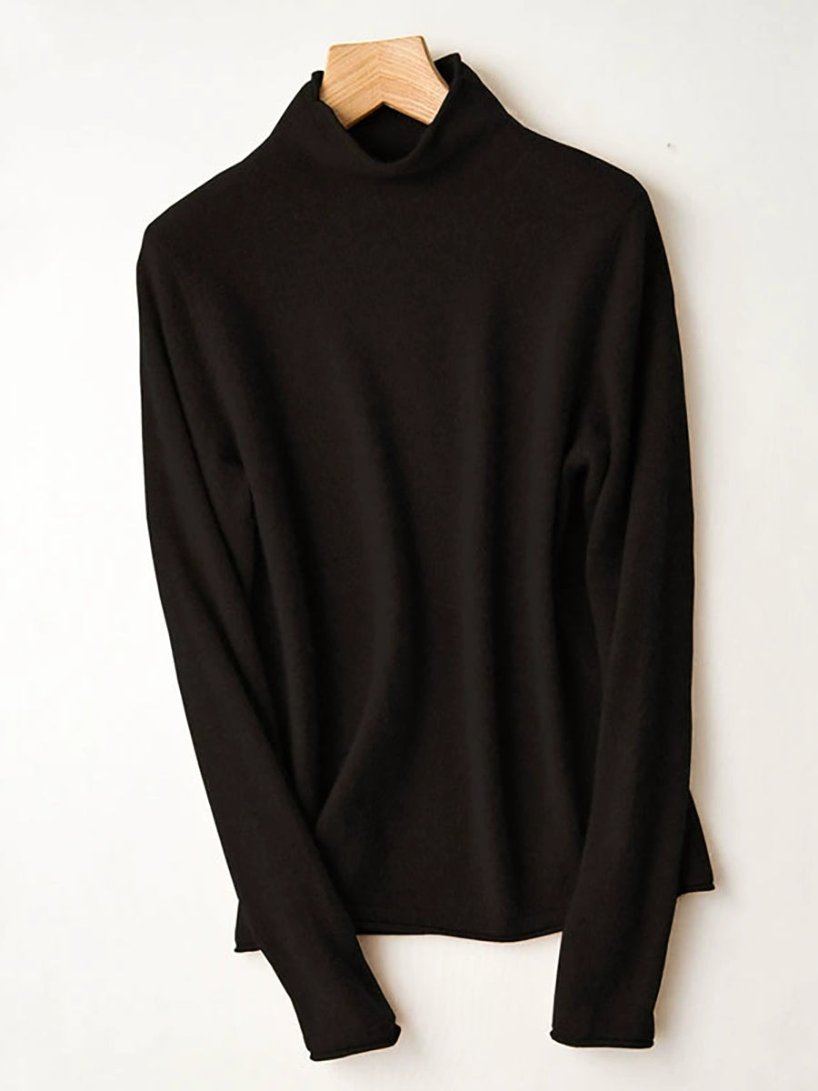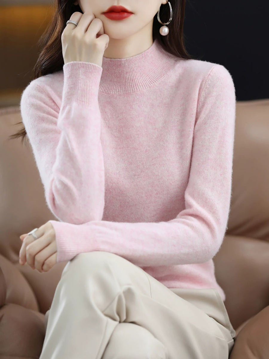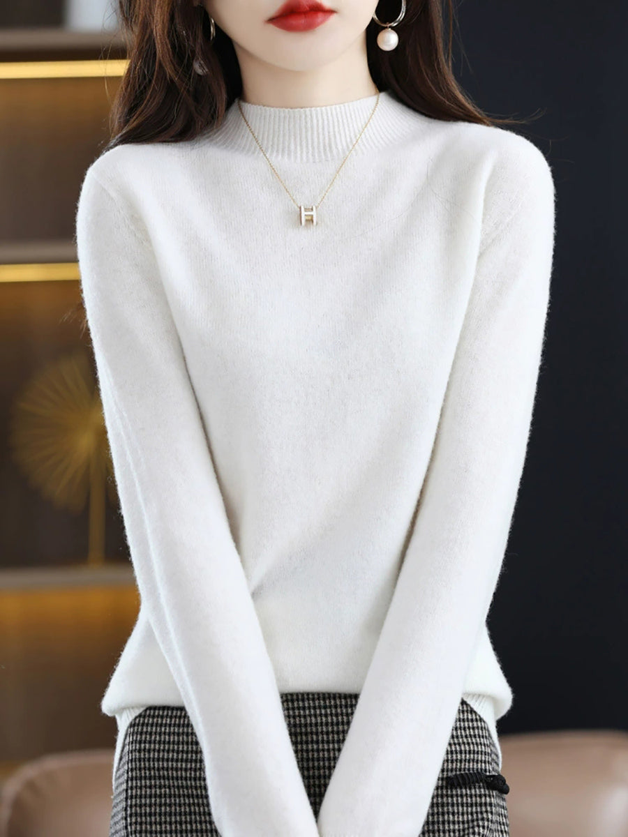 Suéter de cuello alto medio de lana de color puro de invierno para mujer