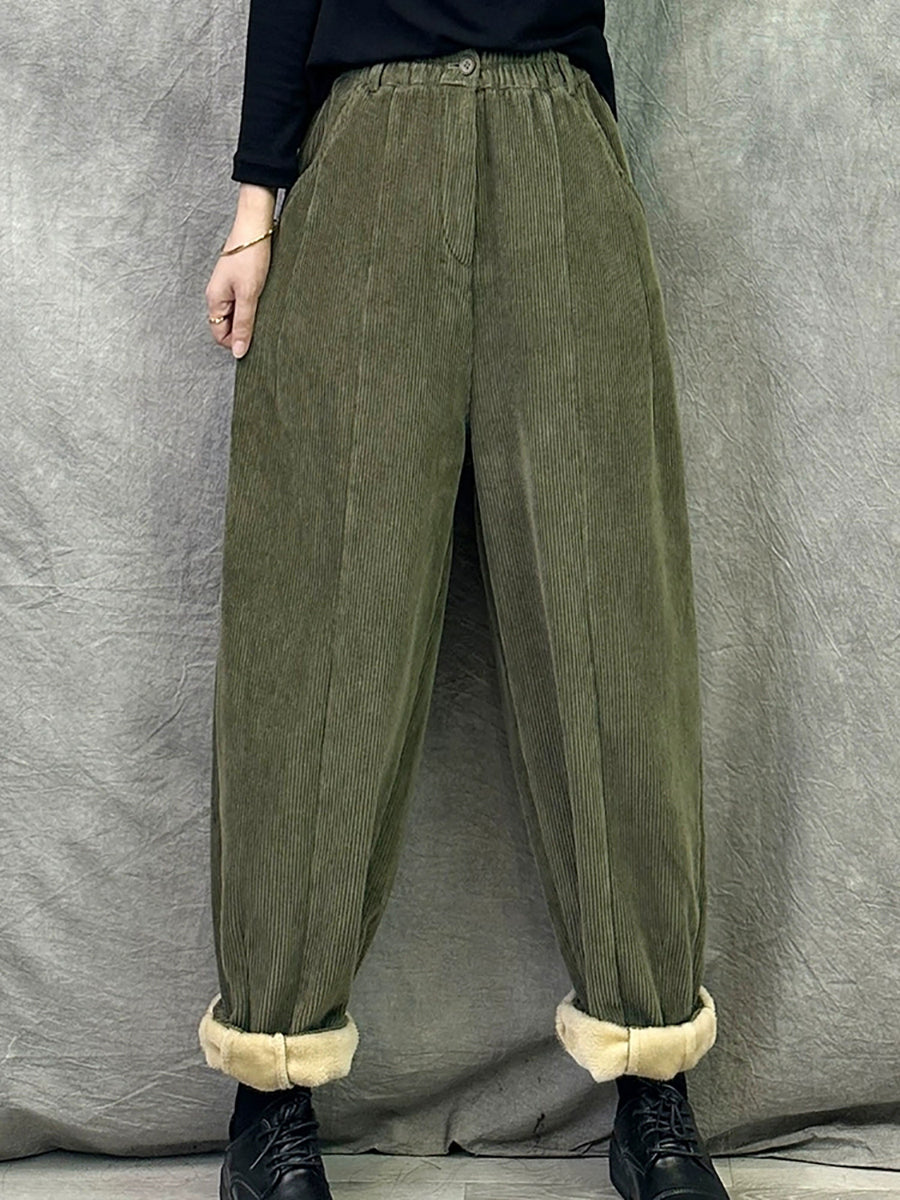 Pantalones harén acolchados de mezclilla sólida de invierno para mujer