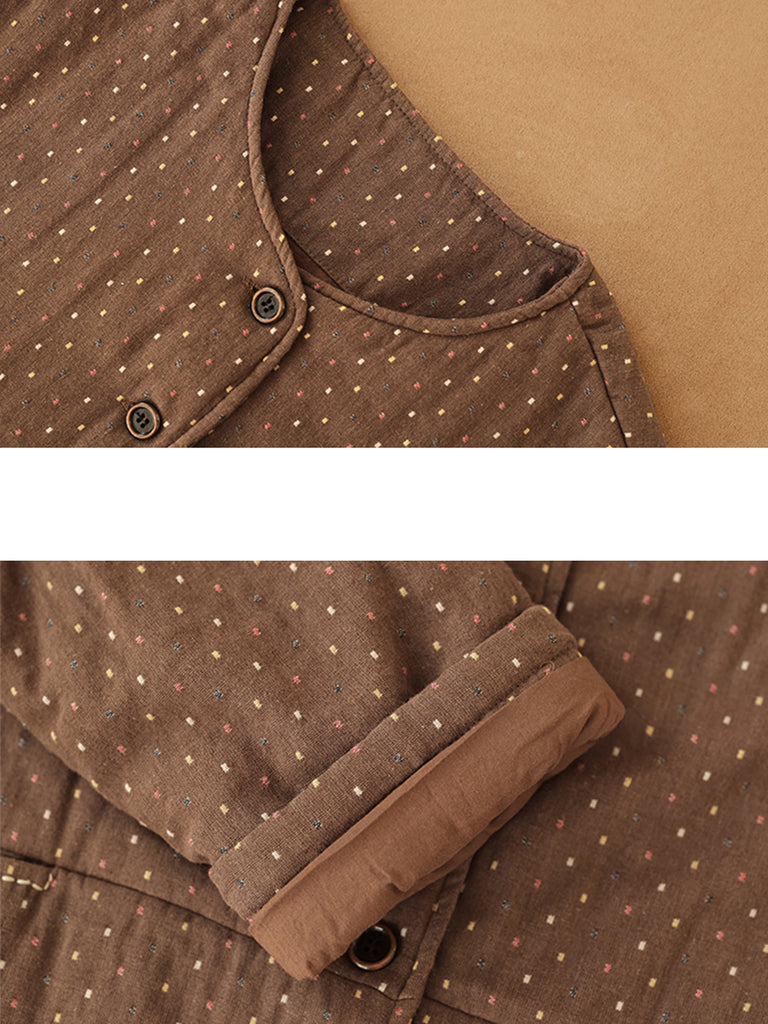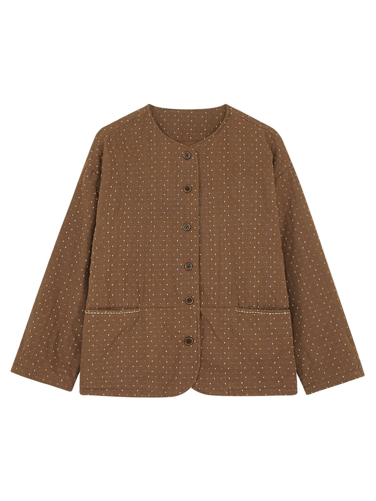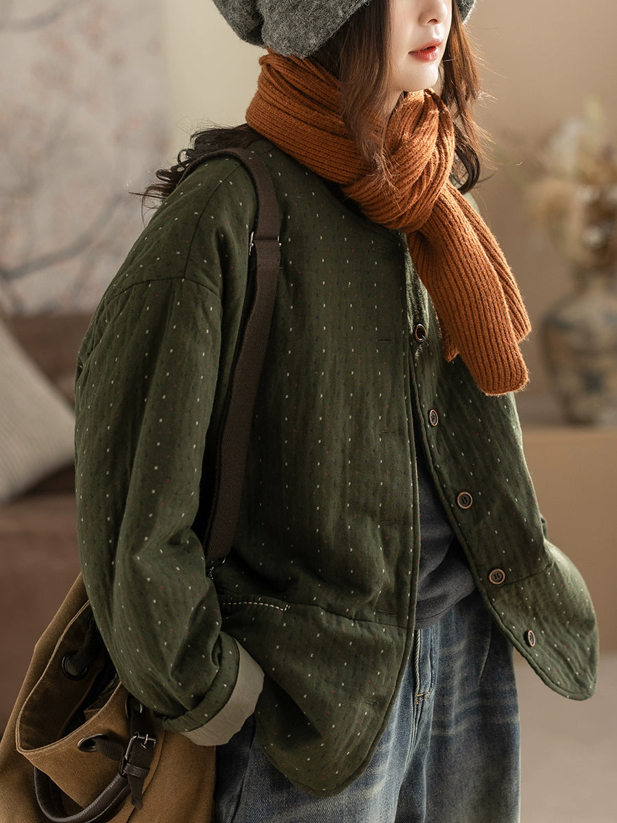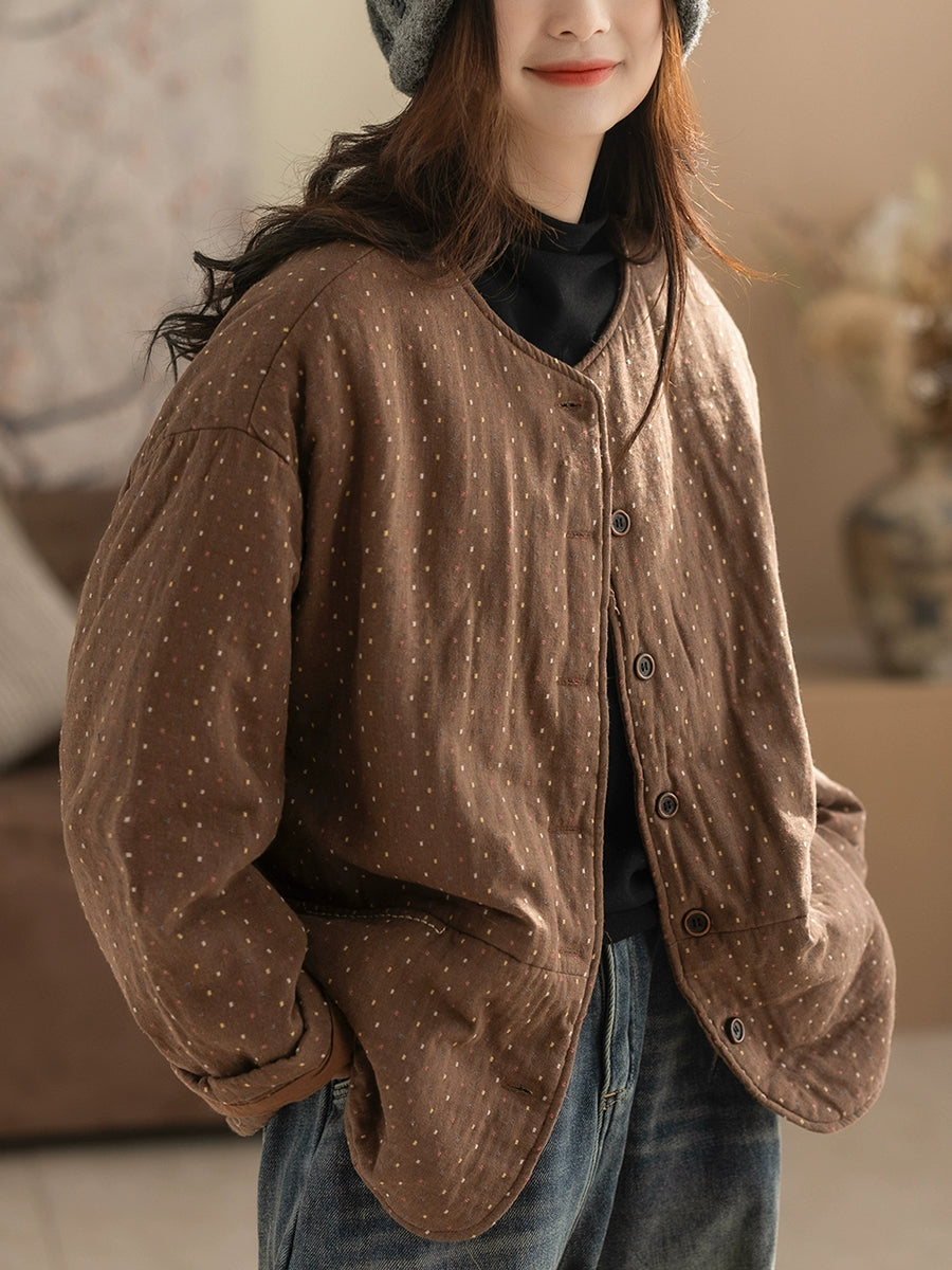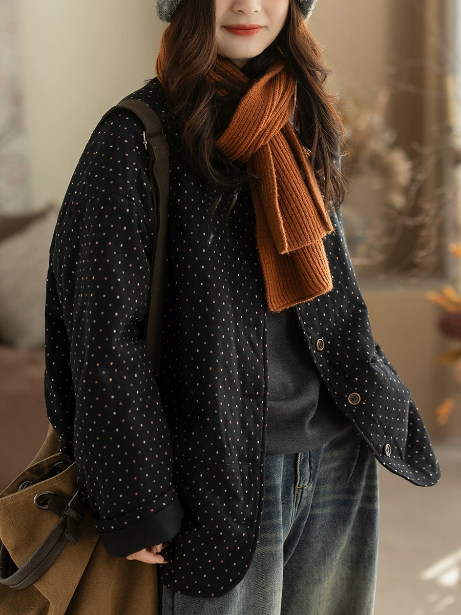 Abrigo acolchado de cuello redondo con lunares retro de invierno para mujer
