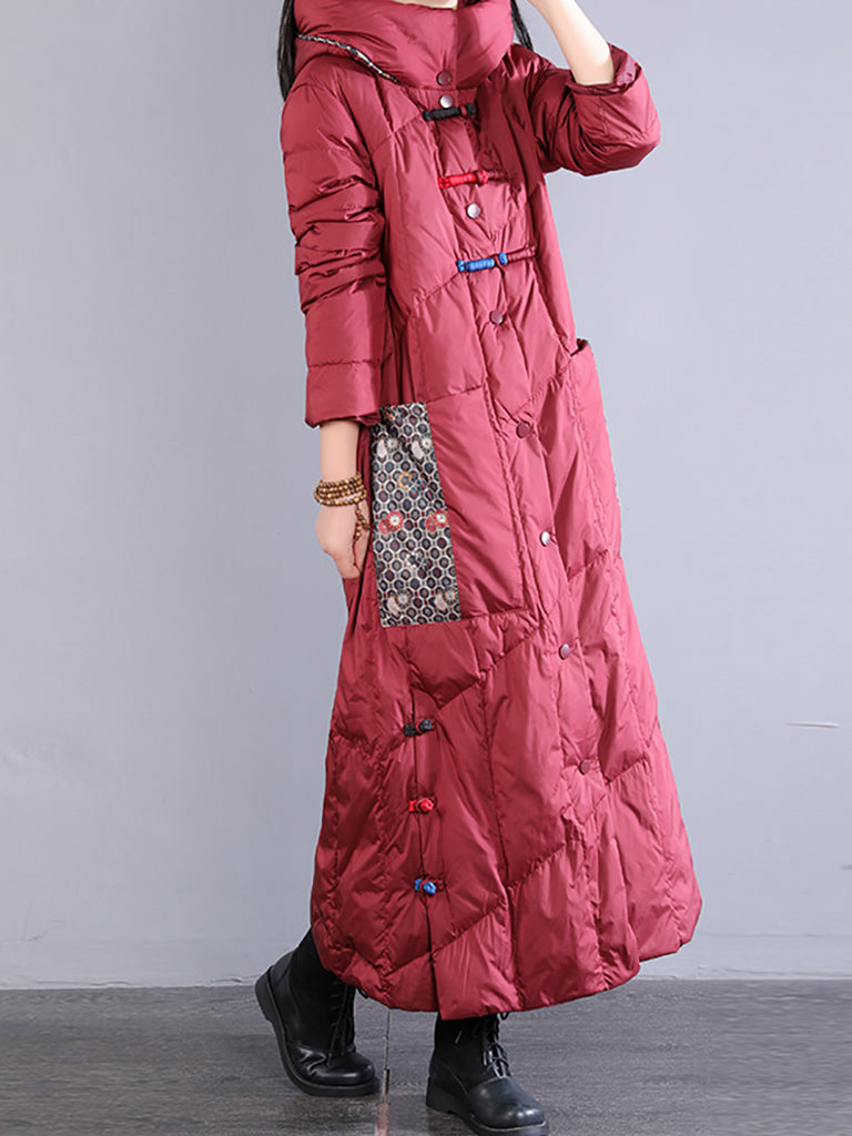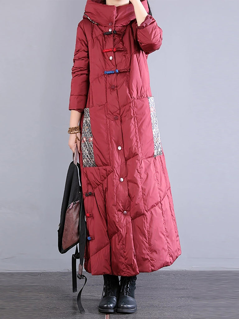 Abrigo largo acolchado de invierno retro bordado para mujer