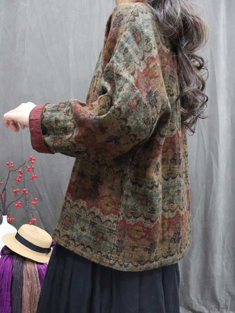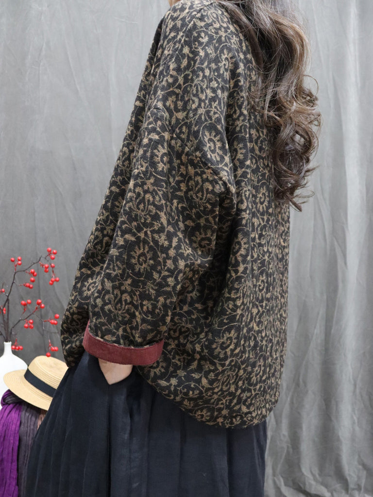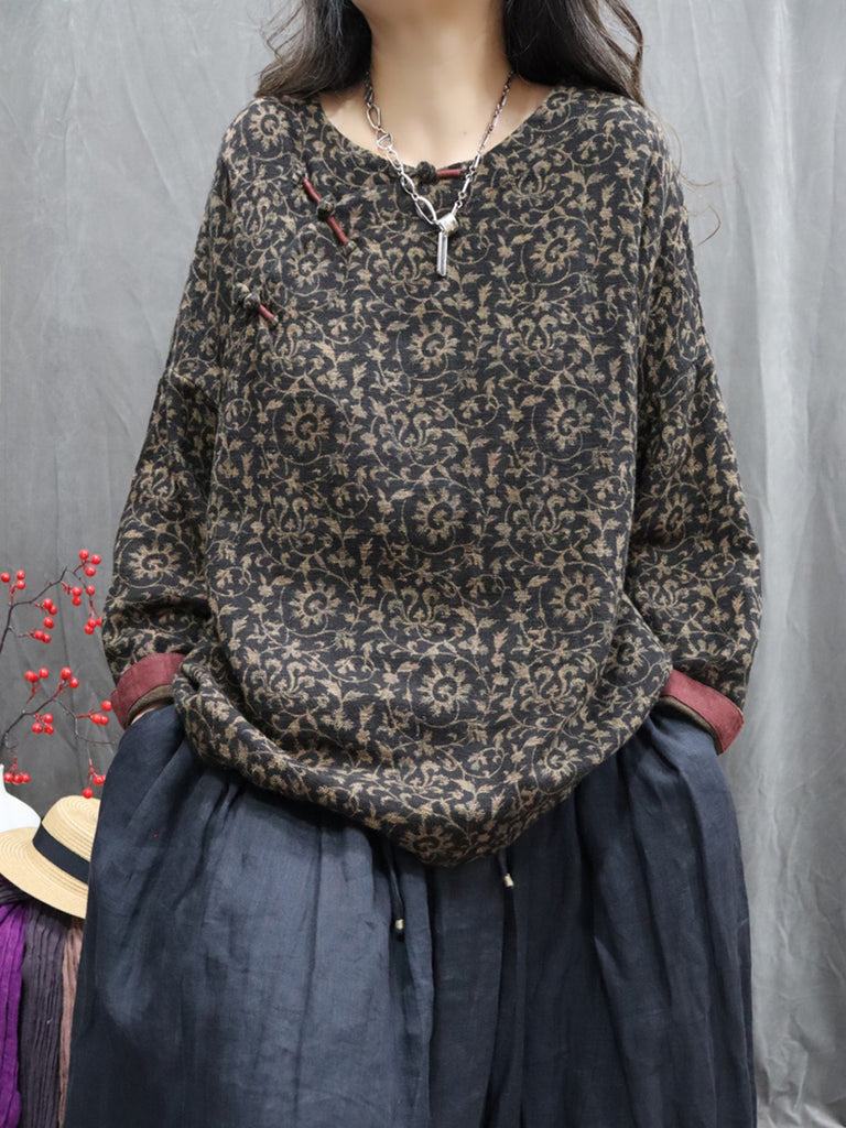 Camisa de invierno retro con cuello redondo y estampado floral para mujer