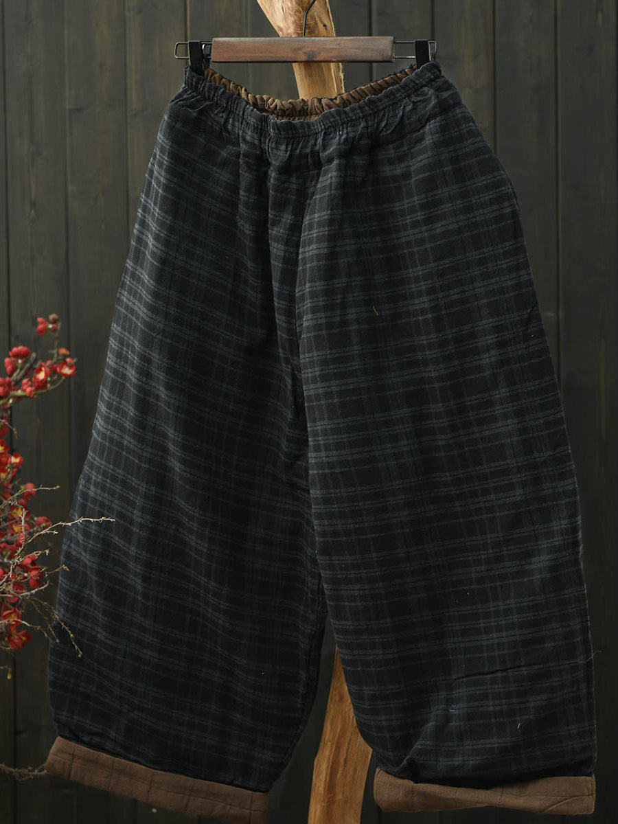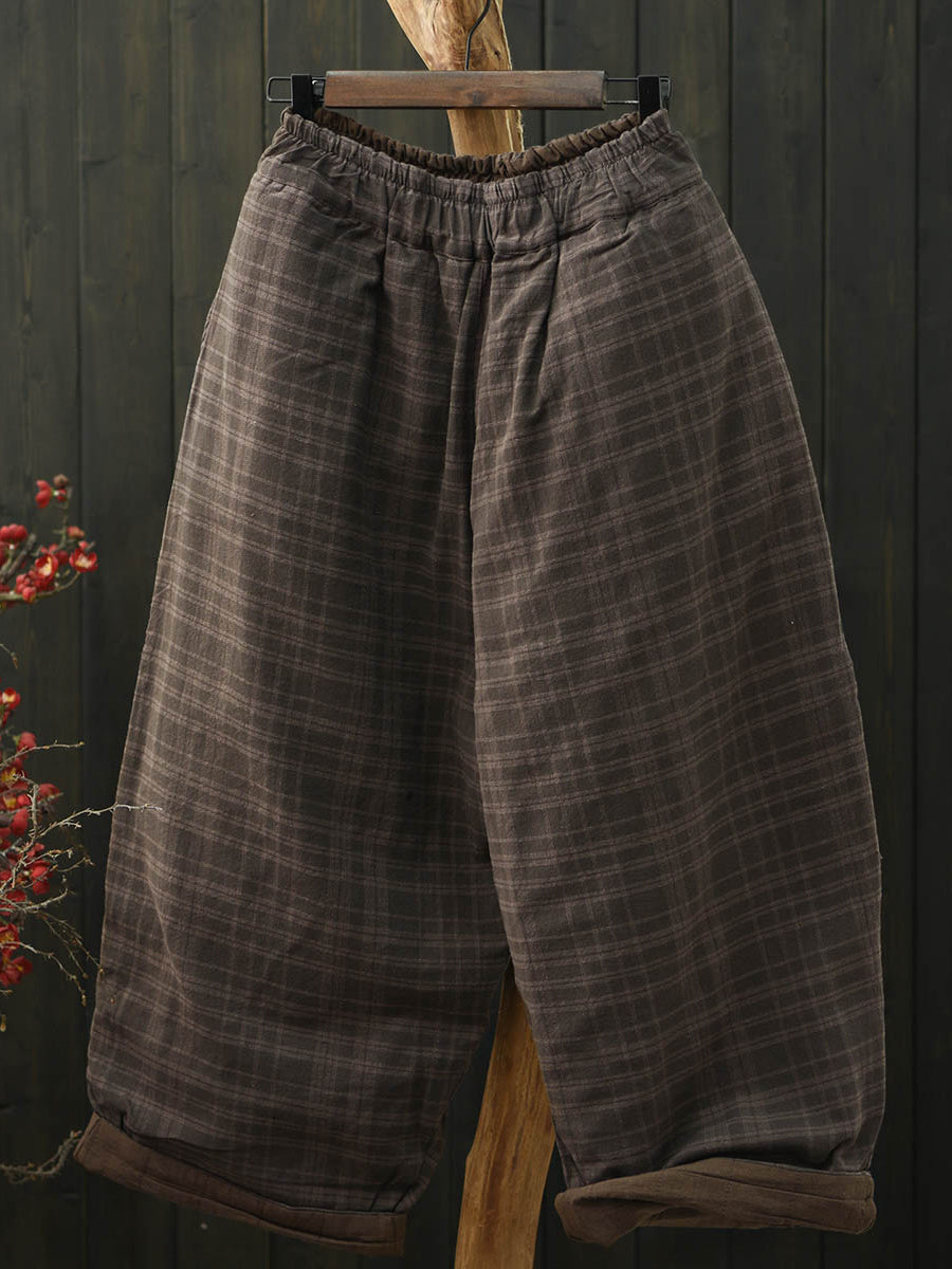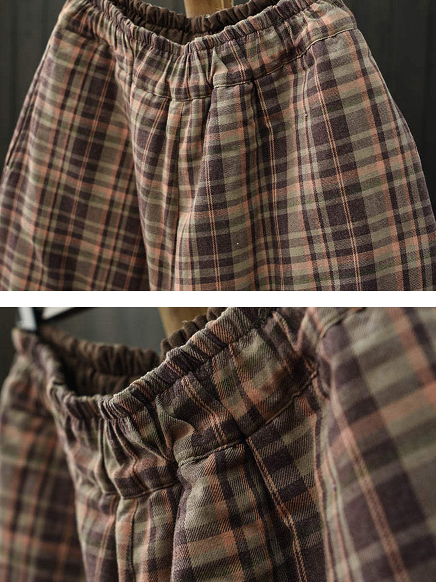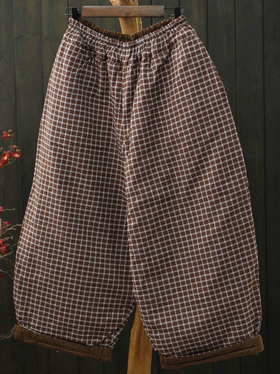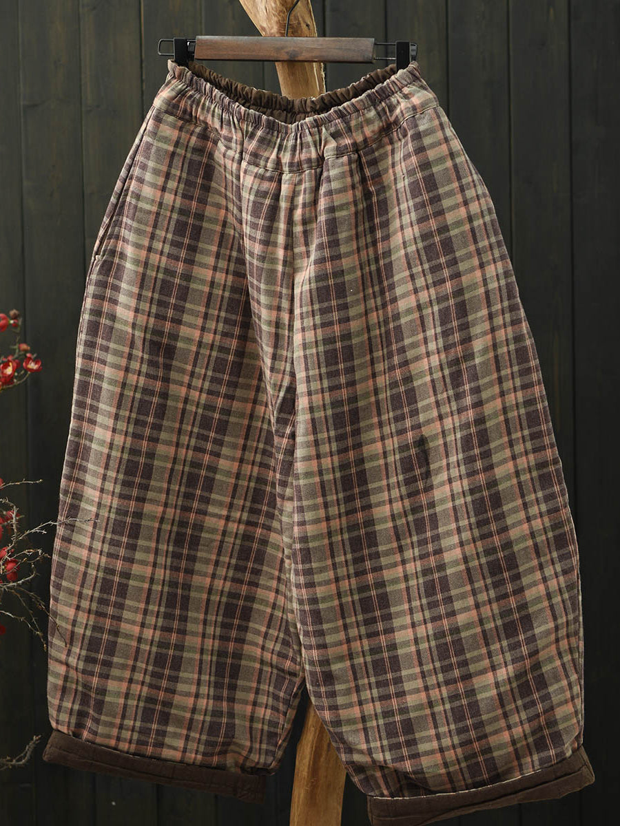 Pantalones bombachos acolchados a cuadros retro de invierno para mujer