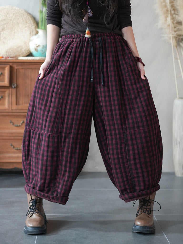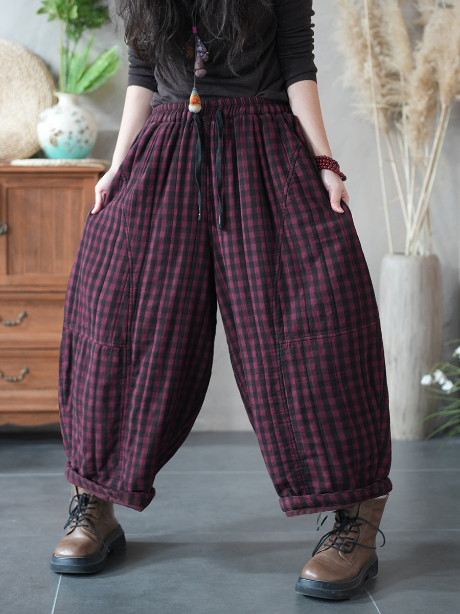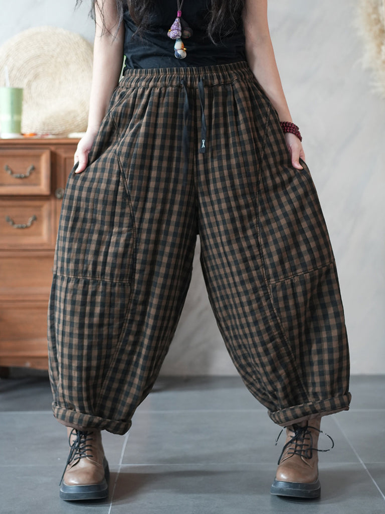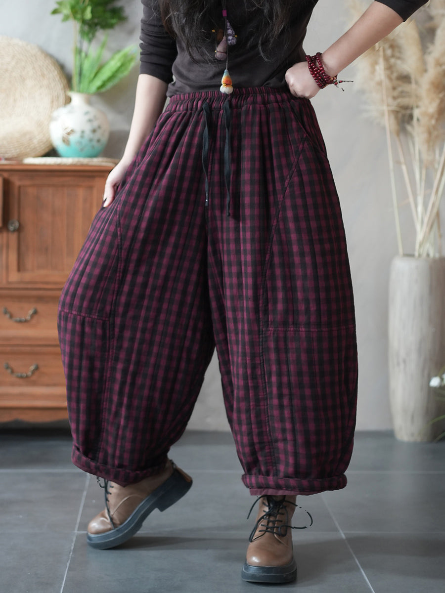 Pantalones harén acolchados a cuadros retro de invierno para mujer