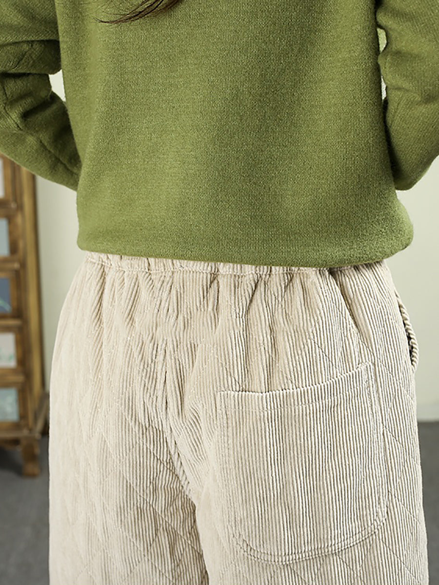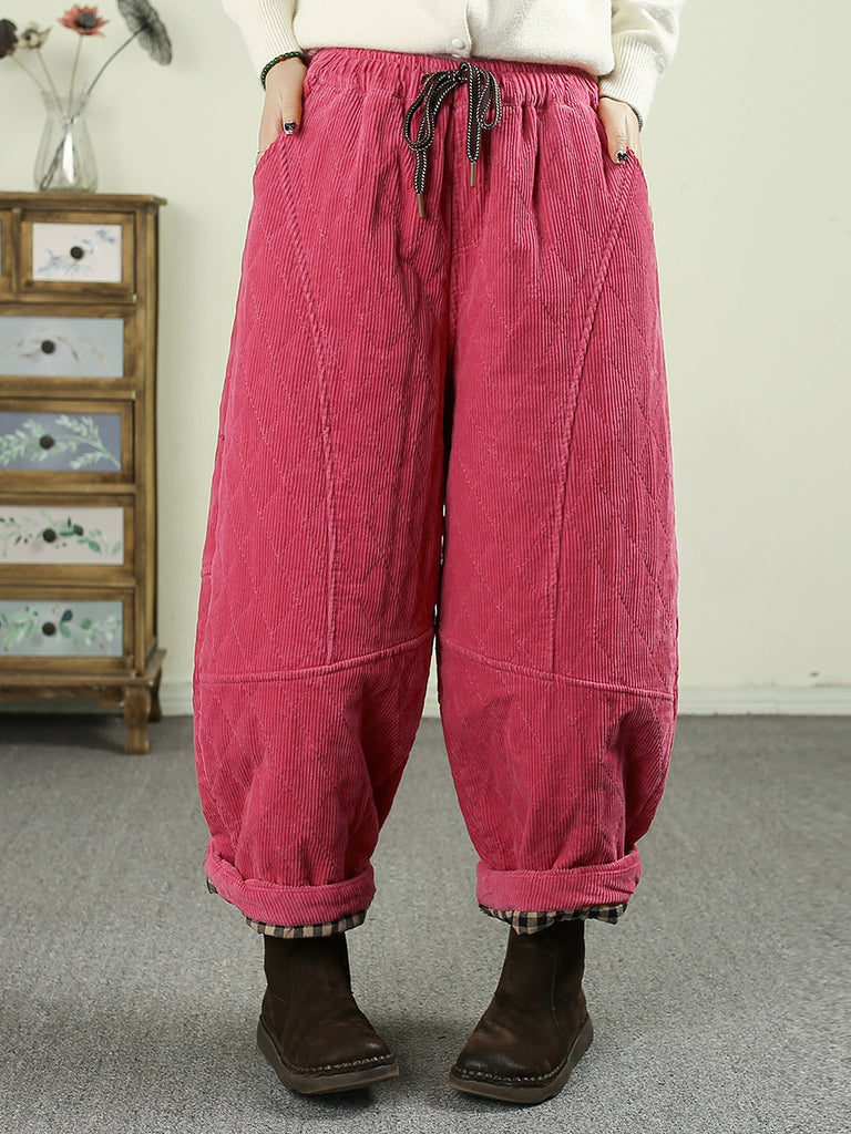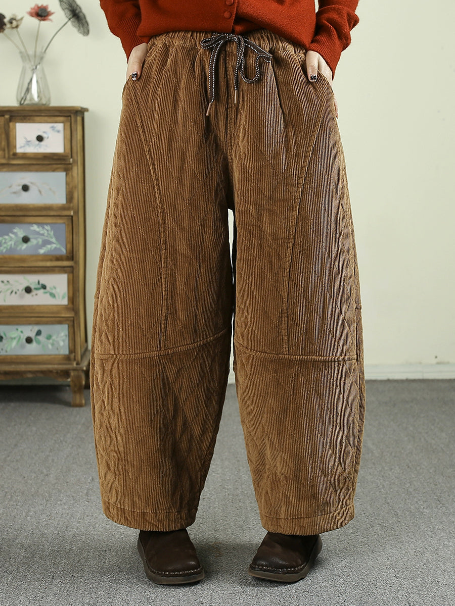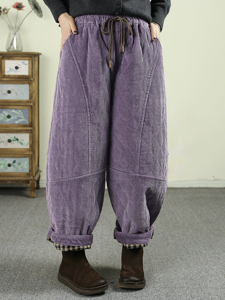 Pantalones harén acolchados de pana de color puro retro de invierno para mujer